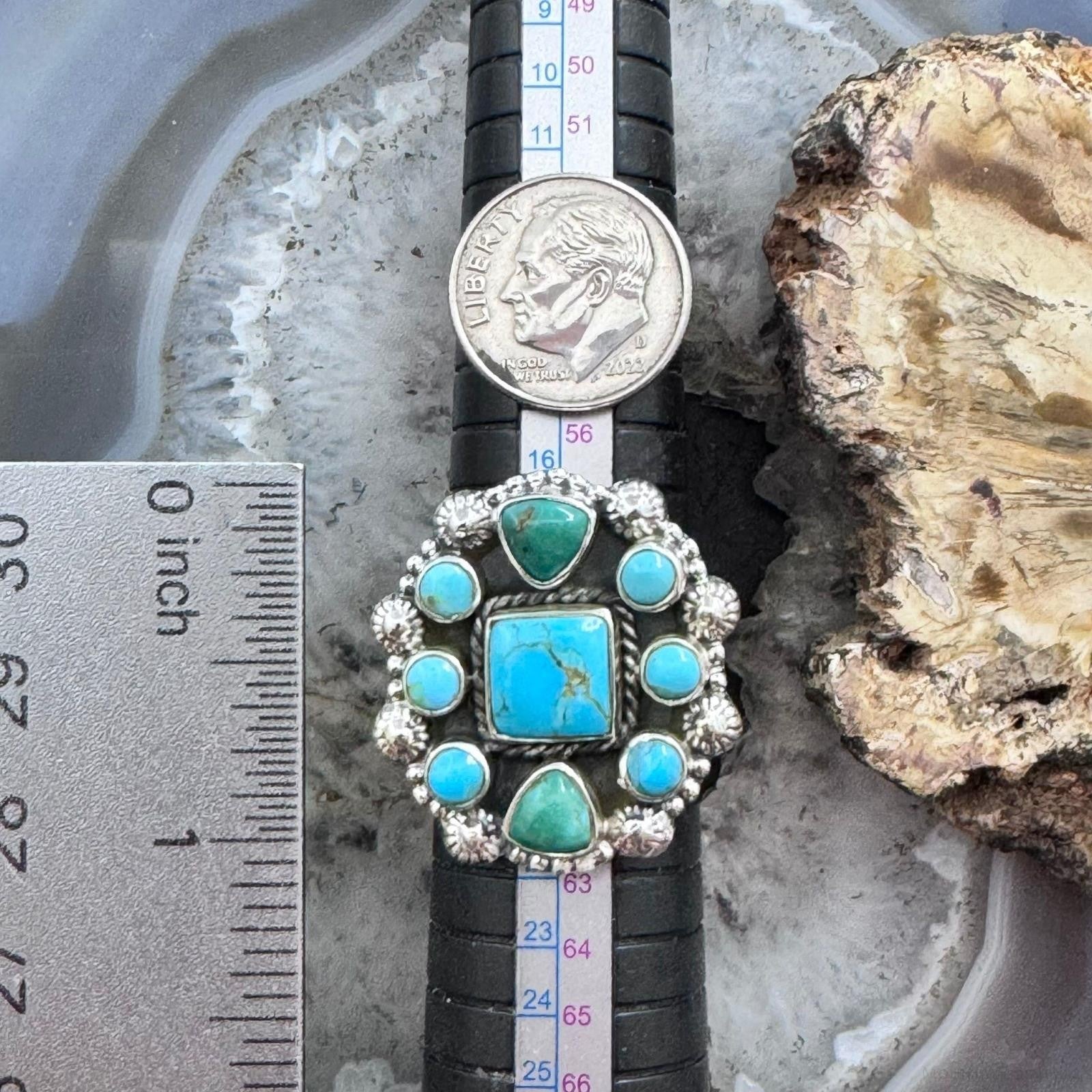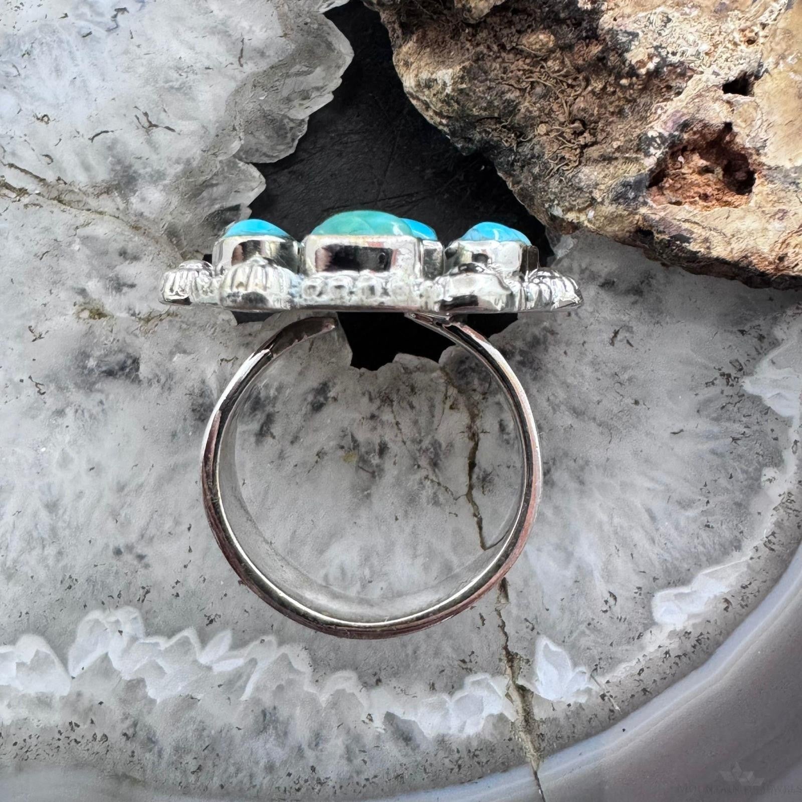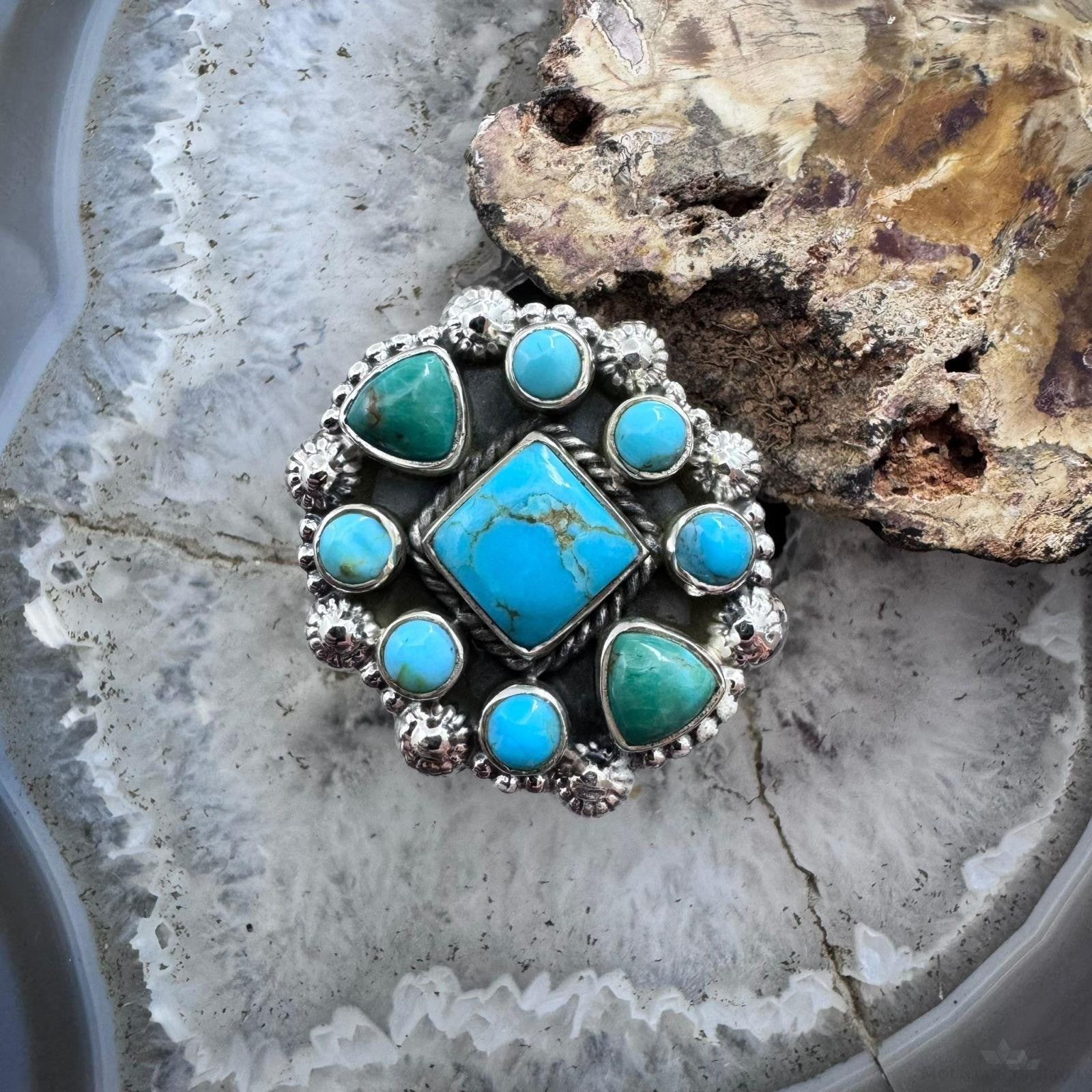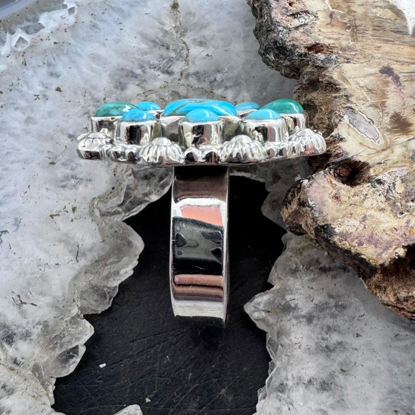 Sterling Silver Southwestern Style Composite Turquoise Cluster Adjustable Ring For Women