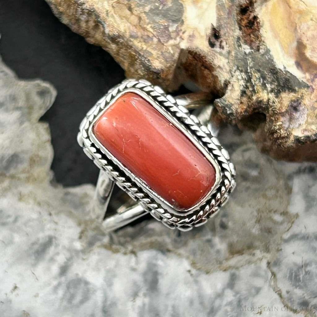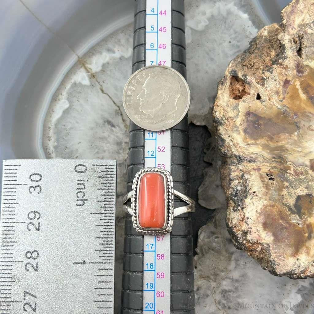 Sterling Silver Southwestern Style Coral Decorated Ring Size 7.5 For Women