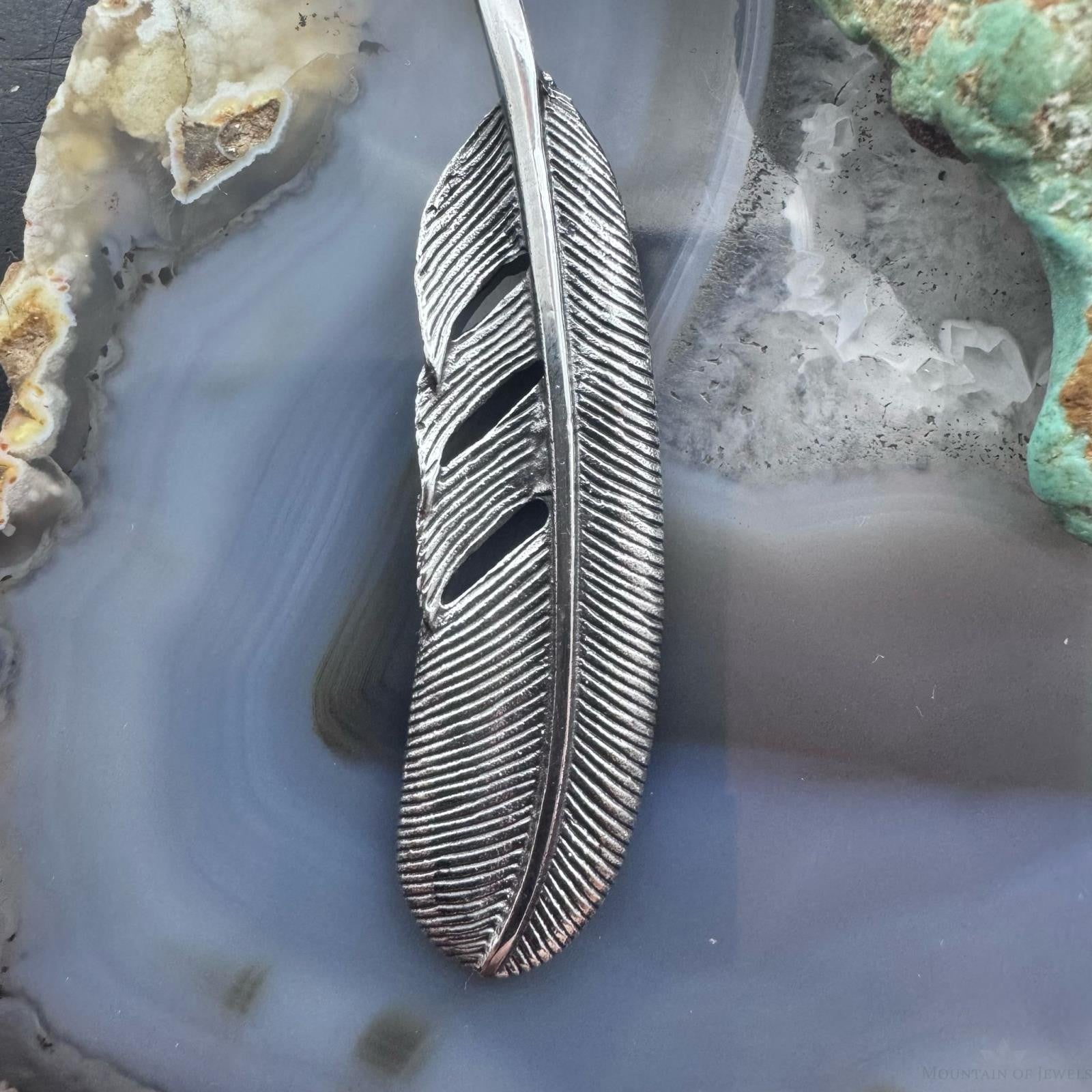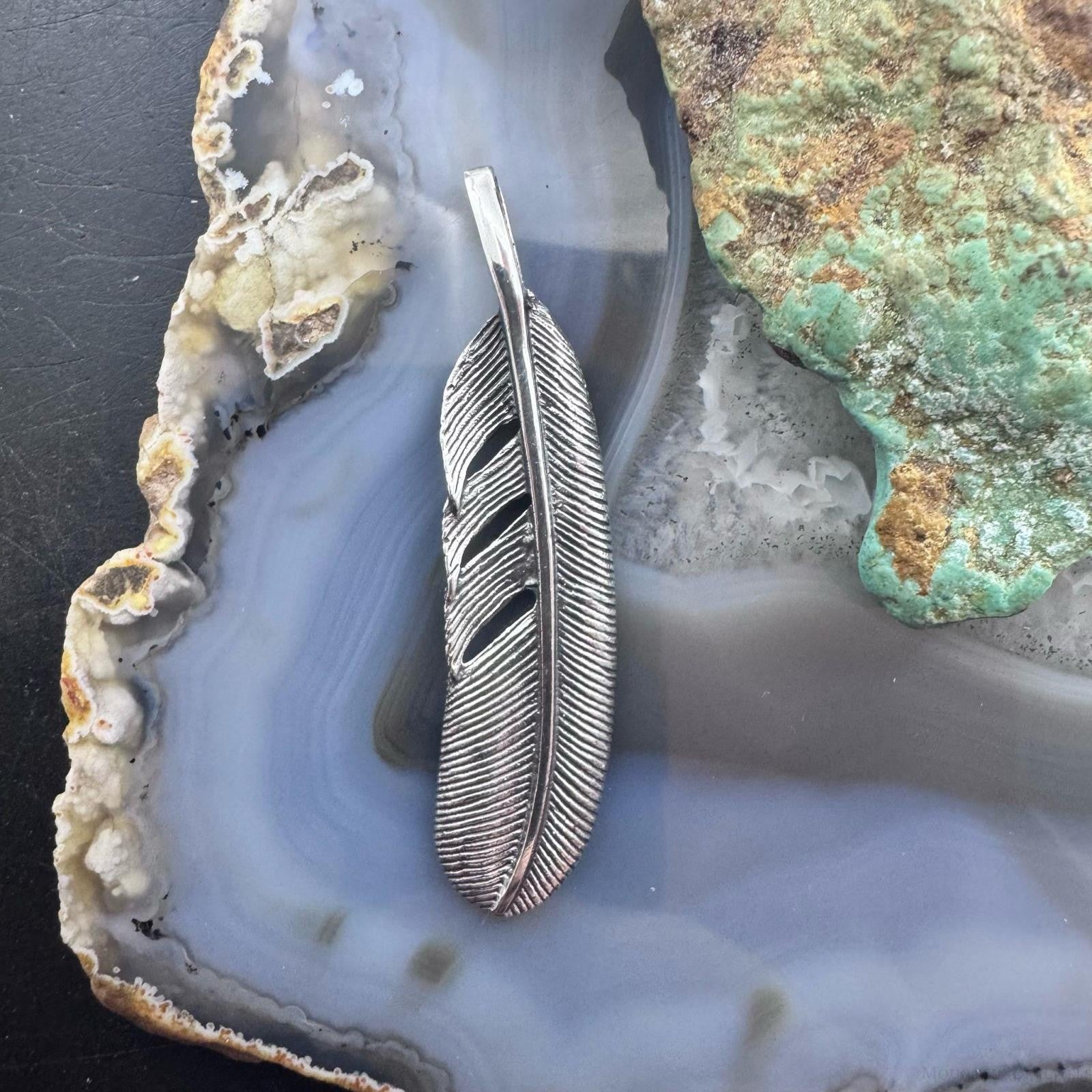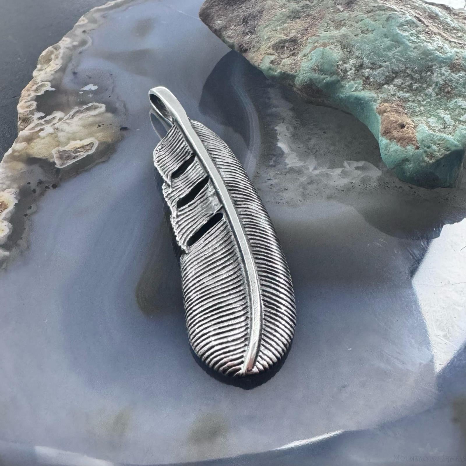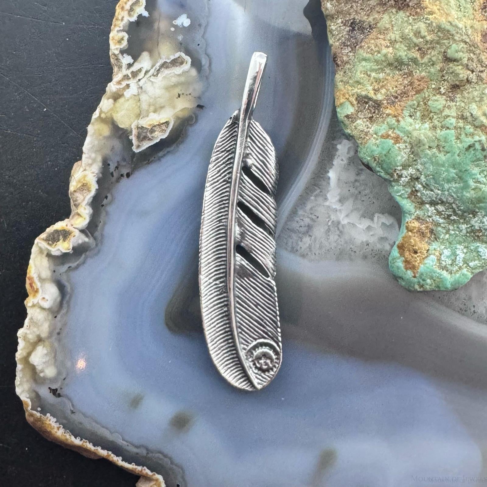 Sterling Silver Southwestern Style Curved Feather Unisex Pendant