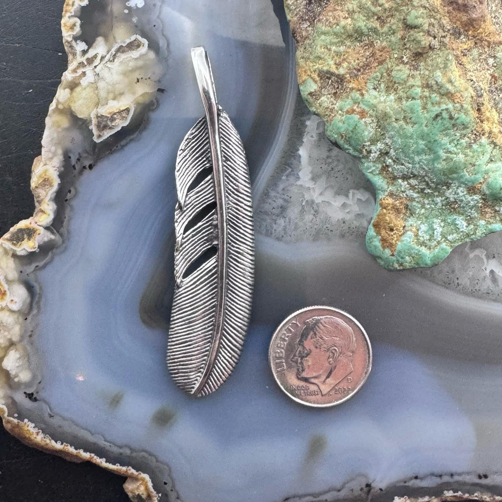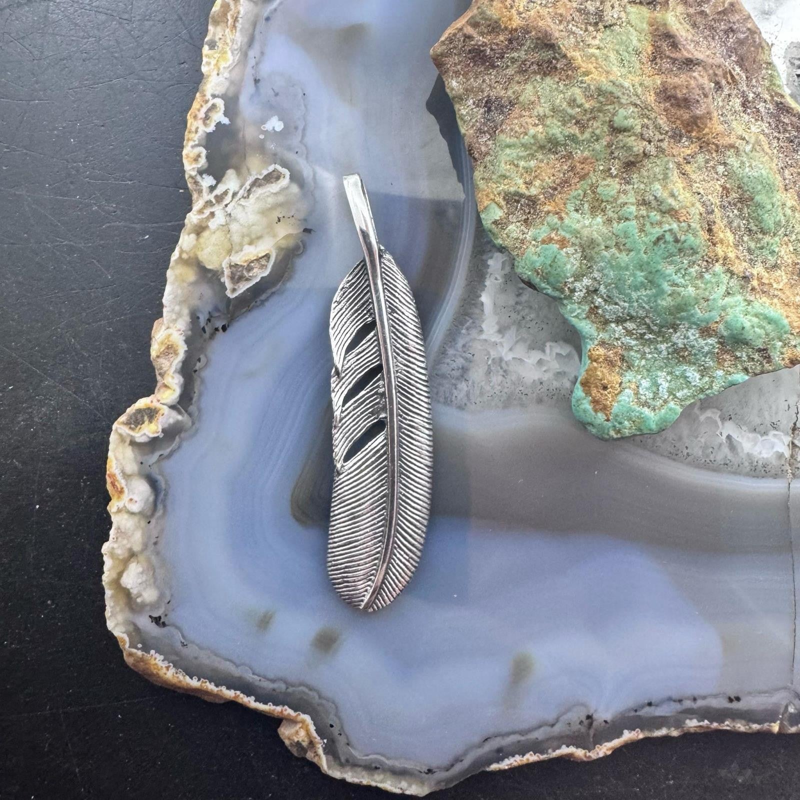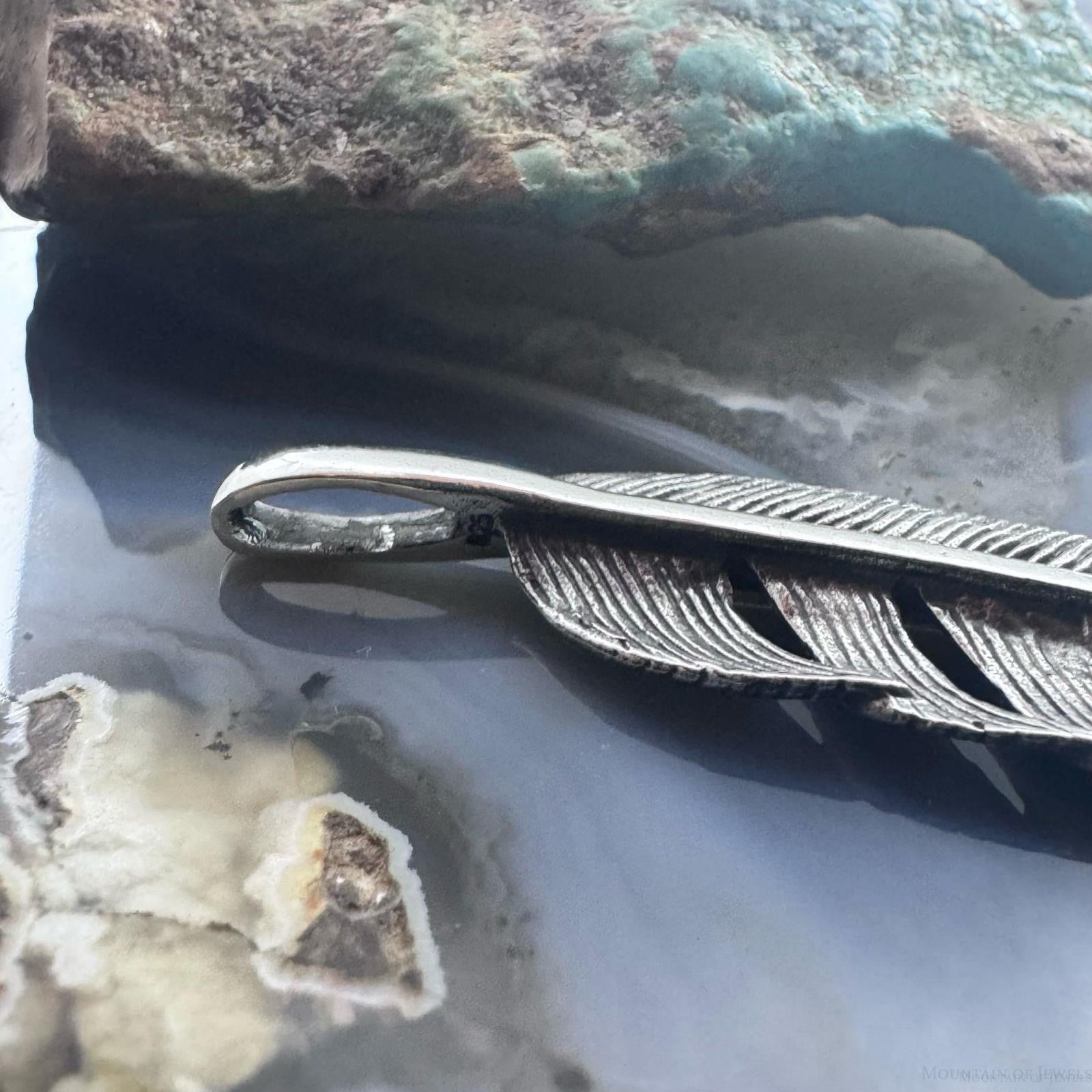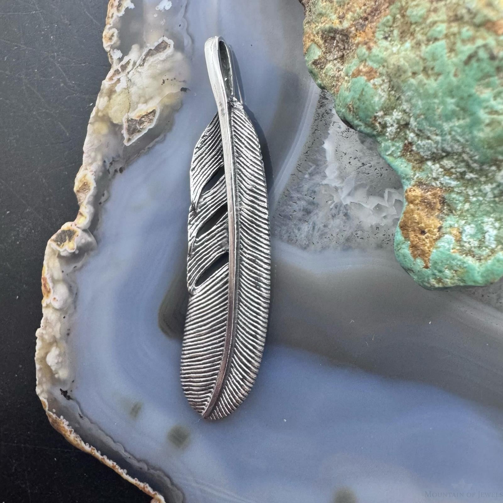 Sterling Silver Southwestern Style Curved Feather Unisex Pendant