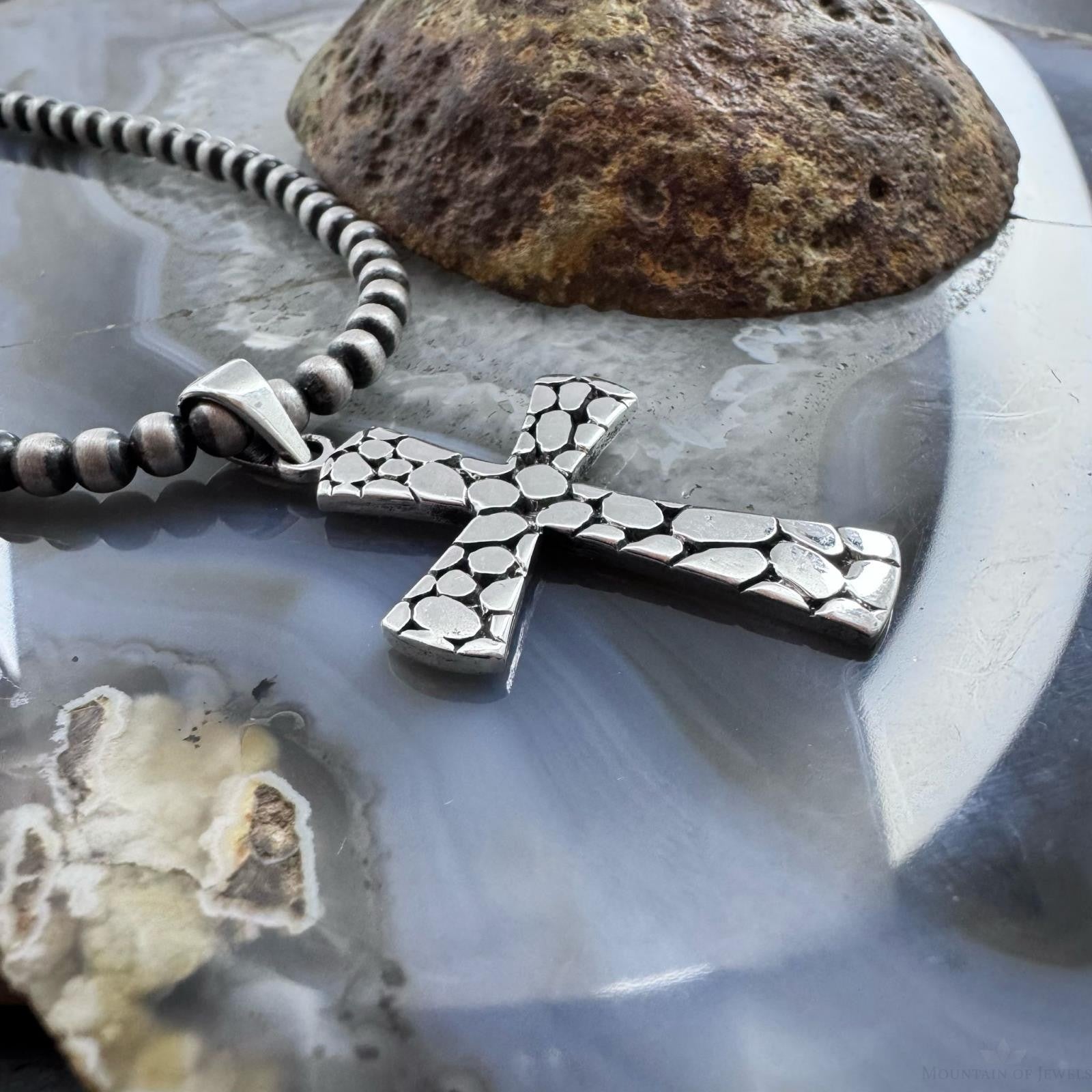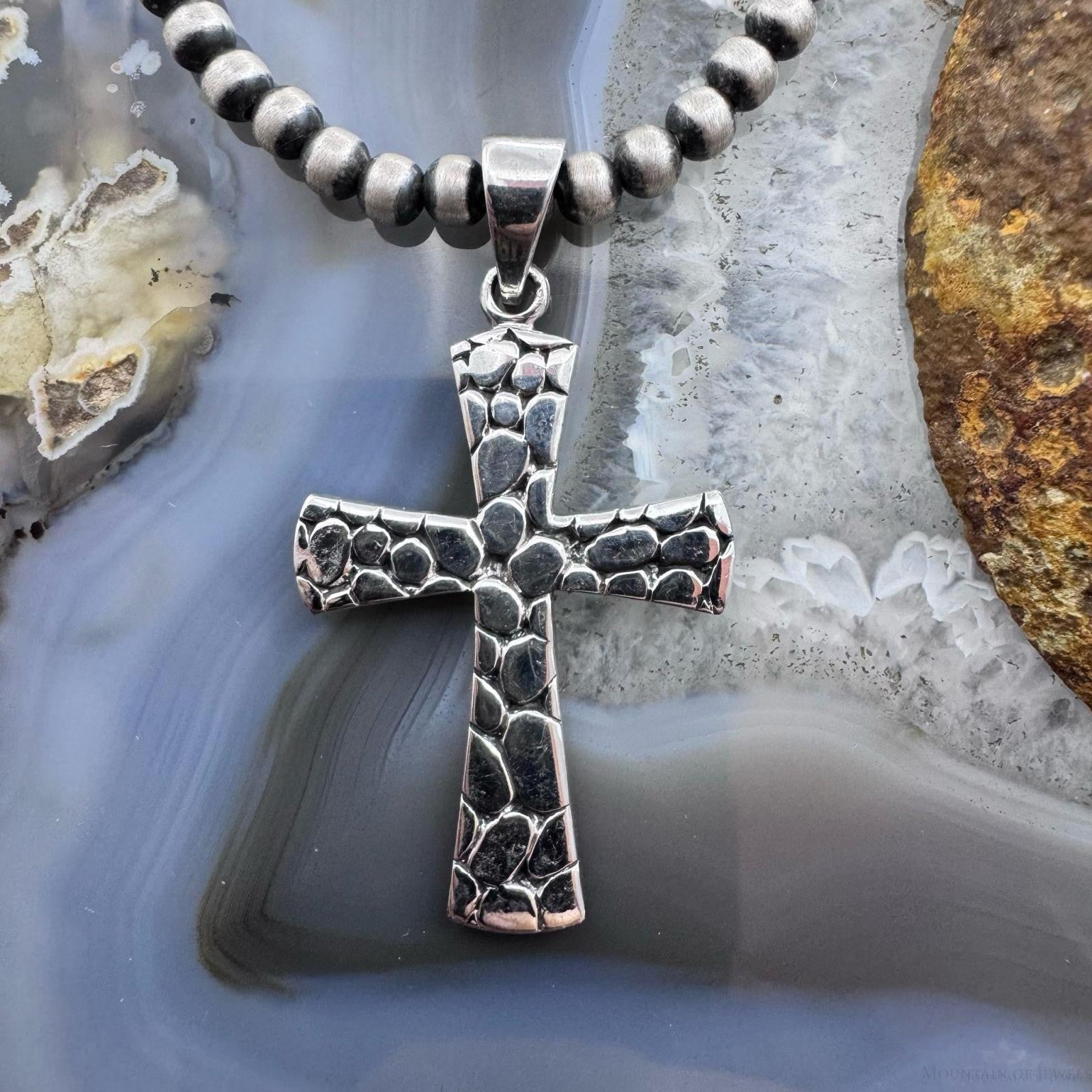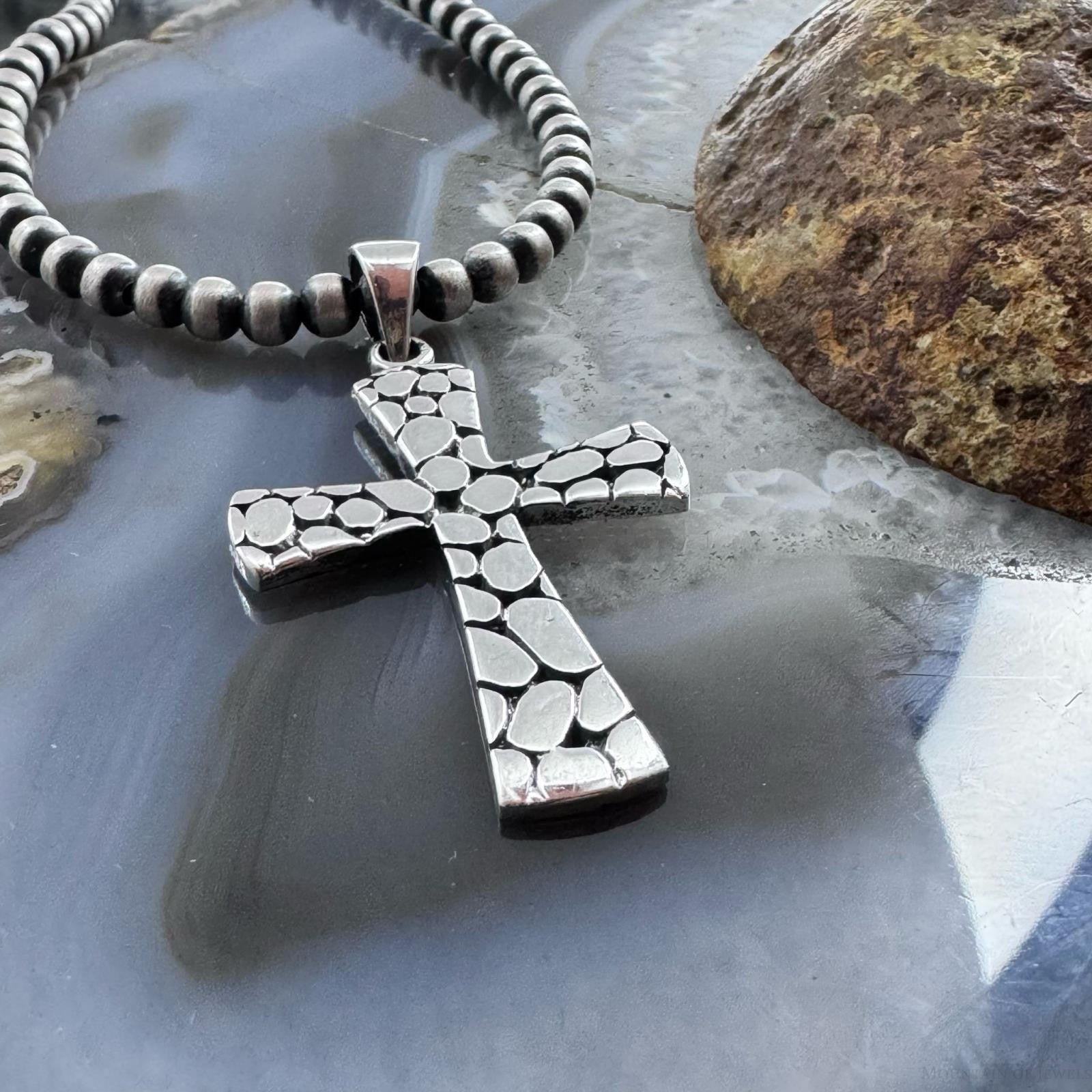 Sterling Silver Southwestern Style Decorated Unisex Cross Pendant
