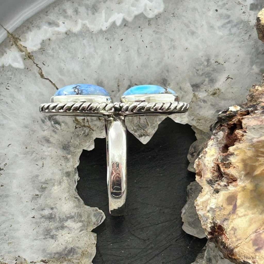Sterling Silver Southwestern Style Double Golden Hill Turquoise Ring Size 7 For Women