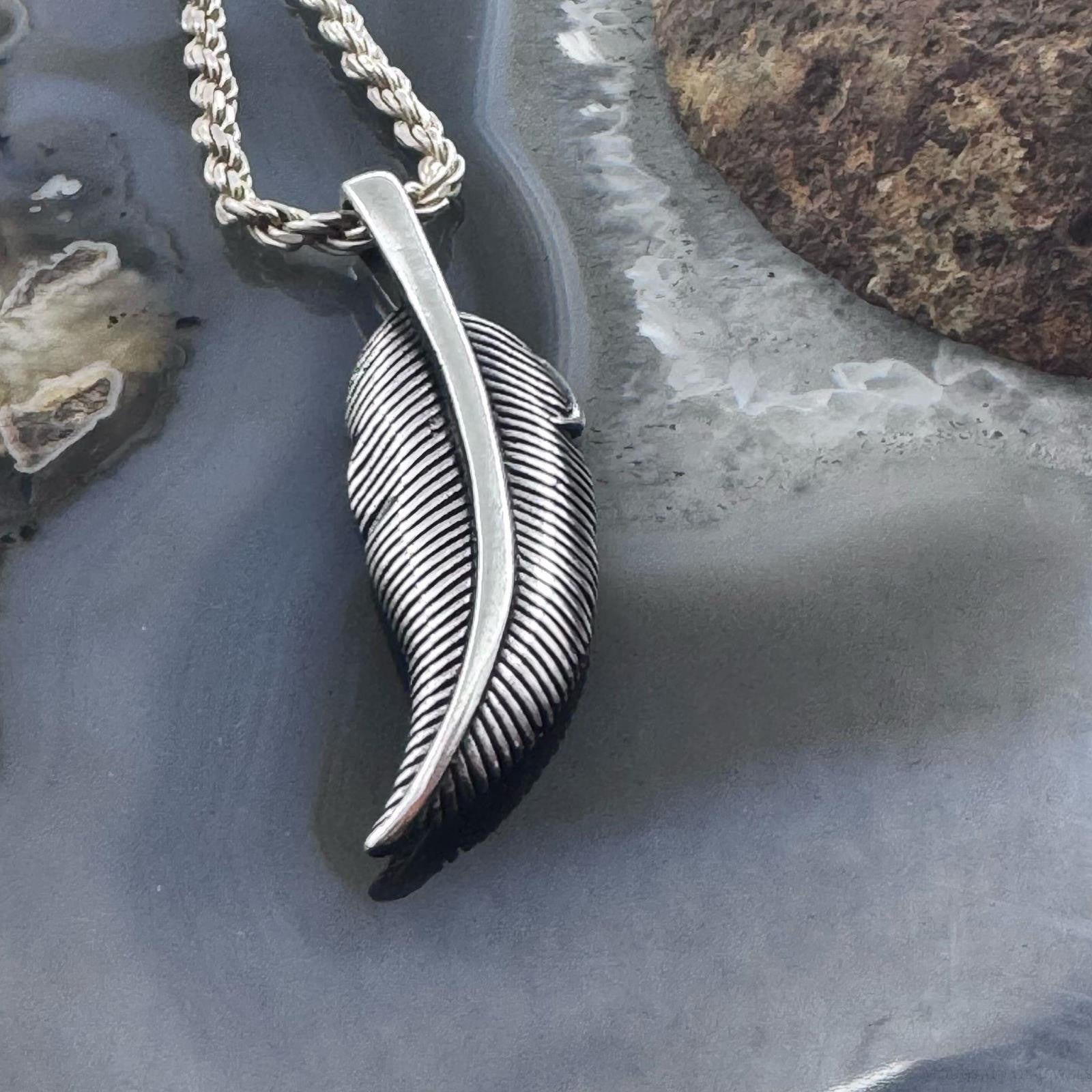 Sterling Silver Southwestern Style Engraved Feather Unisex Pendant