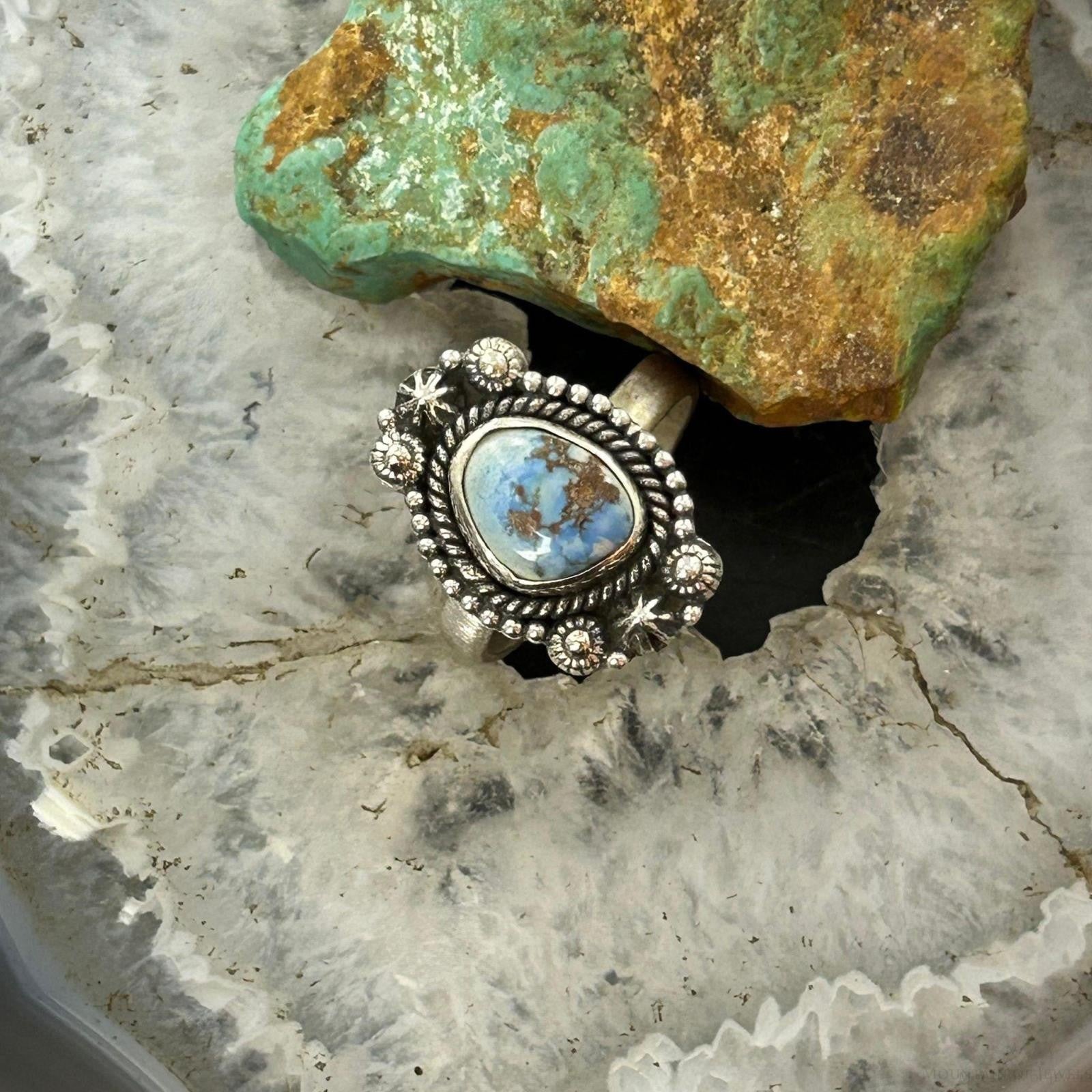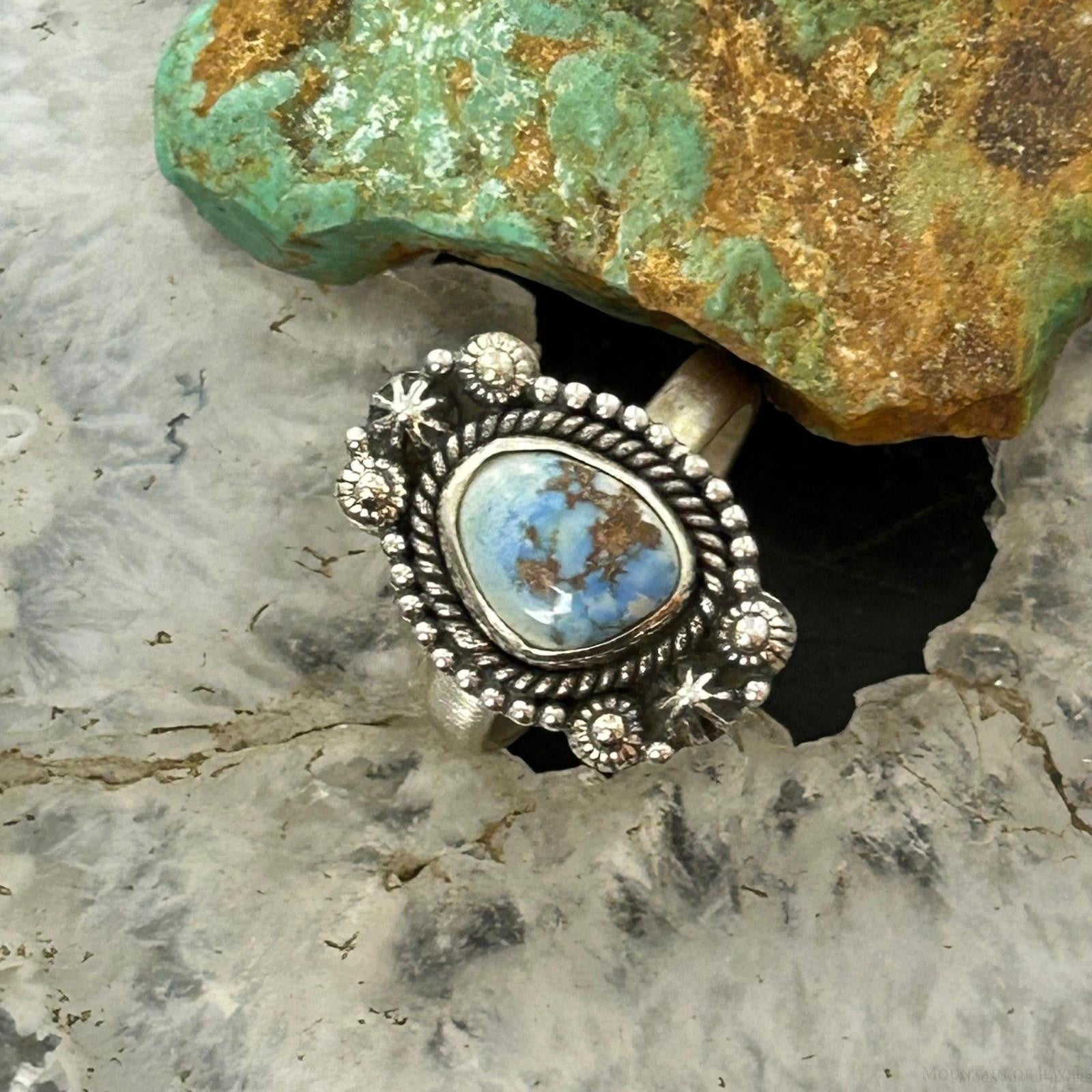 Sterling Silver Southwestern Style Golden Hill Turquoise Adjustable Ring For Women