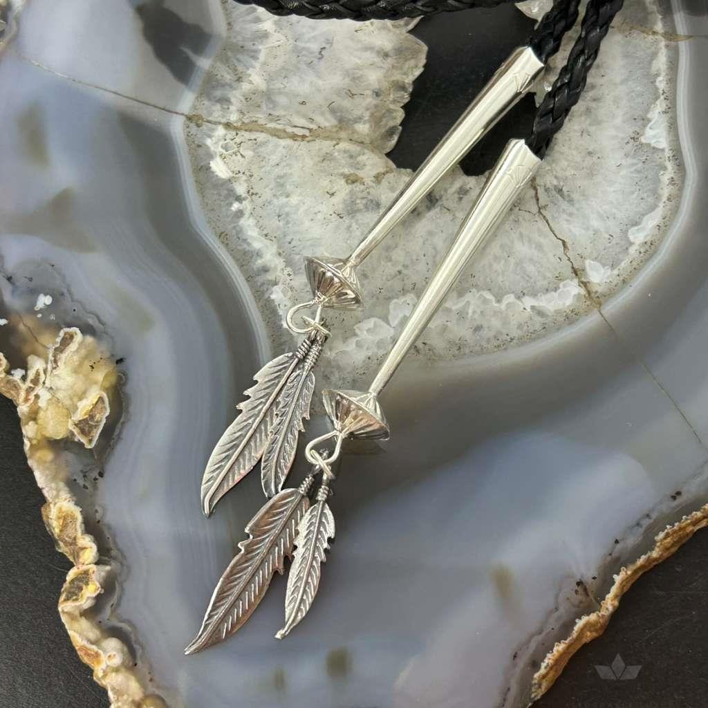 The Length of the Rope is 44" with 4 Ply New Black Leather Cord with Feather Tips.