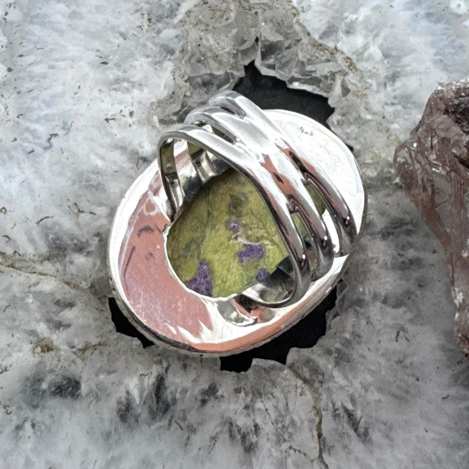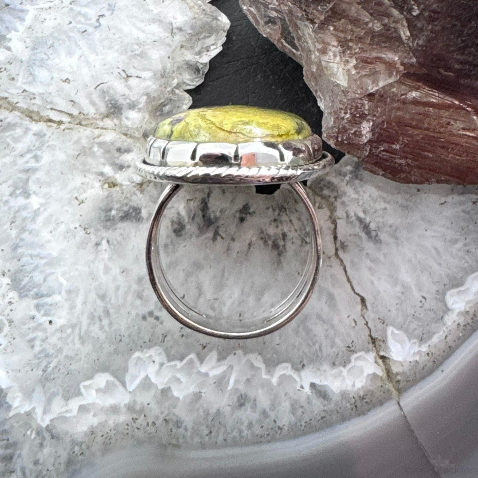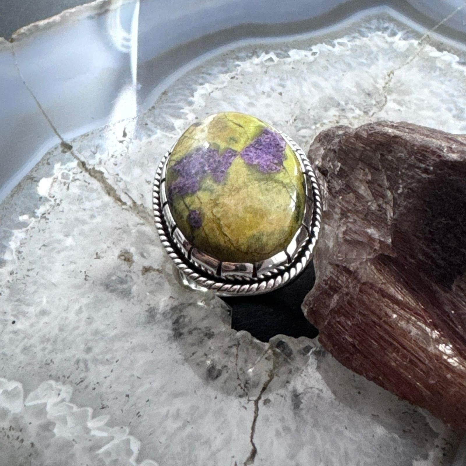Sterling Silver Southwestern Style Large Oval Atlantisite Decorated Ring Size 8.5 For Women