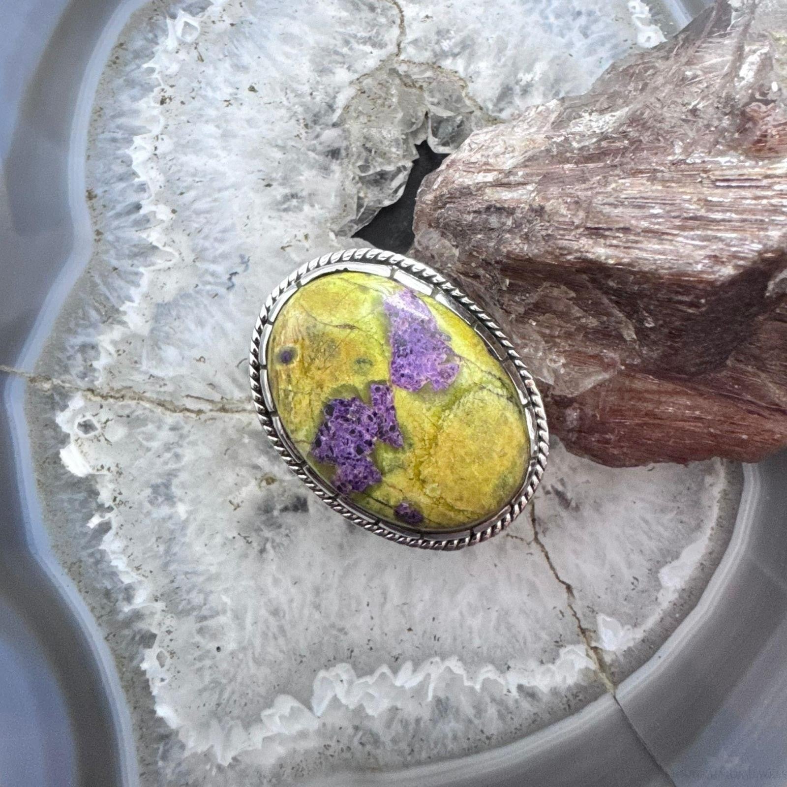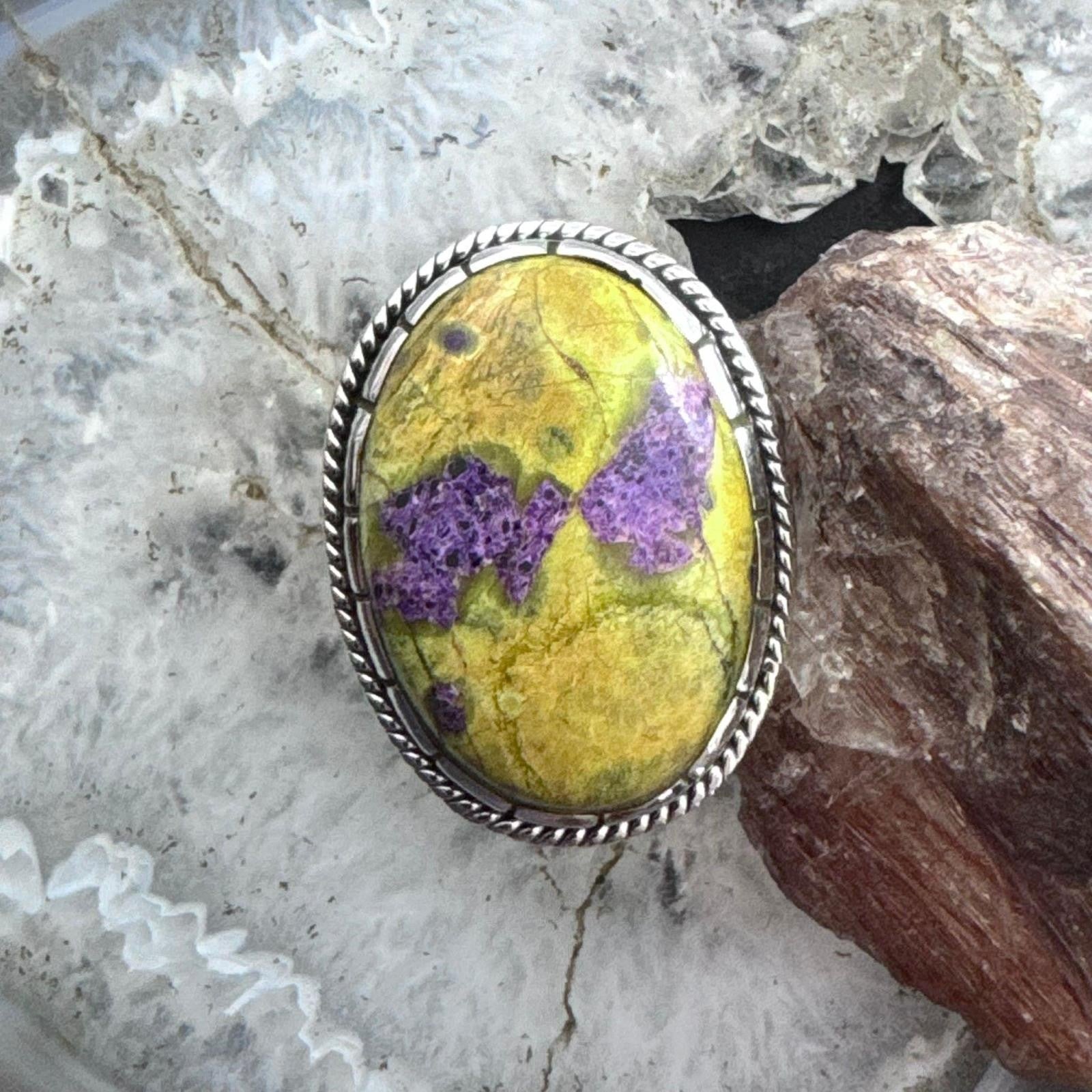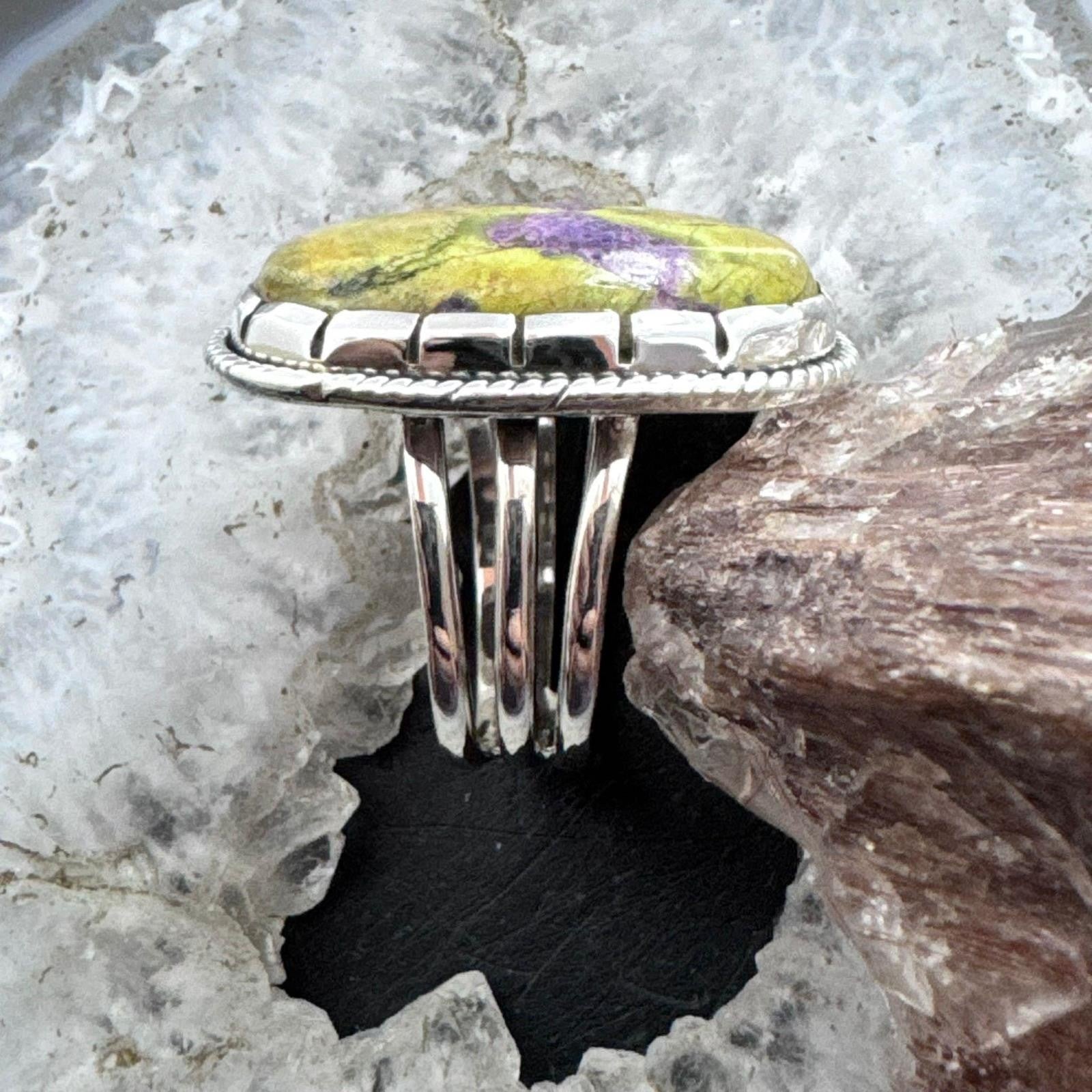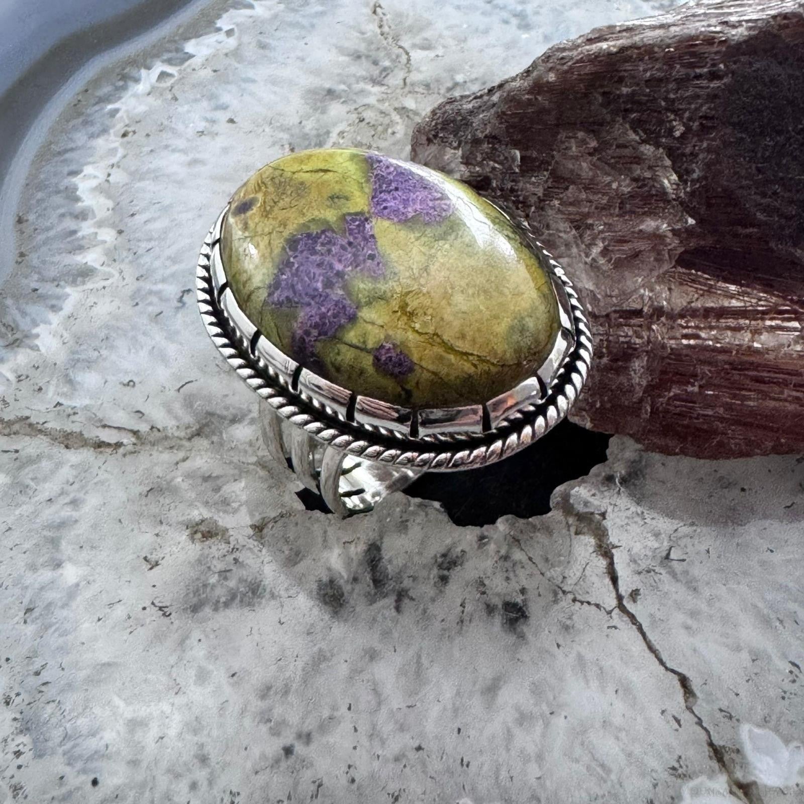 Sterling Silver Southwestern Style Large Oval Atlantisite Decorated Ring Size 8.5 For Women