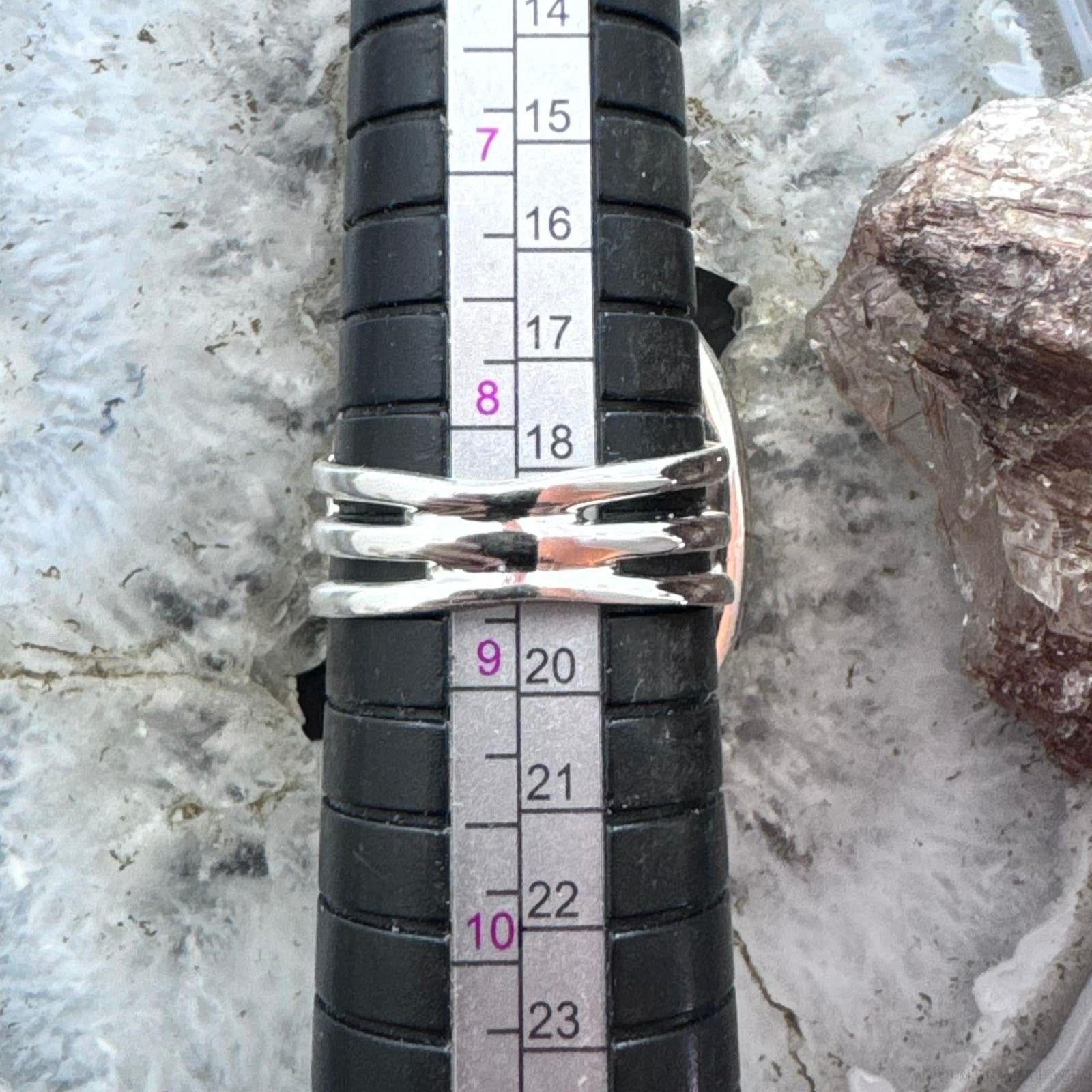 Sterling Silver Southwestern Style Large Oval Atlantisite Decorated Triple Shank Ring For Women.
