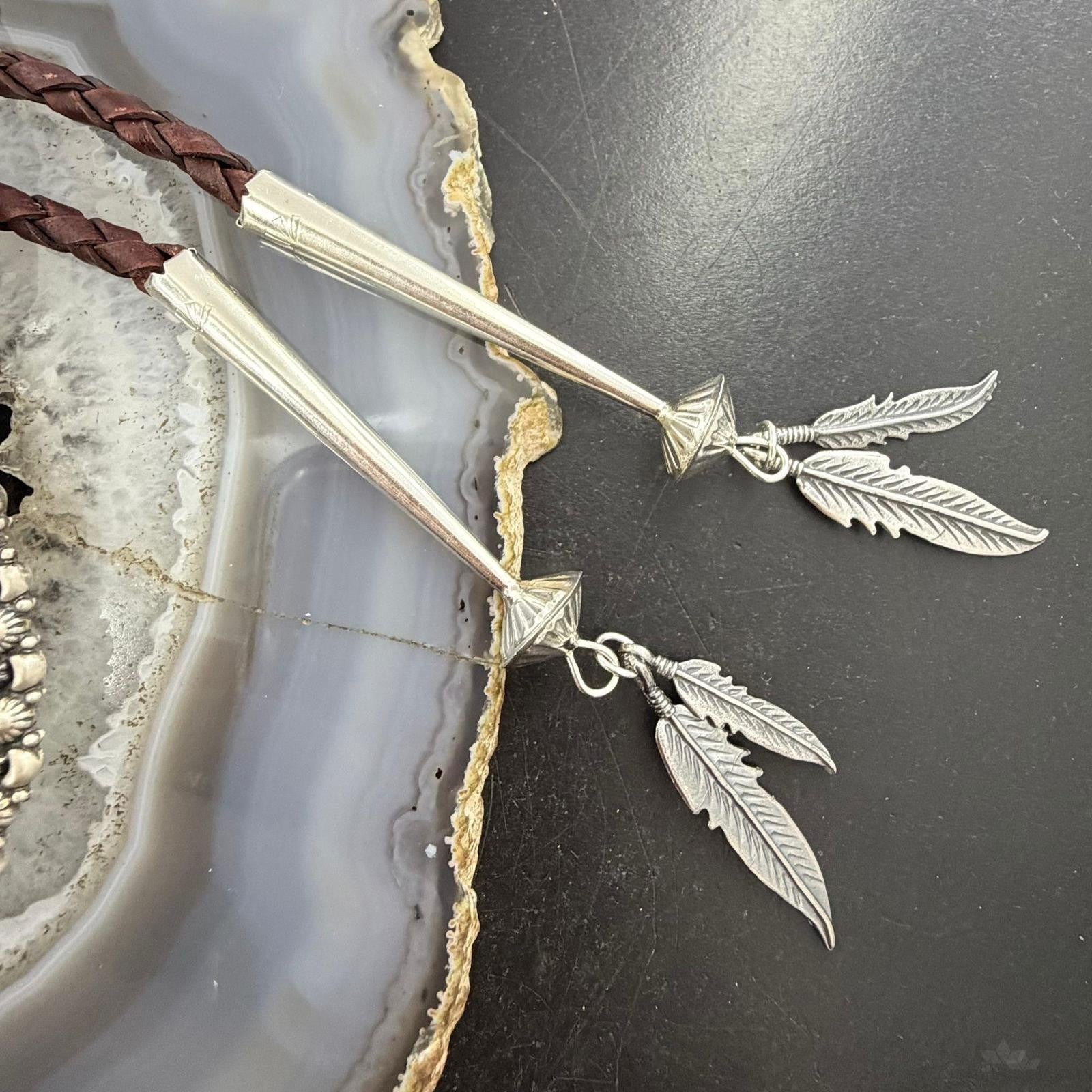 The Length of the Rope is 40" with 4 Ply New Brown Leather Cord with Feather Tips.