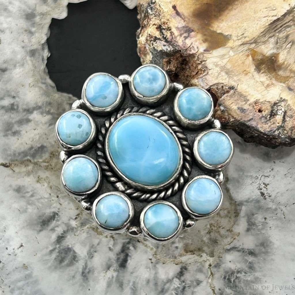 Sterling Silver Southwestern Style Larimar Cluster Ring Size 7 For Women