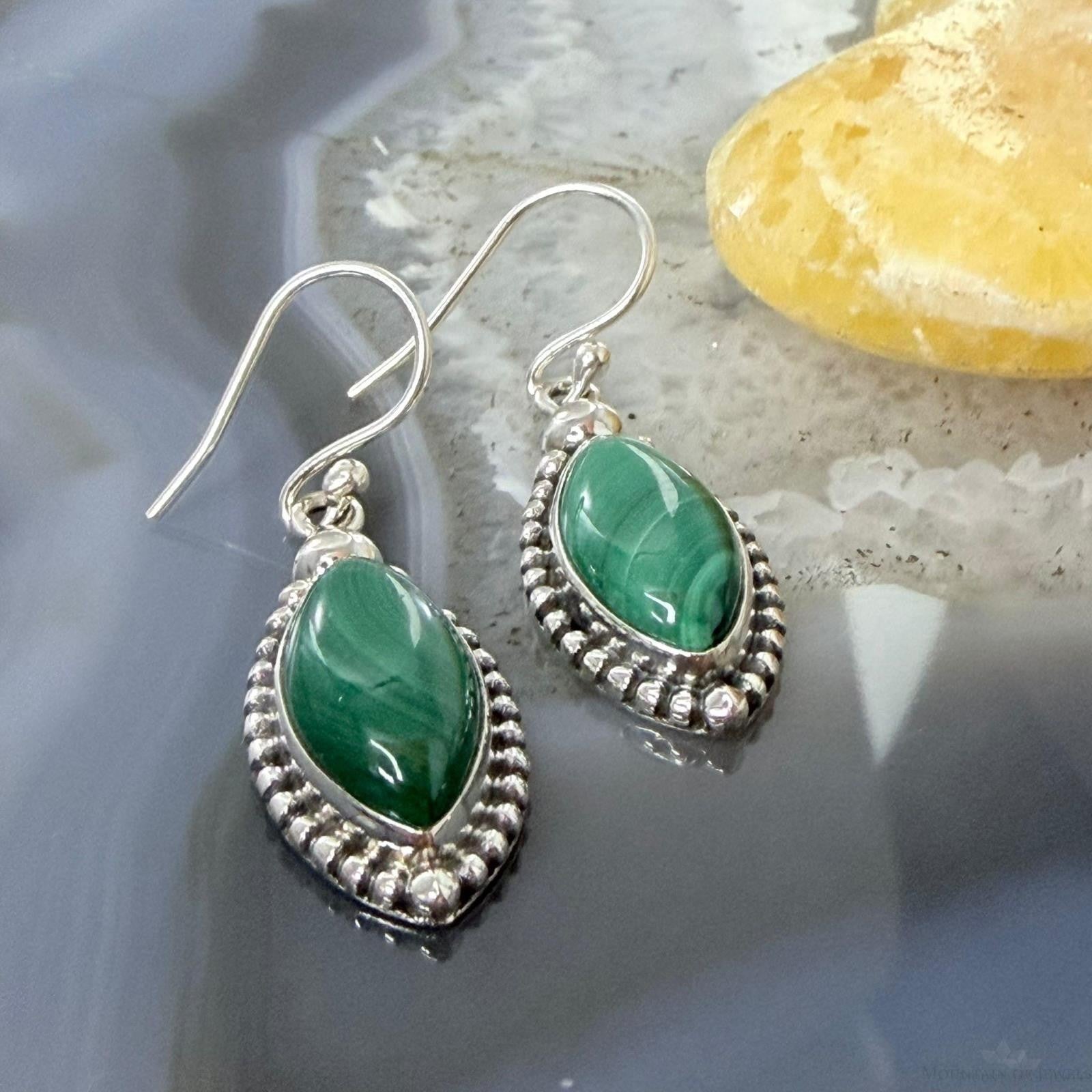 Sterling Silver Southwestern Style Marquise Malachite Dangle Earrings For Women
