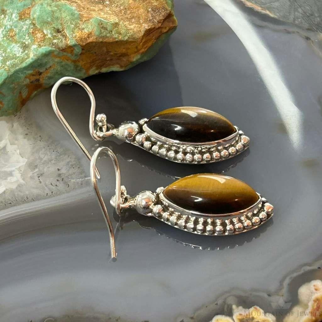 Sterling Silver Southwestern Style Marquise Tiger's Eye Earrings For Women