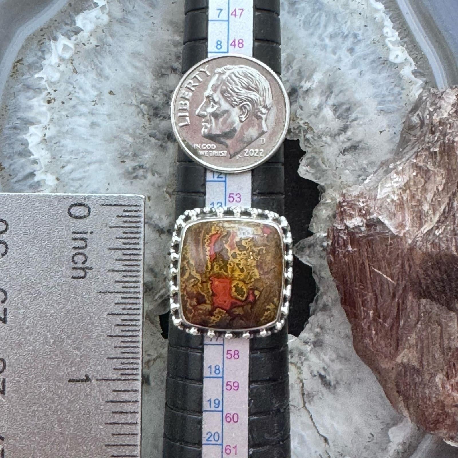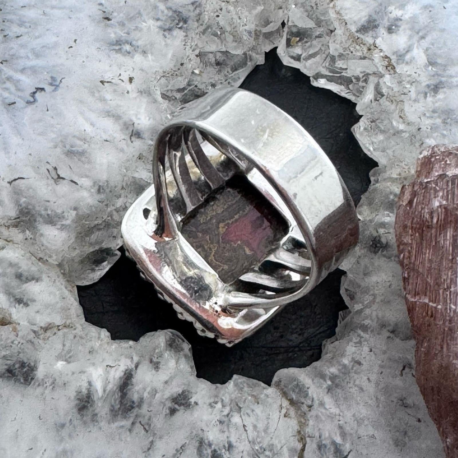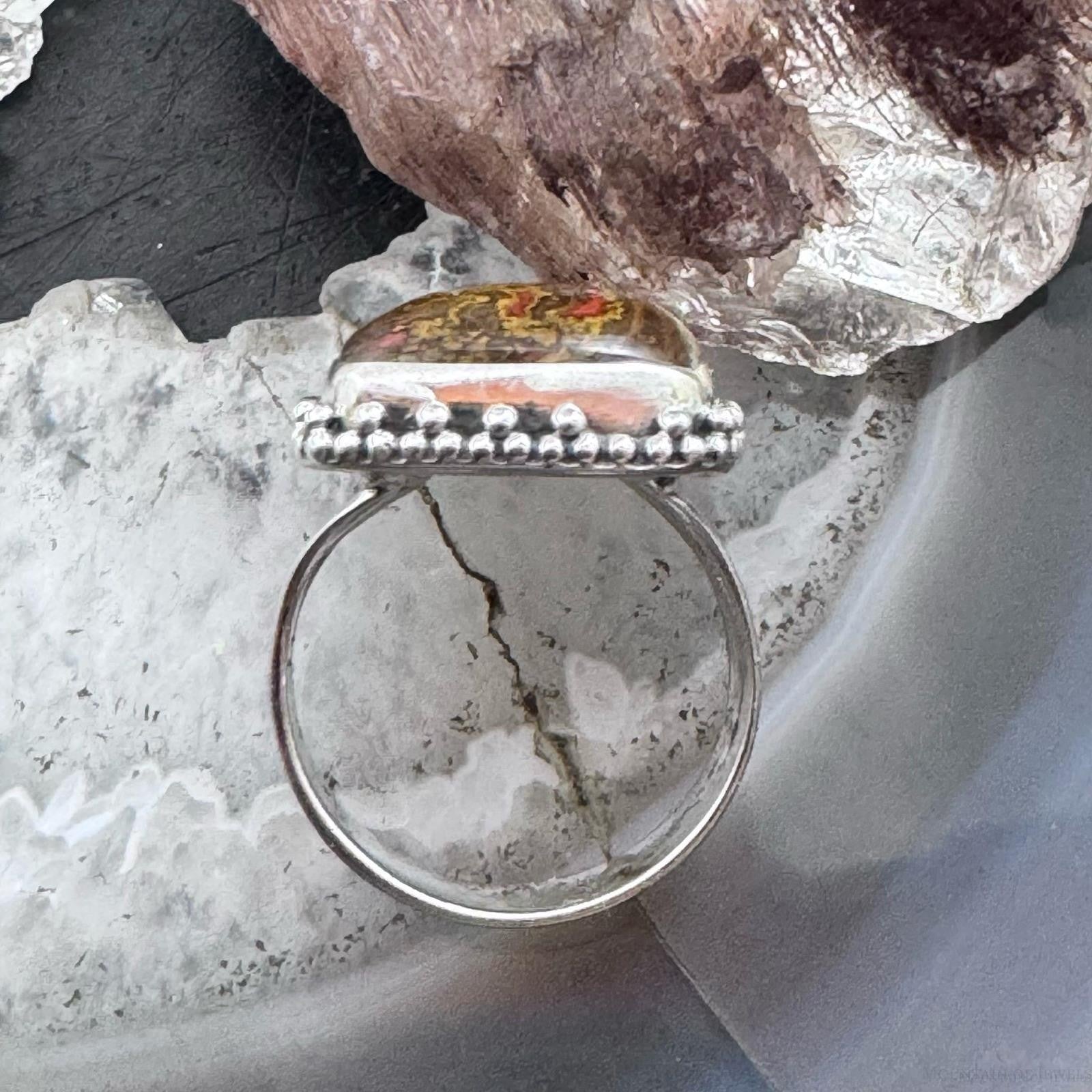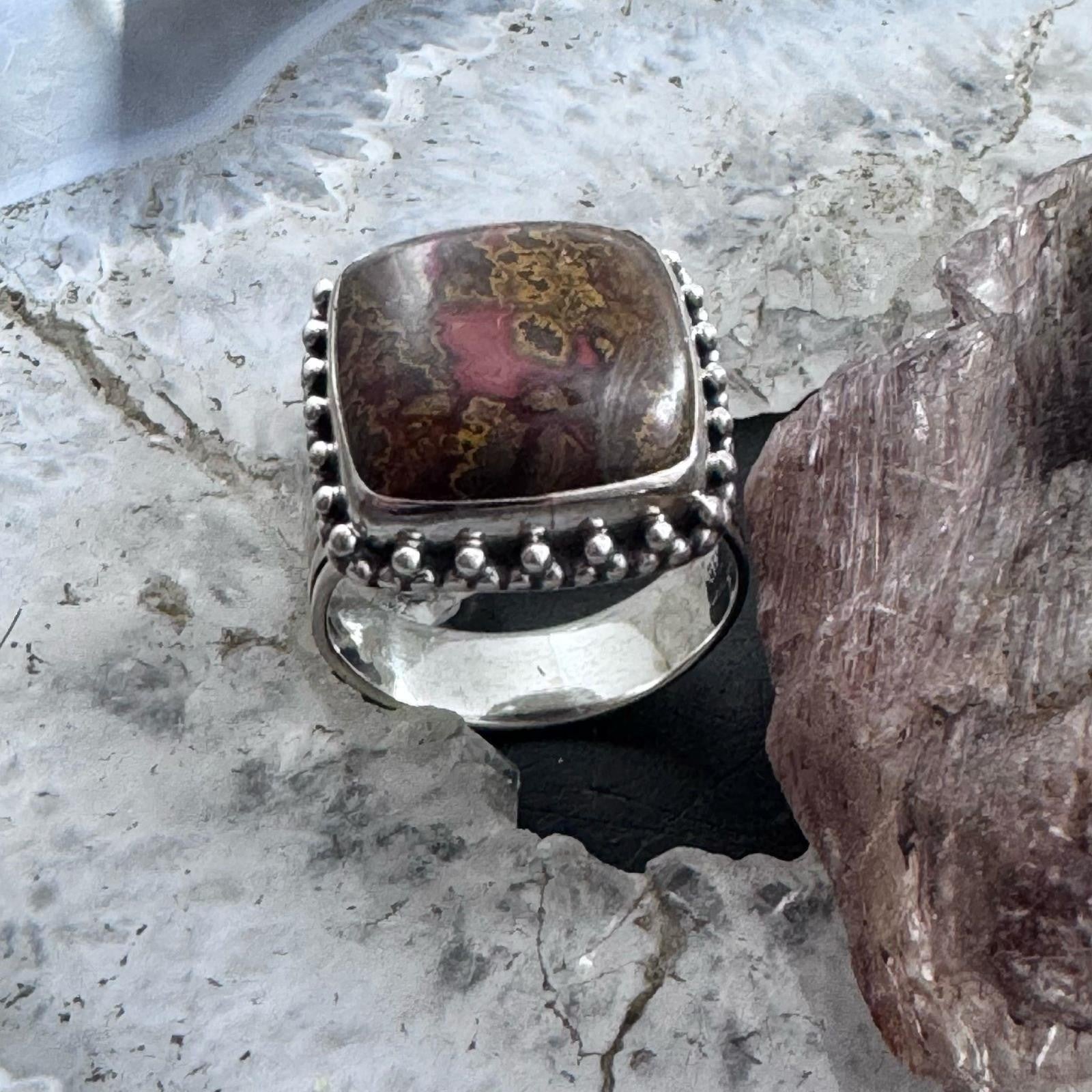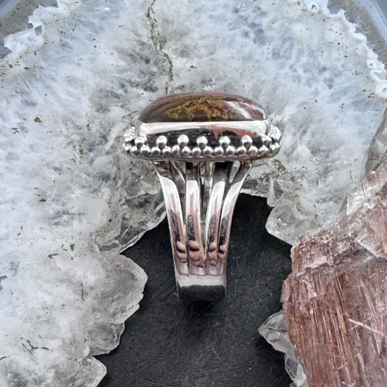 Sterling Silver Southwestern Style Moroccan Seam Agate Ring Size 7.5 For Women