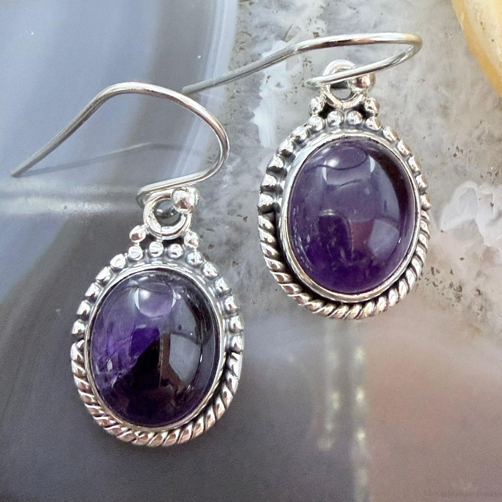Sterling Silver Southwestern Style Oval Amethyst Dangle Earrings For Women