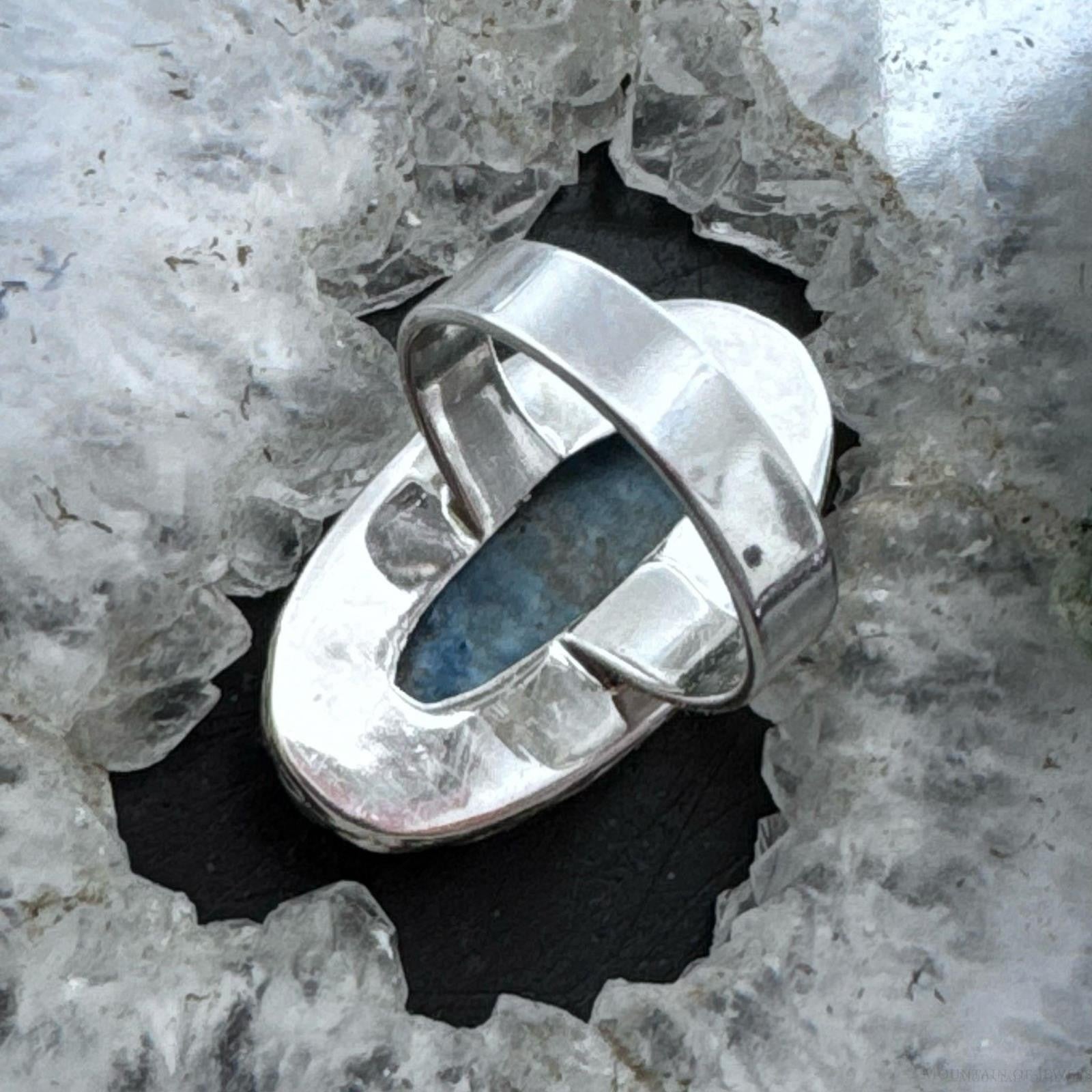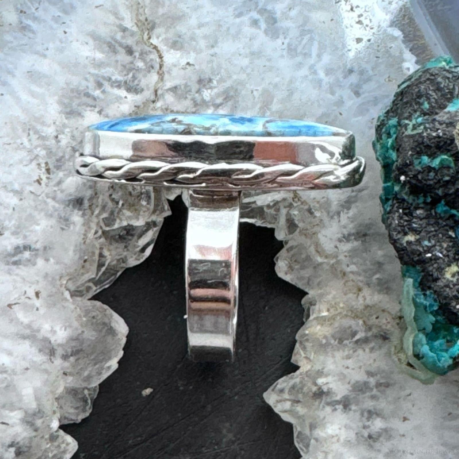 Sterling Silver Southwestern Style Oval Blue Apatite Ring Size 6.5 For Women