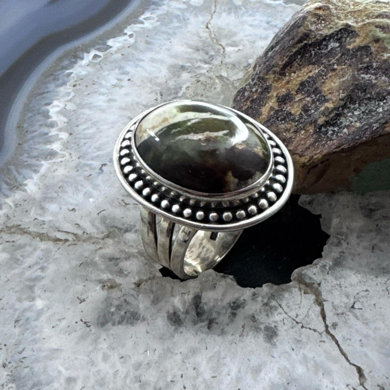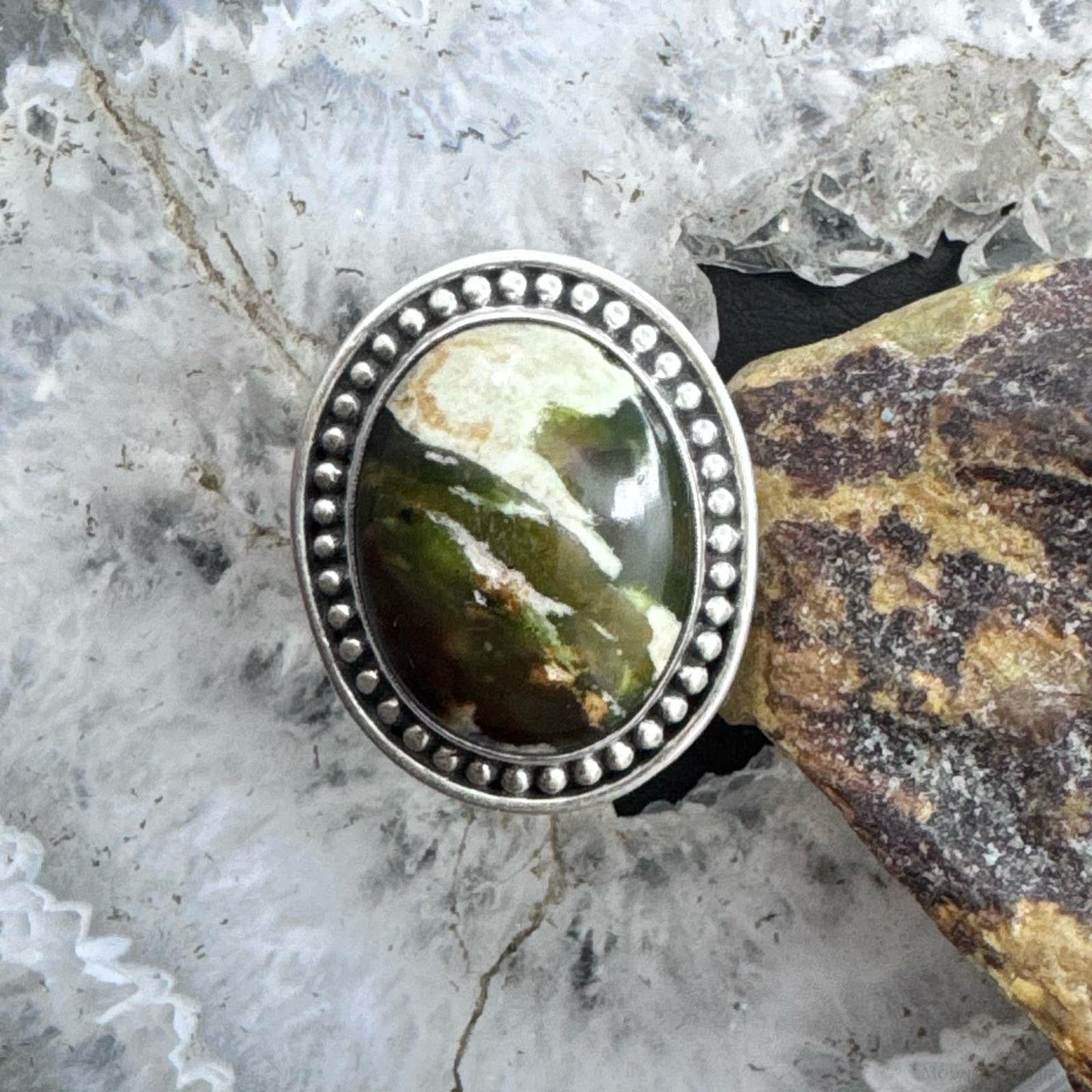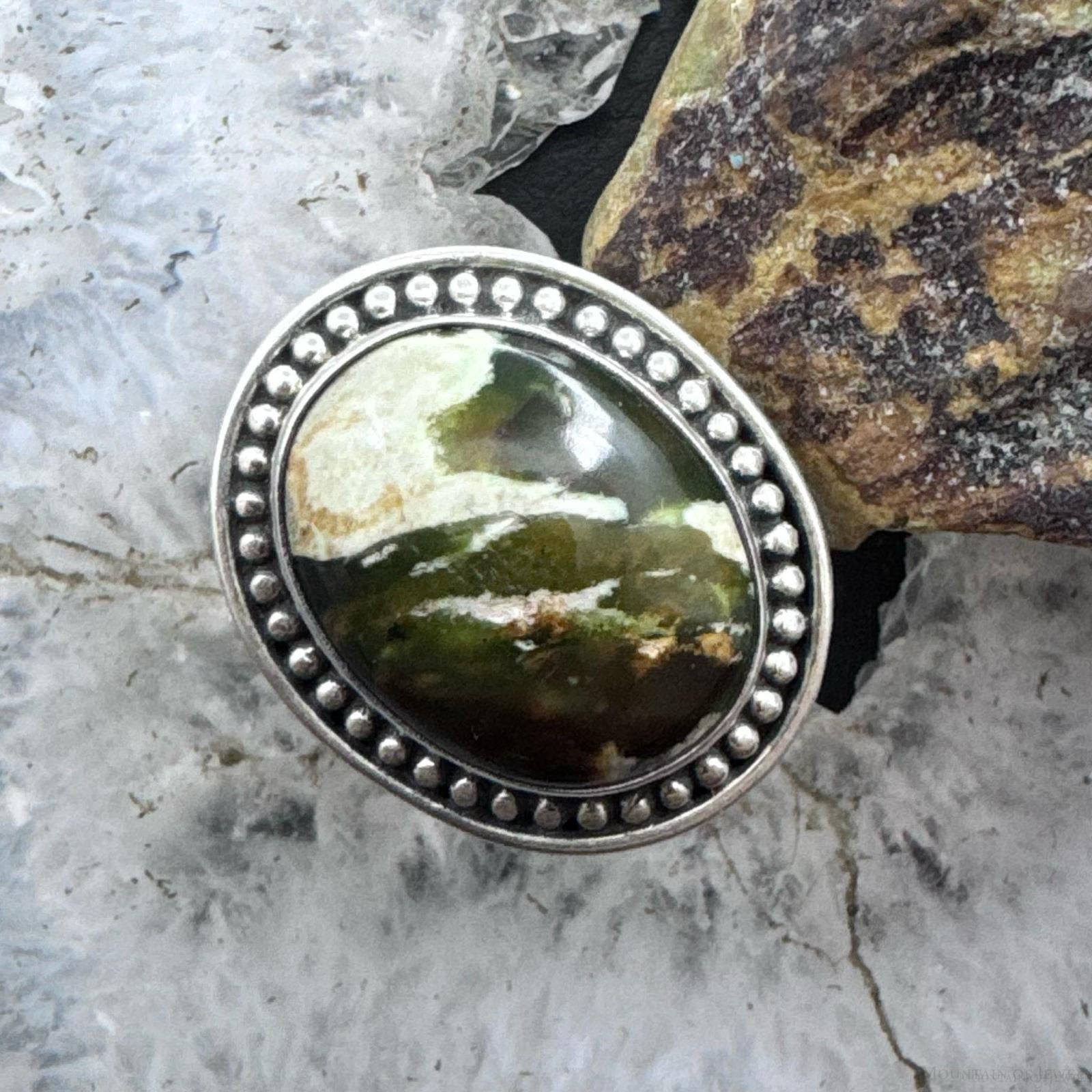 Sterling Silver Southwestern Style Oval Chrome Chalcedony Ring Size 7.75 For Women