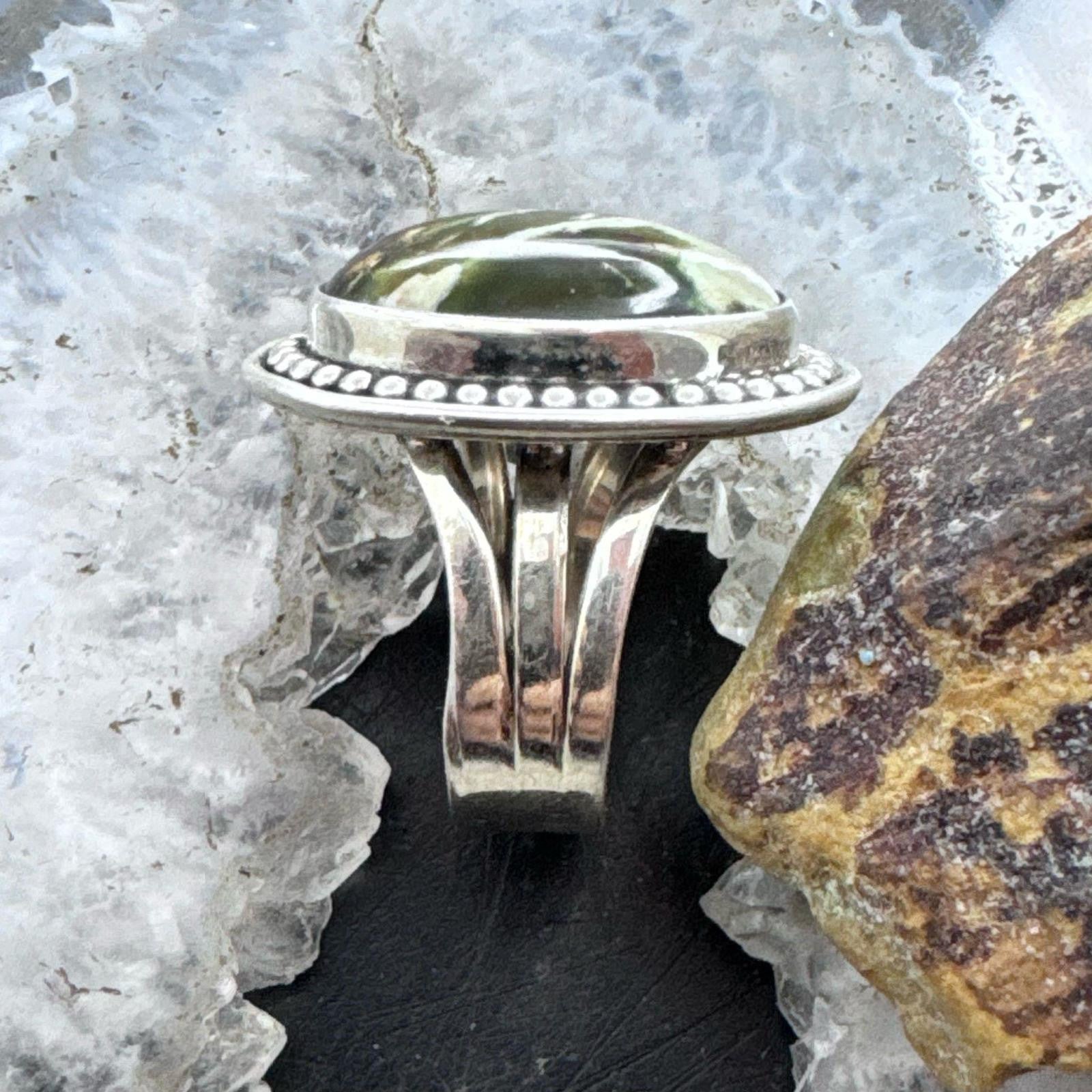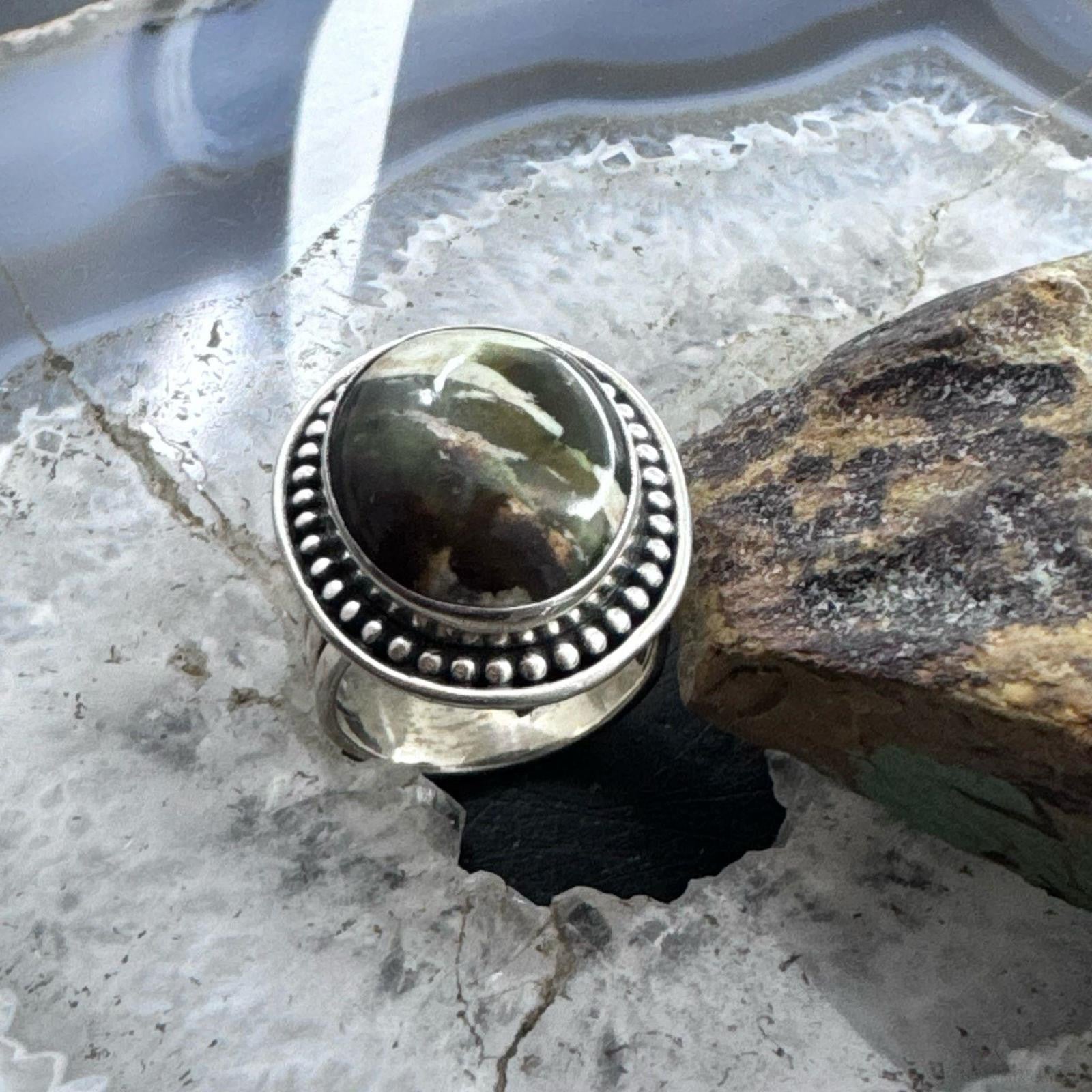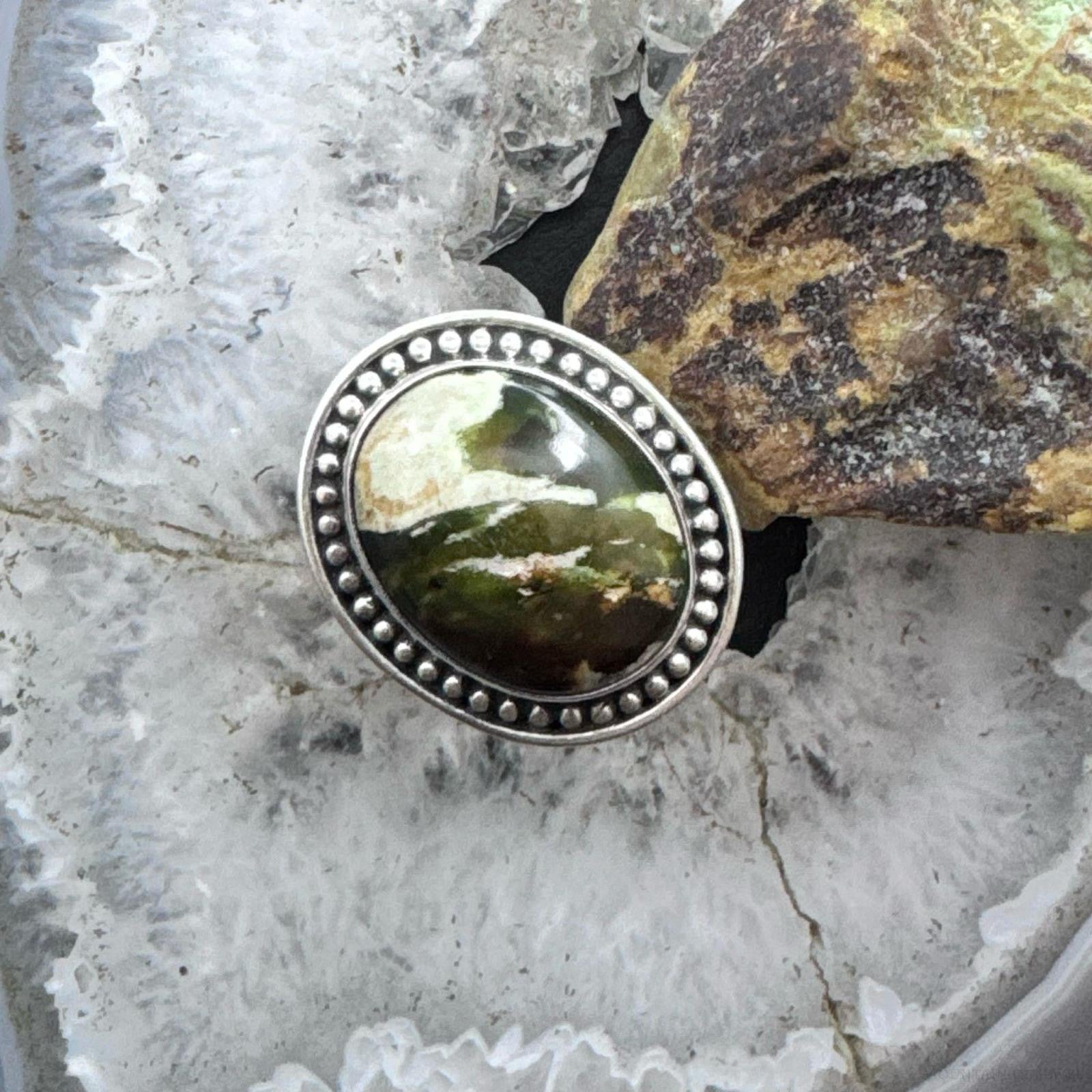 Sterling Silver Southwestern Style Oval Chrome Chalcedony Ring Size 7.75 For Women