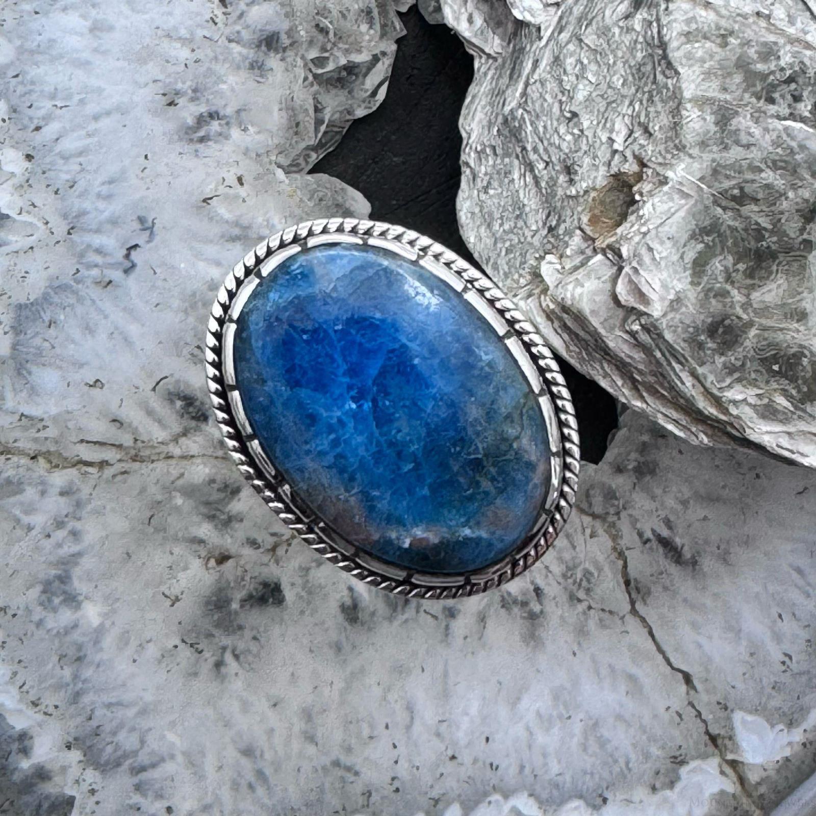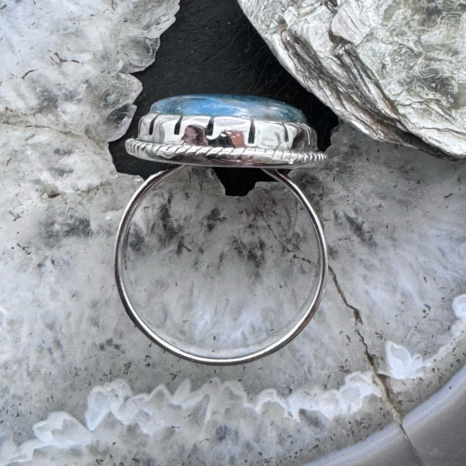 Sterling Silver Southwestern Style Oval Chrysocolla Ring Size 9.5 For Women