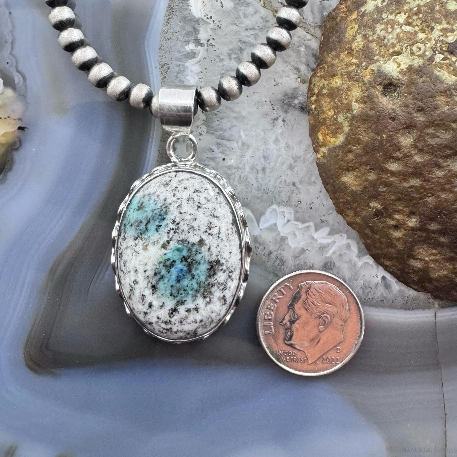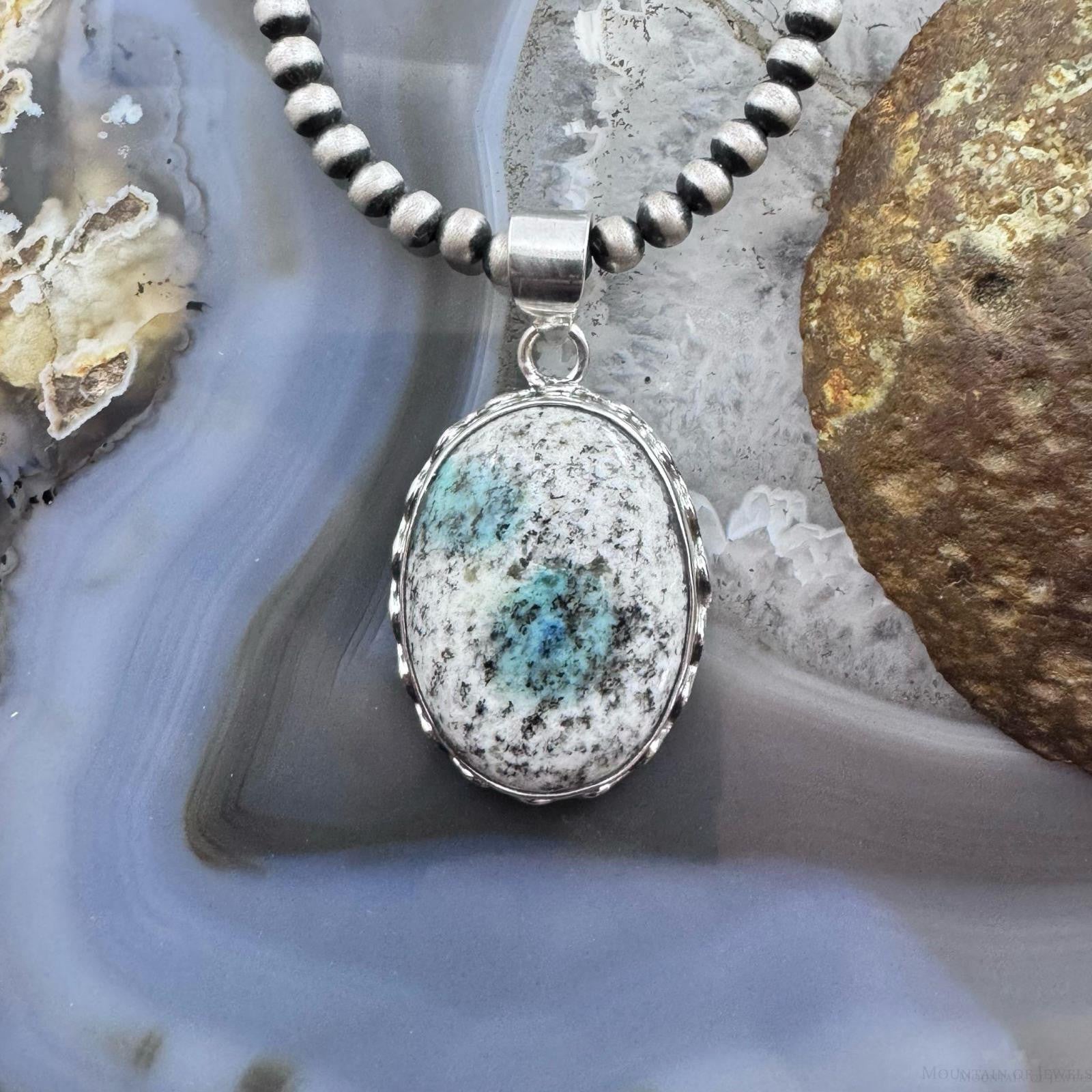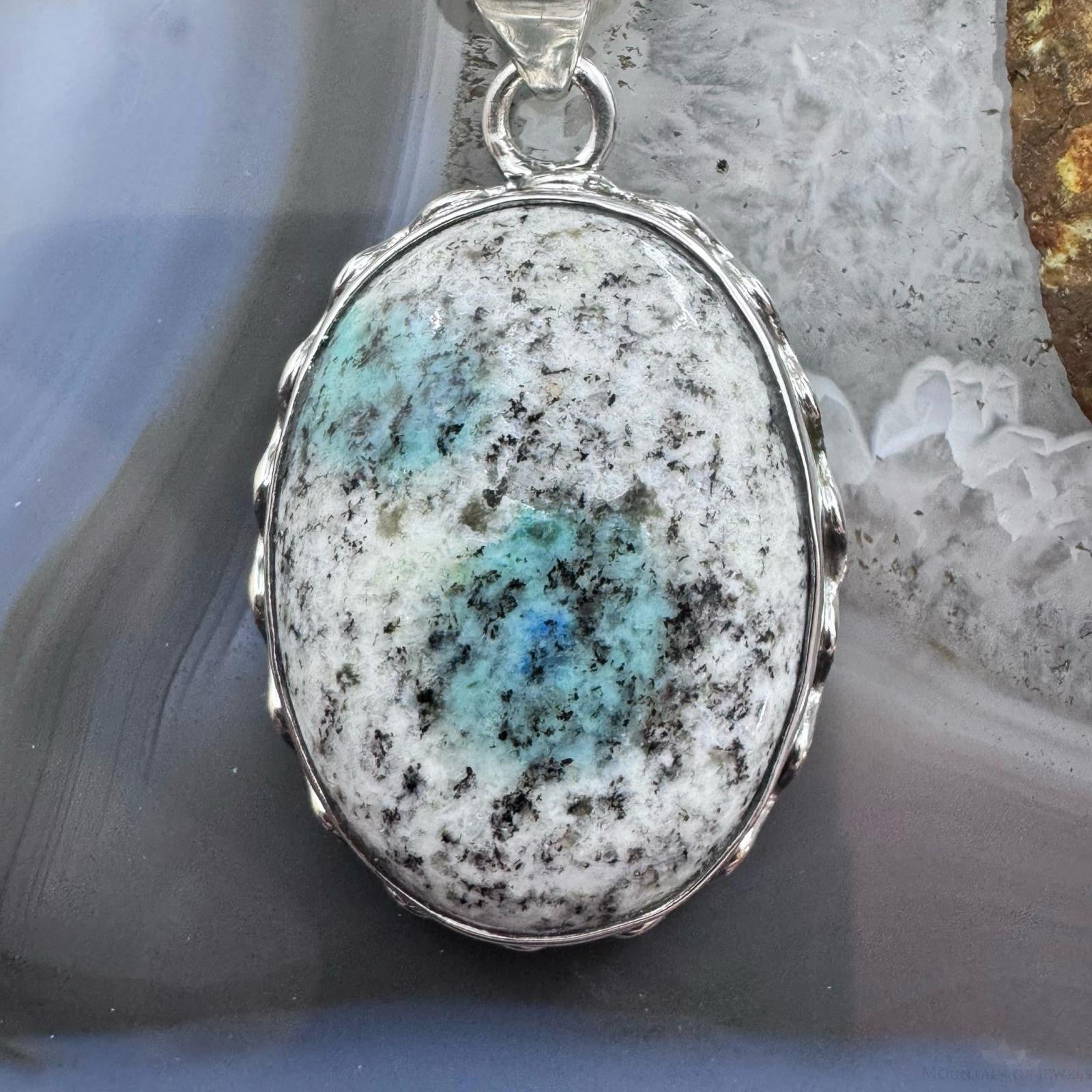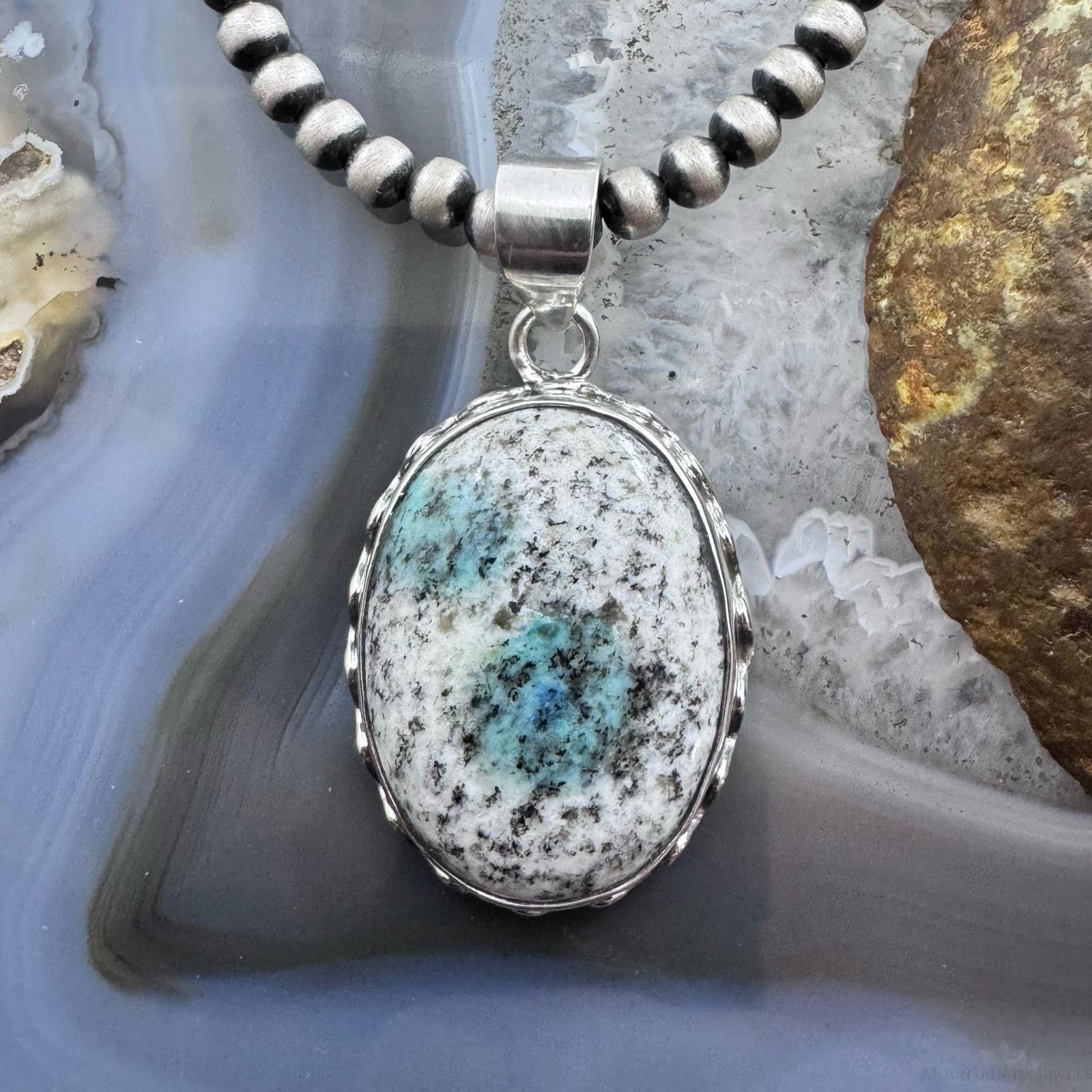 Sterling Silver Southwestern Style Oval K2 Jasper Decorated Pendant For Women