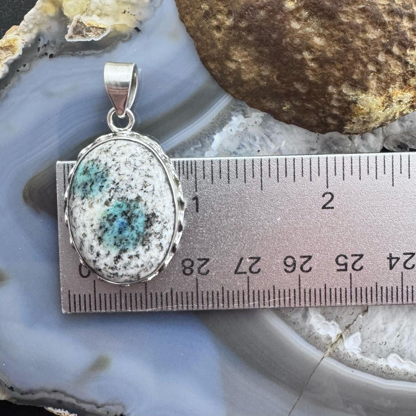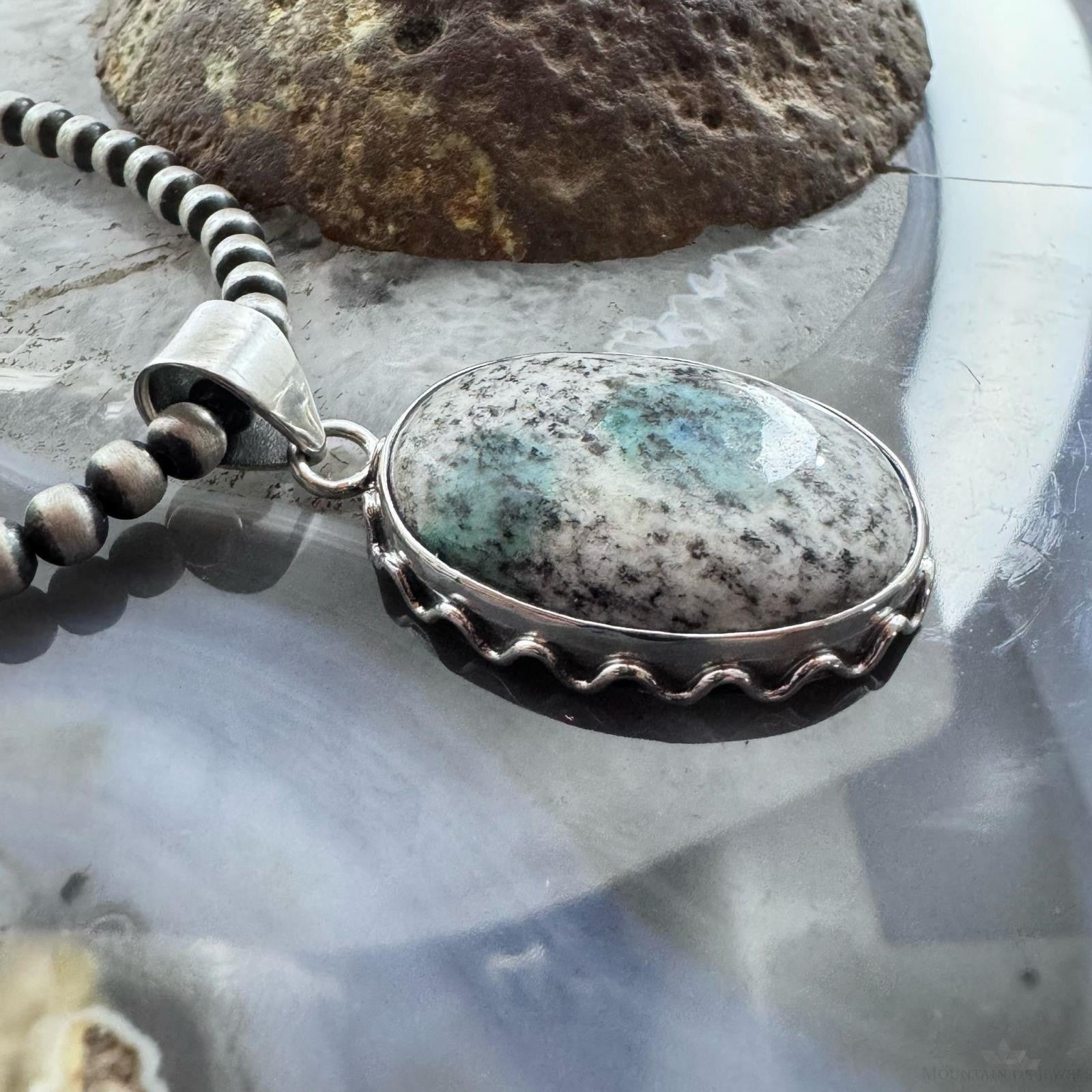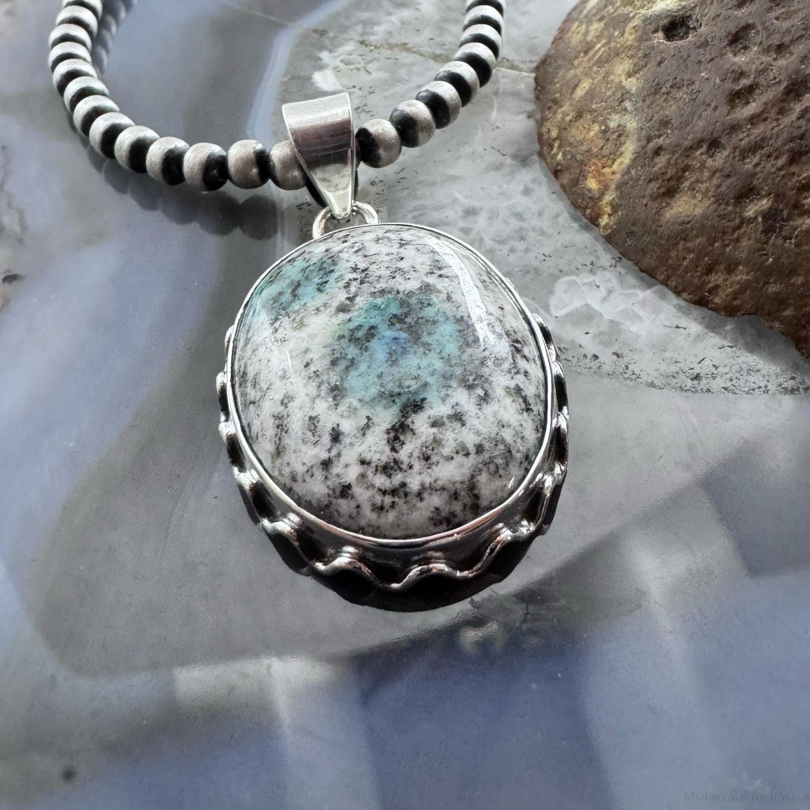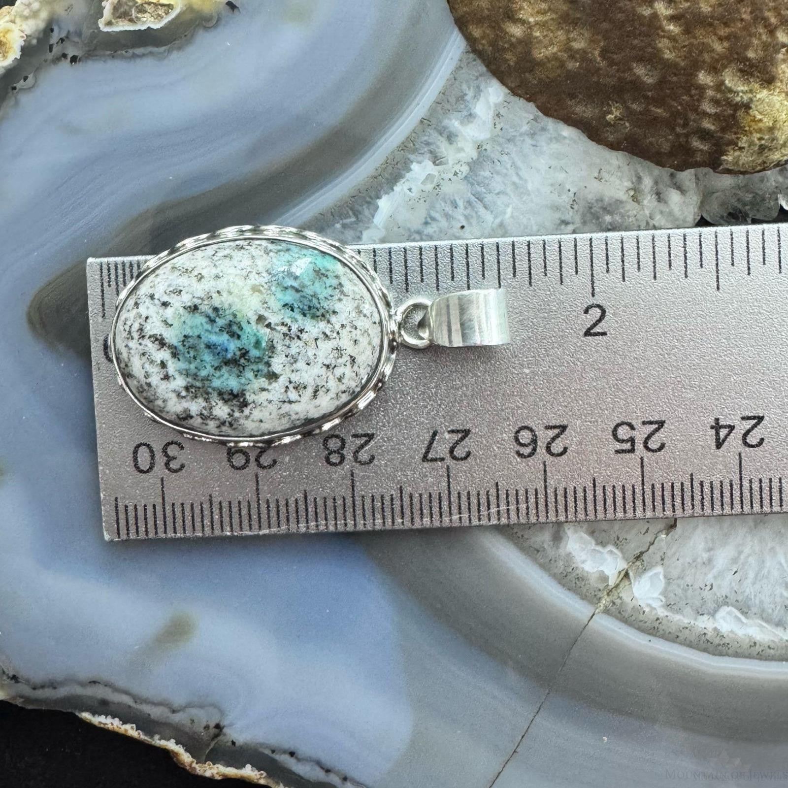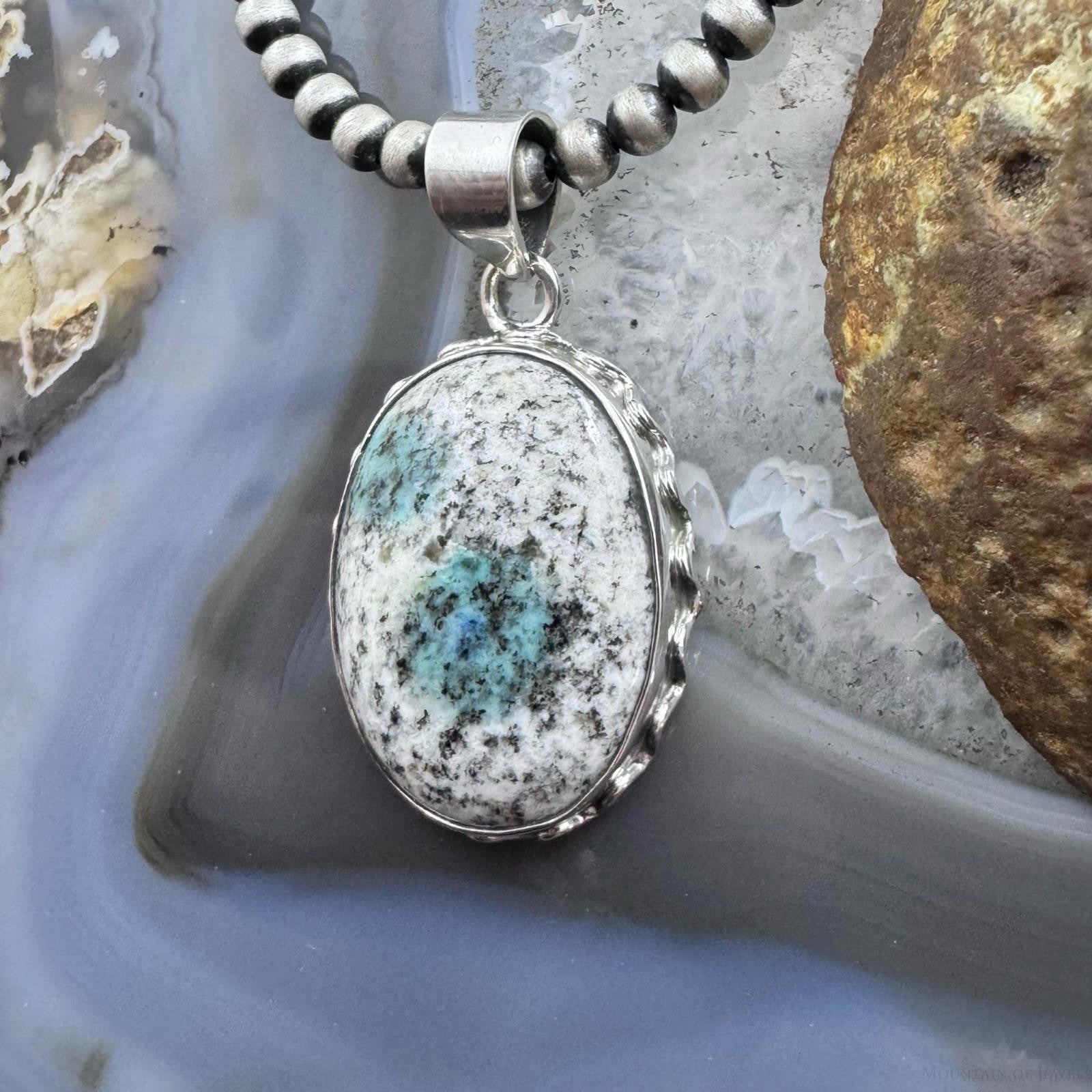 Sterling Silver Southwestern Style Oval K2 Jasper Decorated Pendant For Women