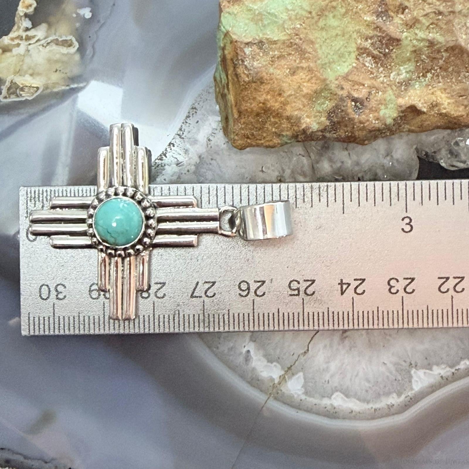 Sterling Silver Southwestern Style Rounded Mohave Turquoise Unisex Zia Pendant