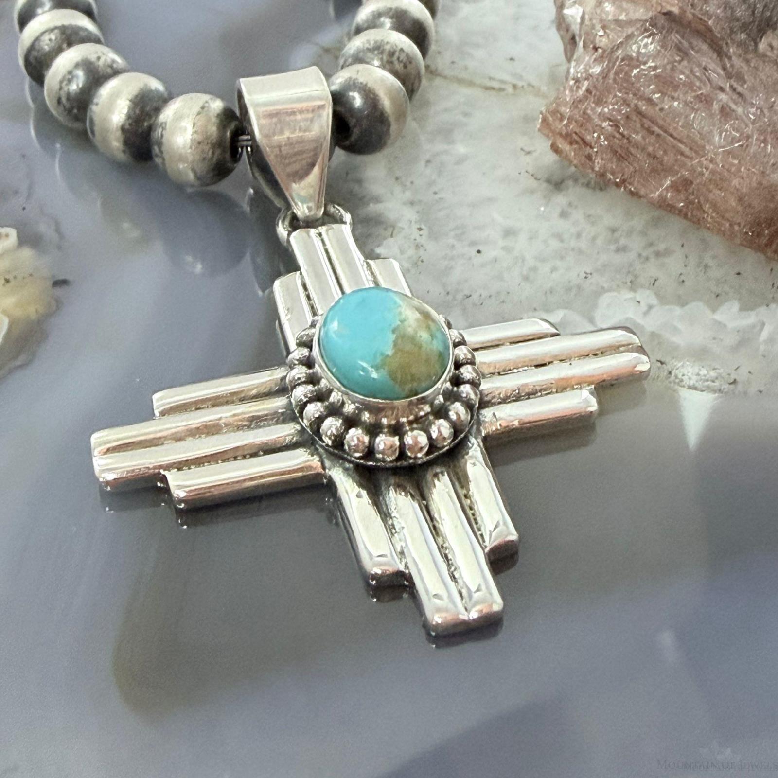 Sterling Silver Southwestern Style Oval Mohave Turquoise Unisex Zia Pendant #2