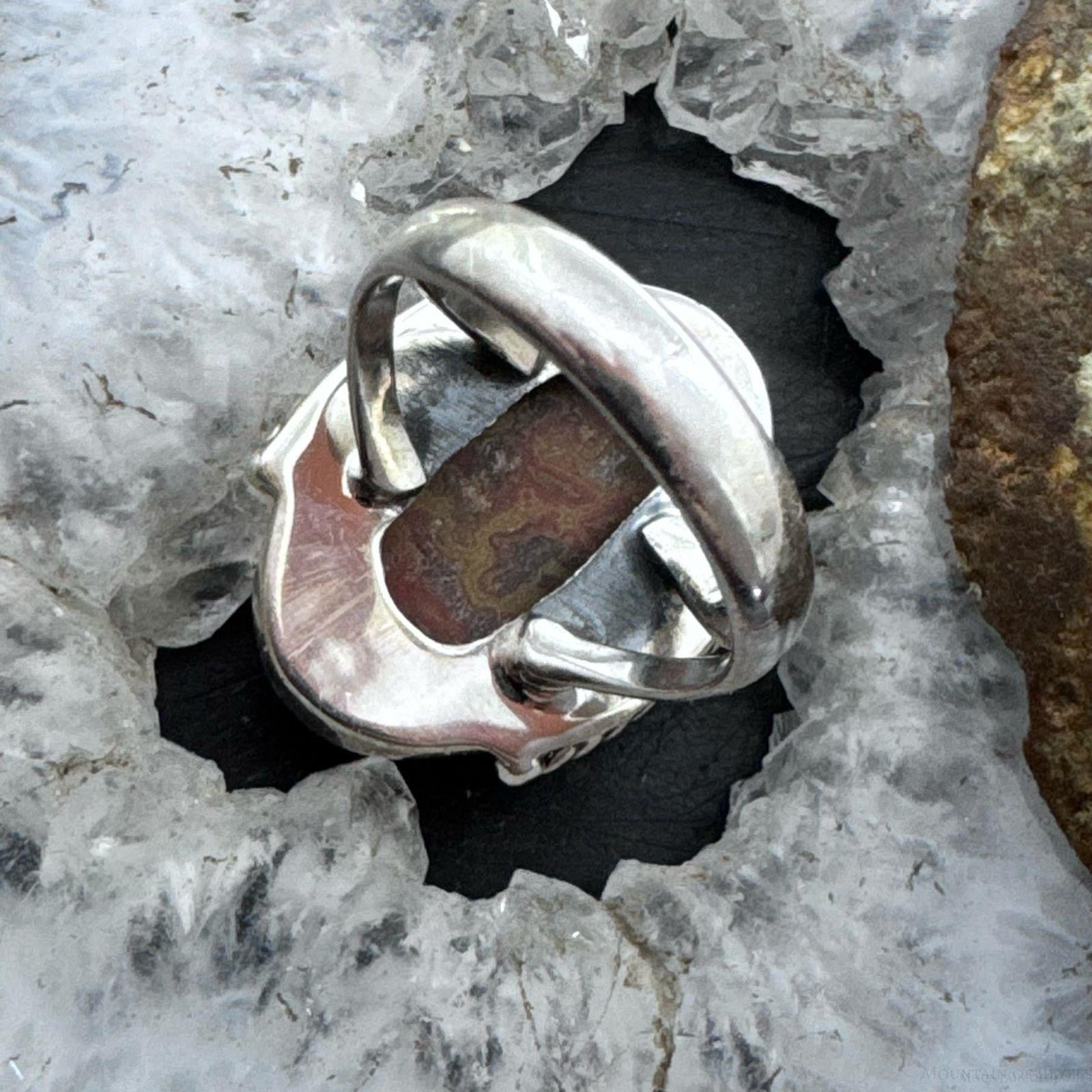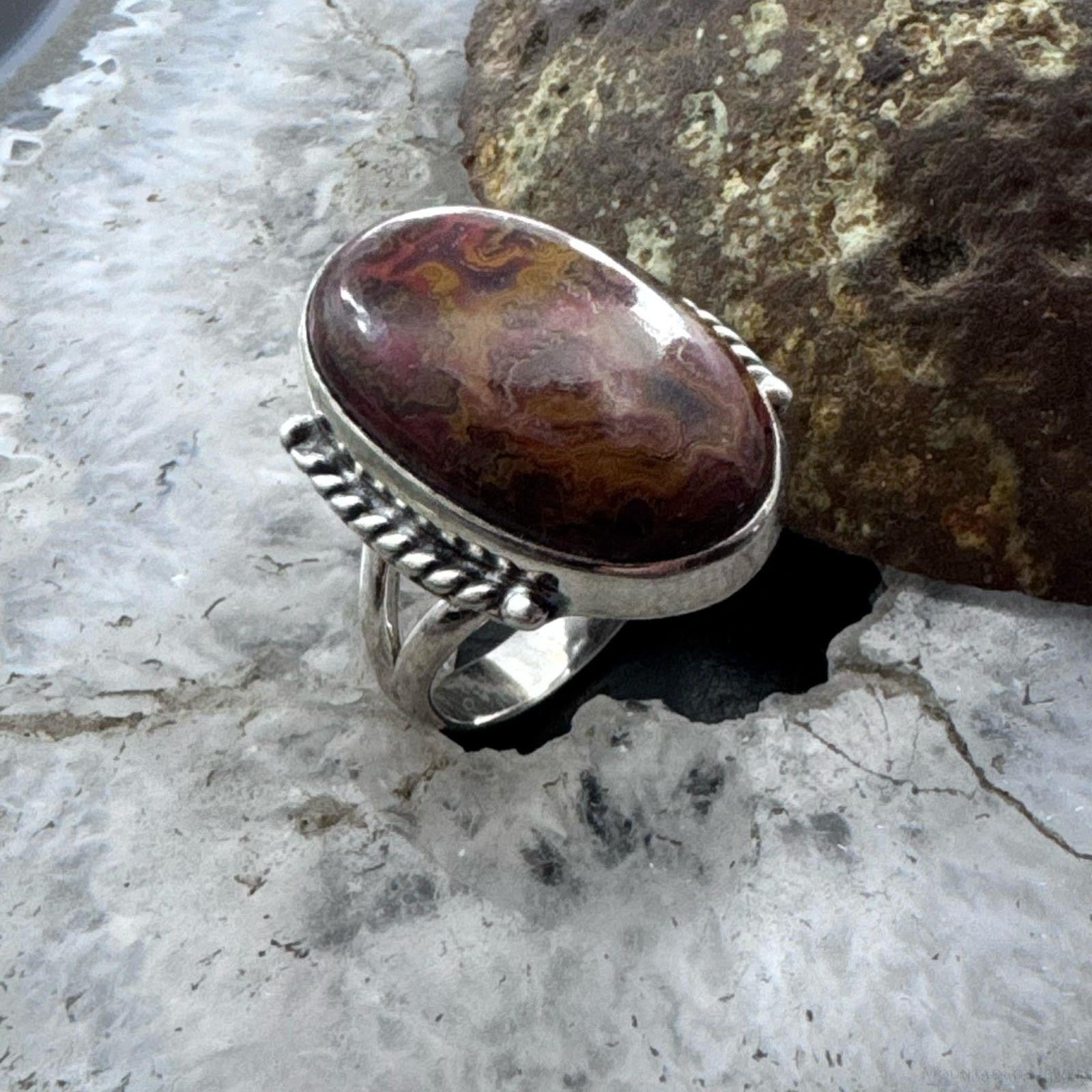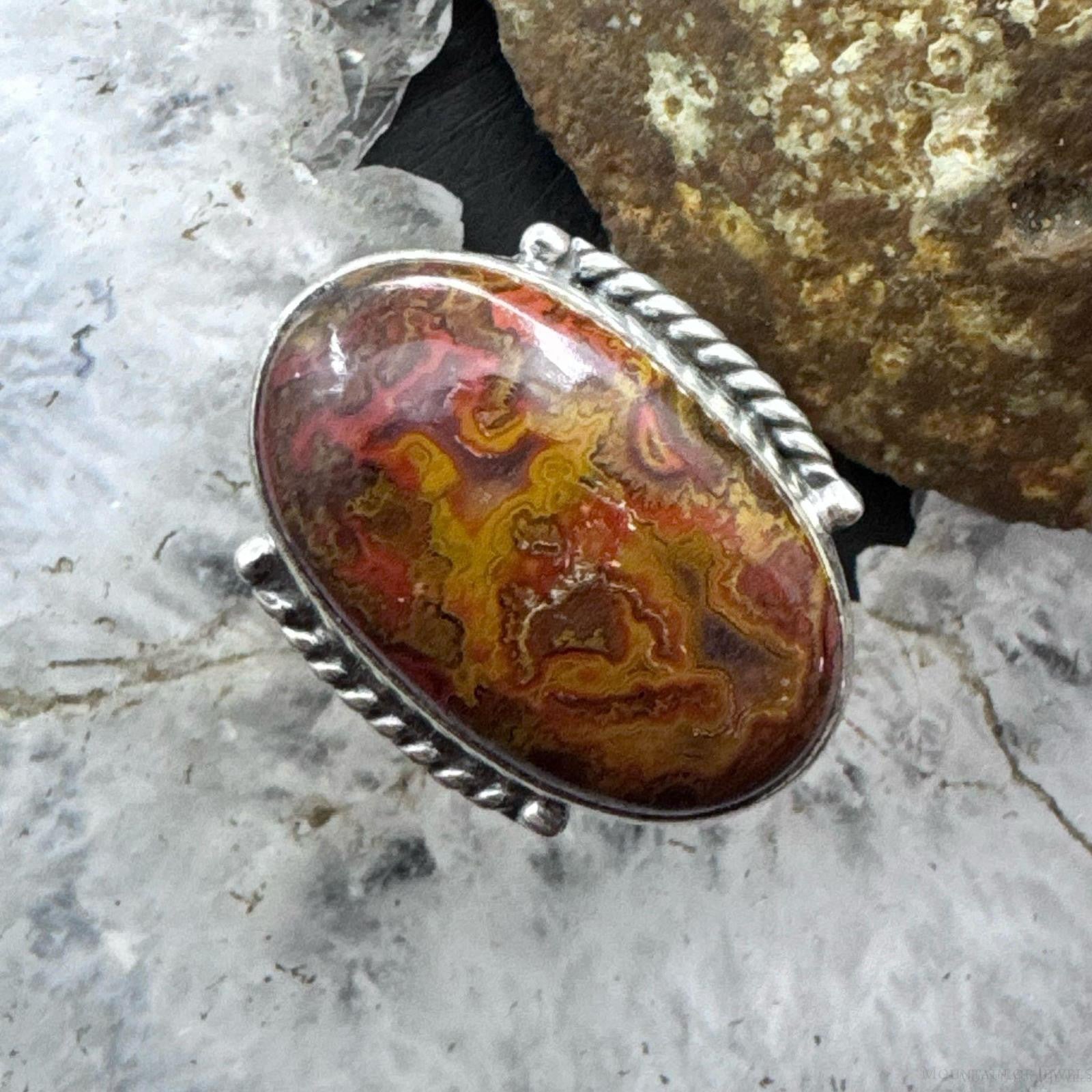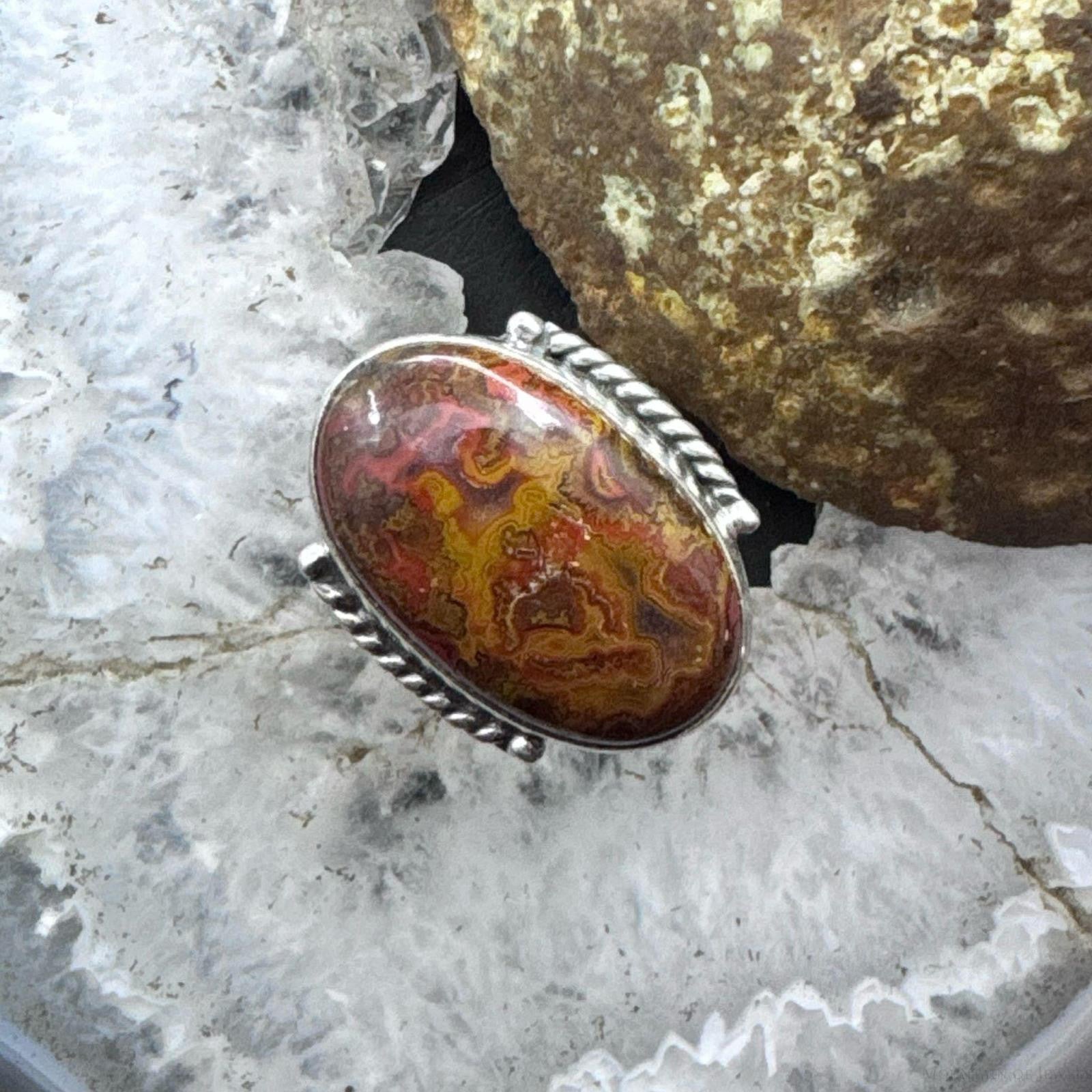 Sterling Silver Southwestern Style Oval Moroccan Seam Agate Ring Size 8 For Women