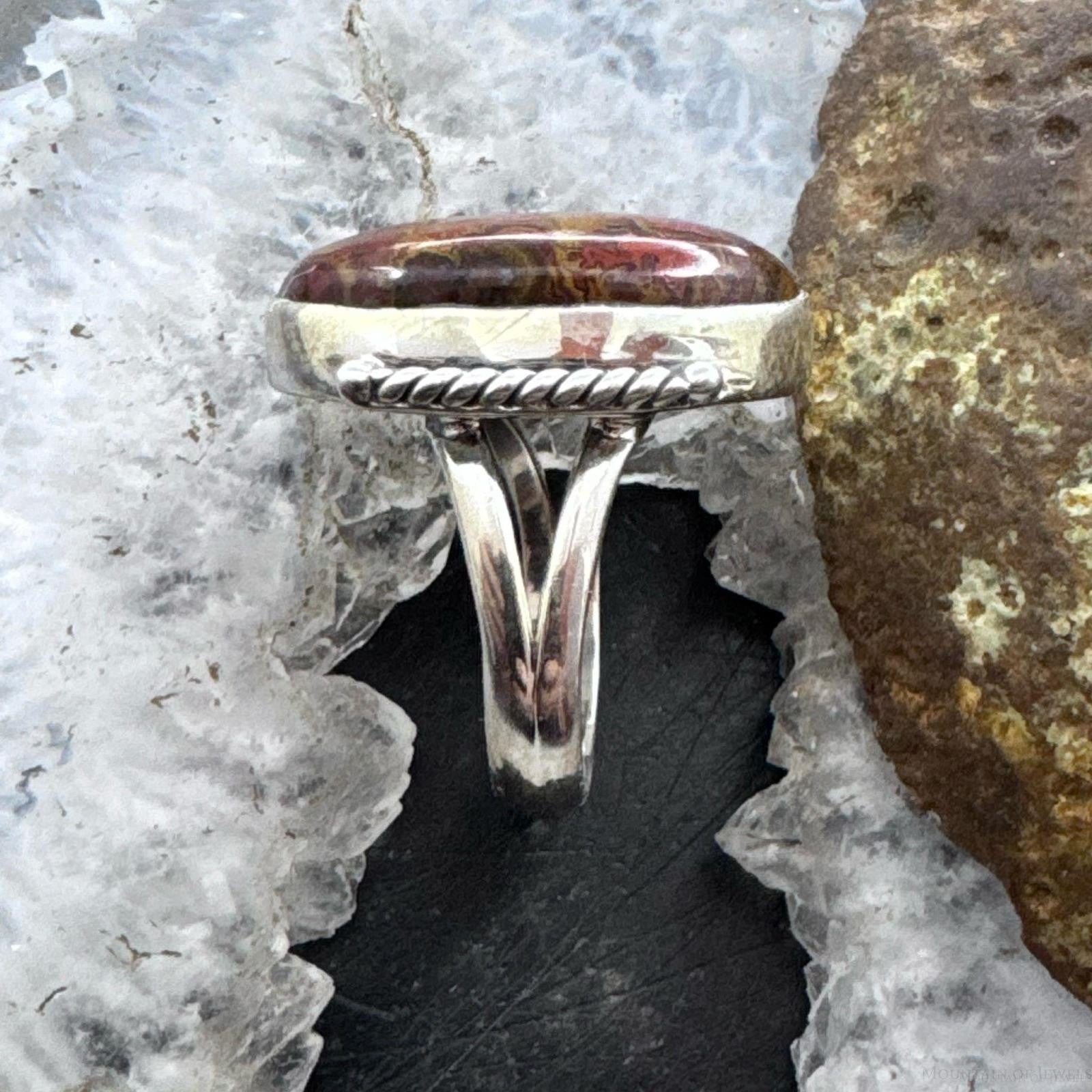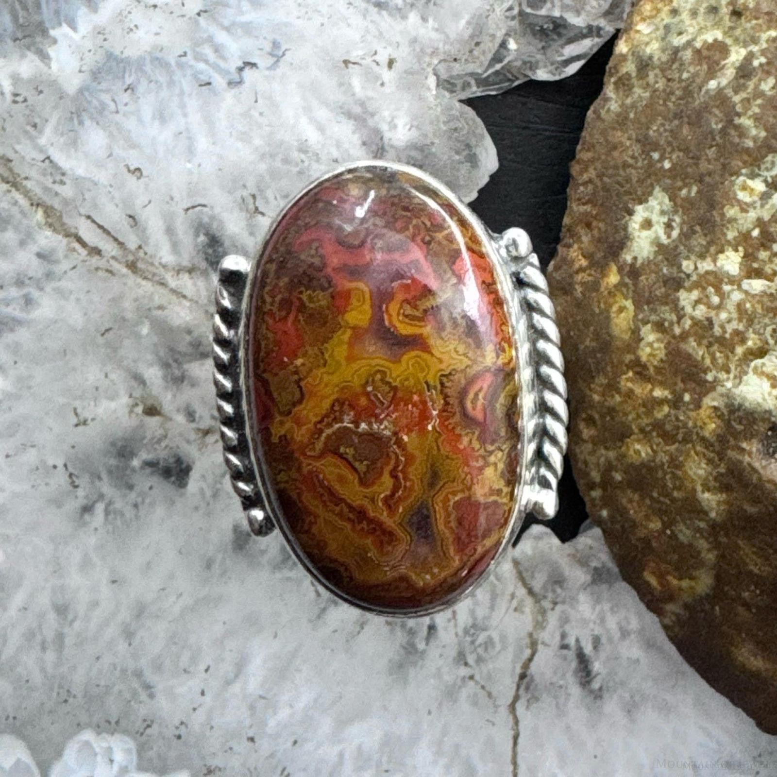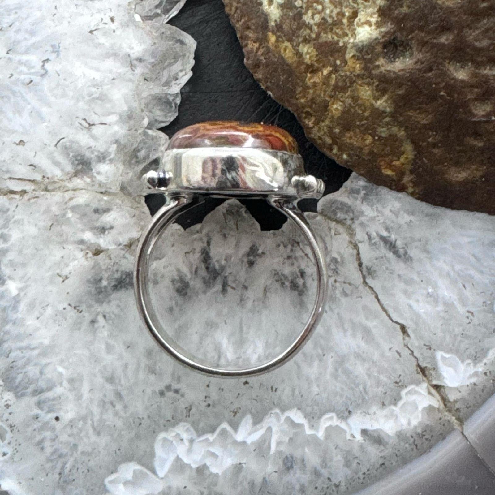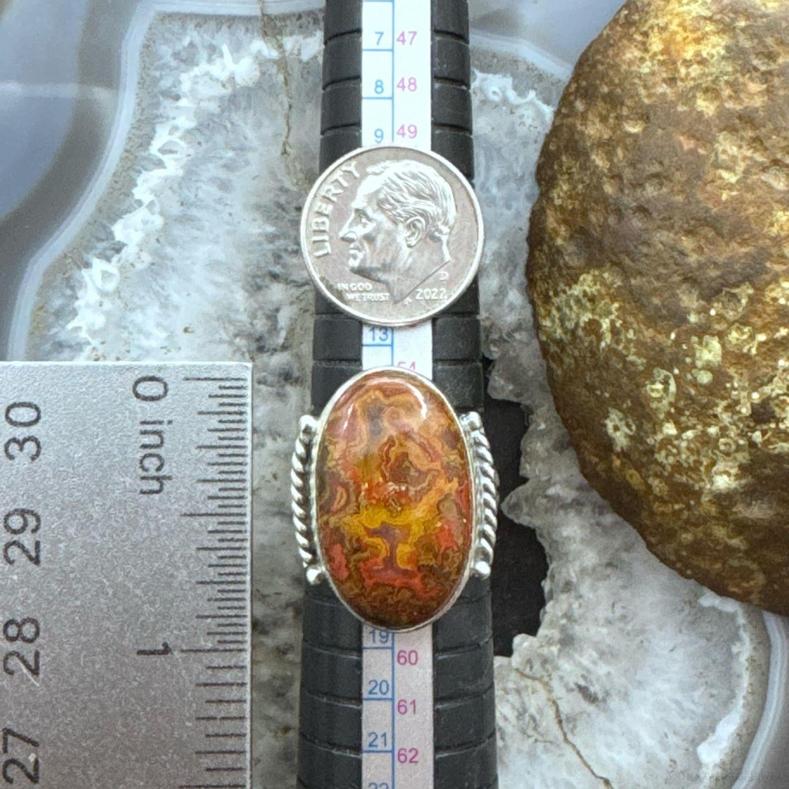 Sterling Silver Southwestern Style Oval Moroccan Seam Agate Ring Size 8 For Women