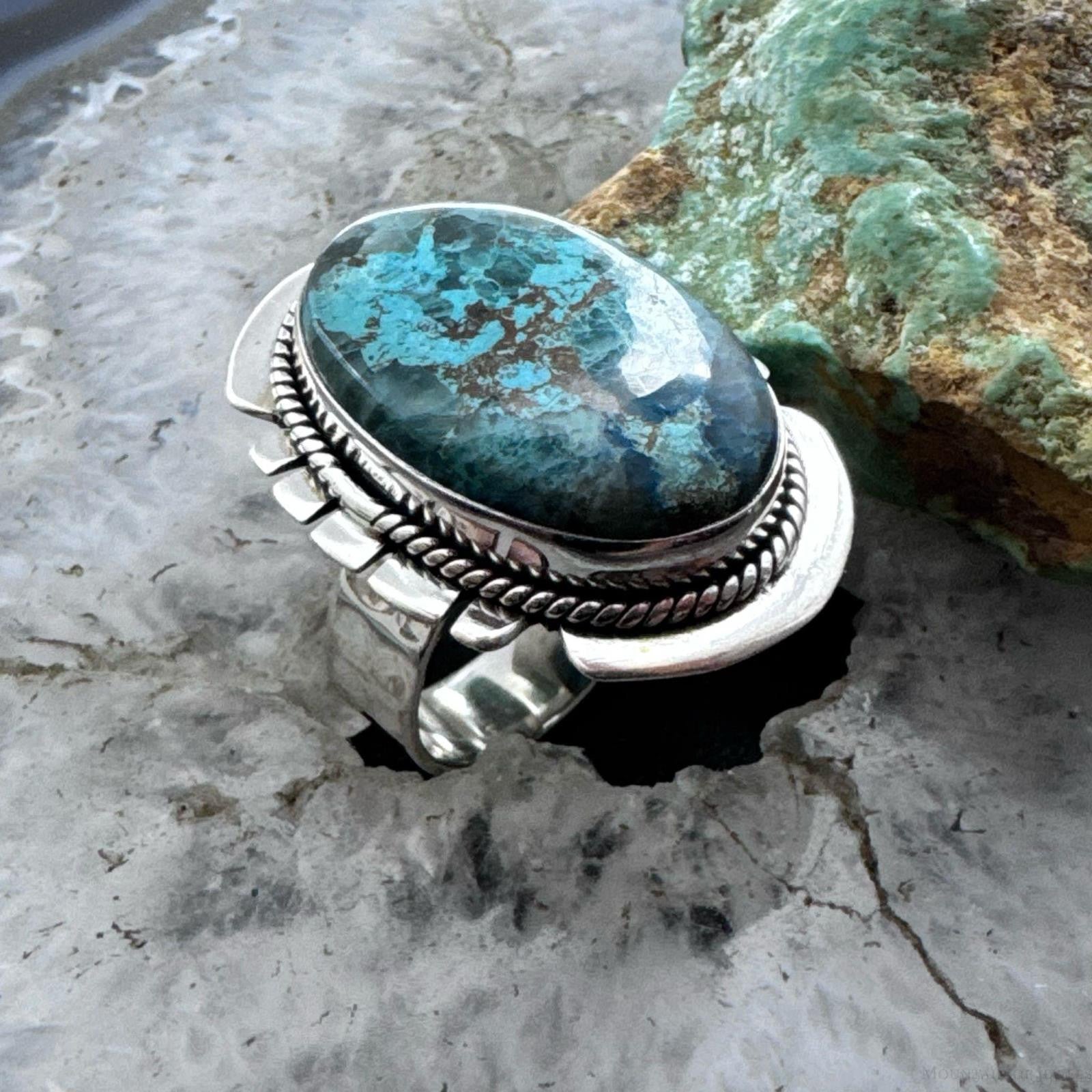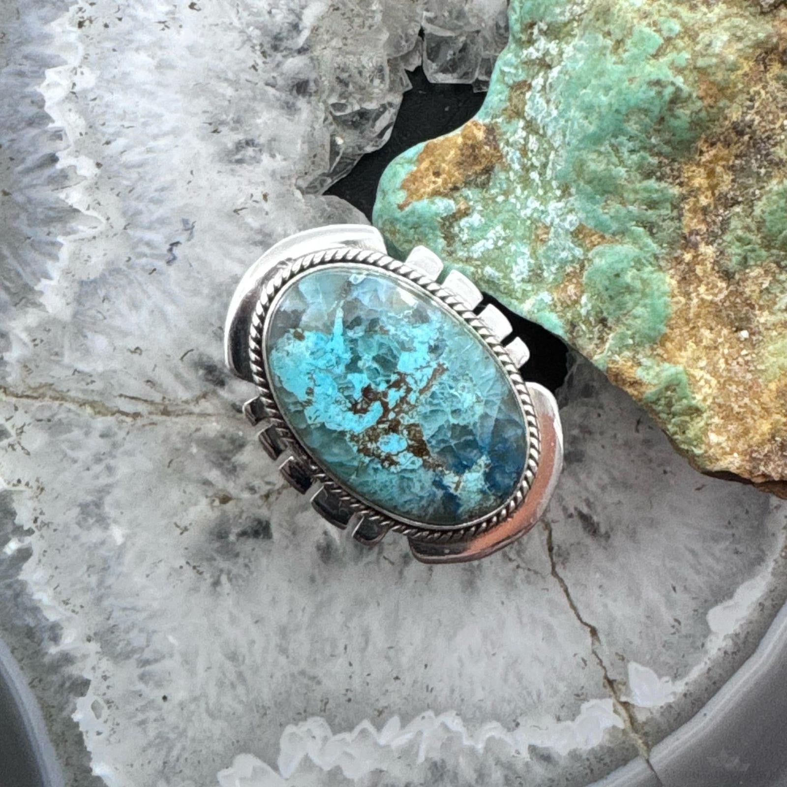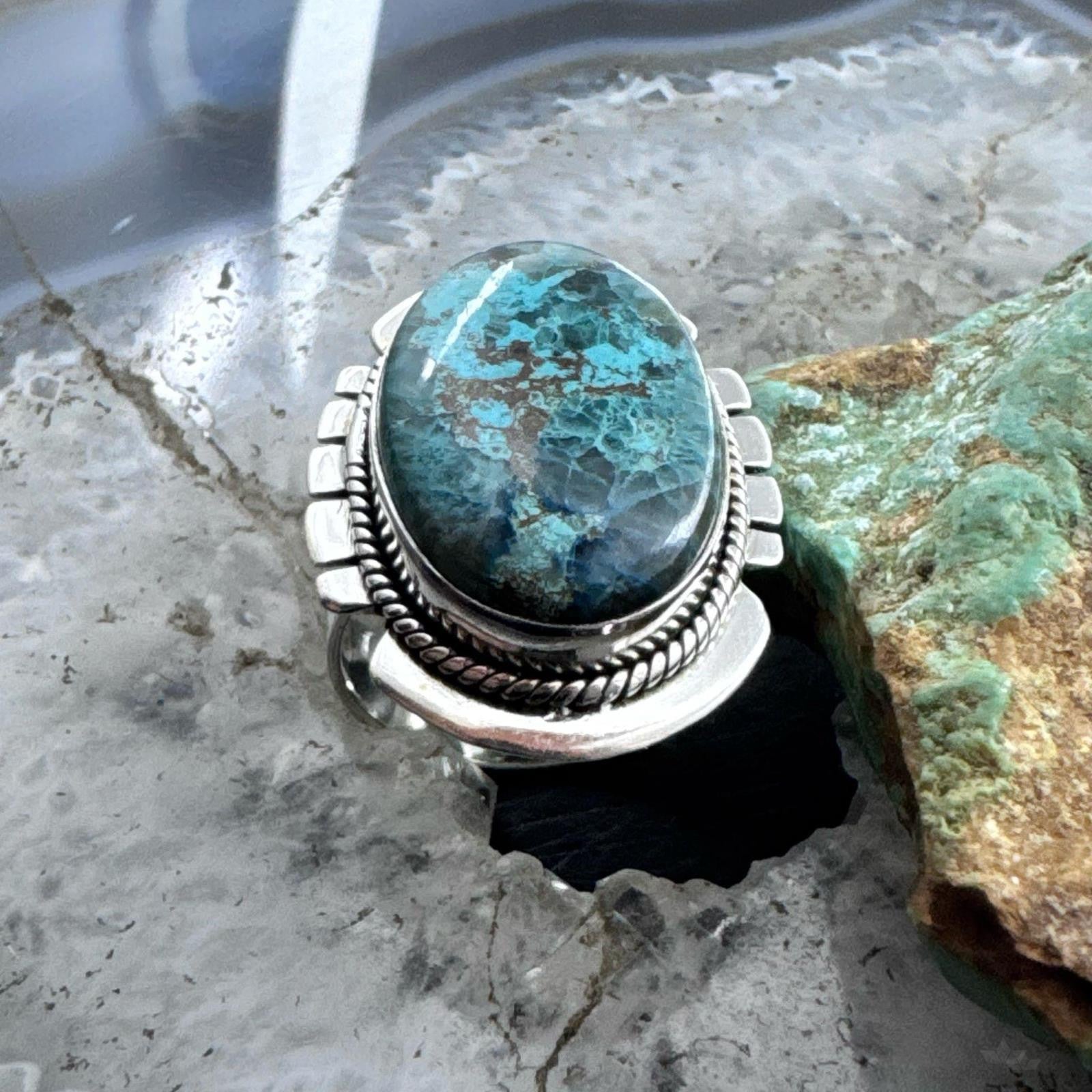 Sterling Silver Southwestern Style Oval Shattuckite Ring Size 7.75 For Women