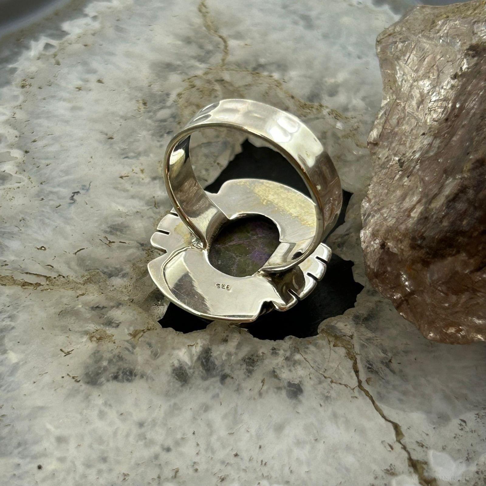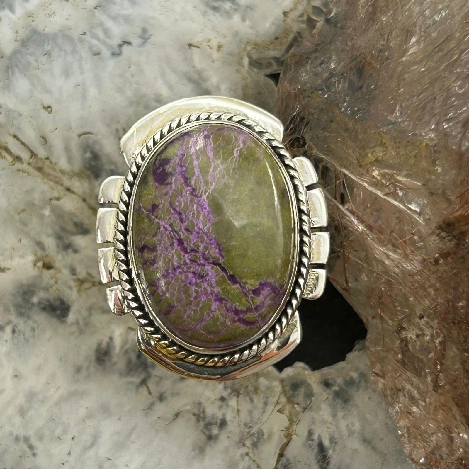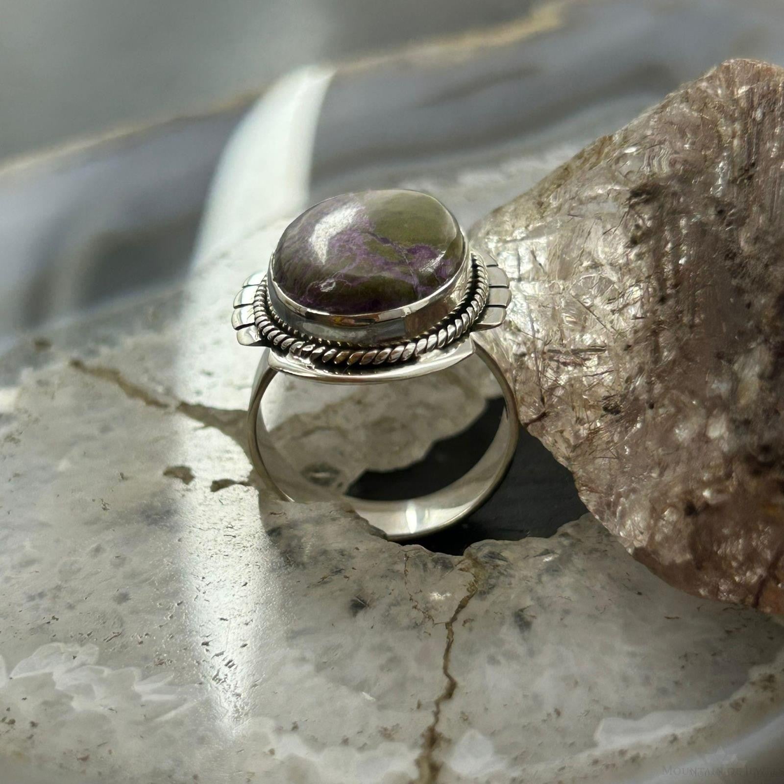 Sterling Silver Southwestern Style Oval Stichtite Decorated Ring Size 8.5 For Women