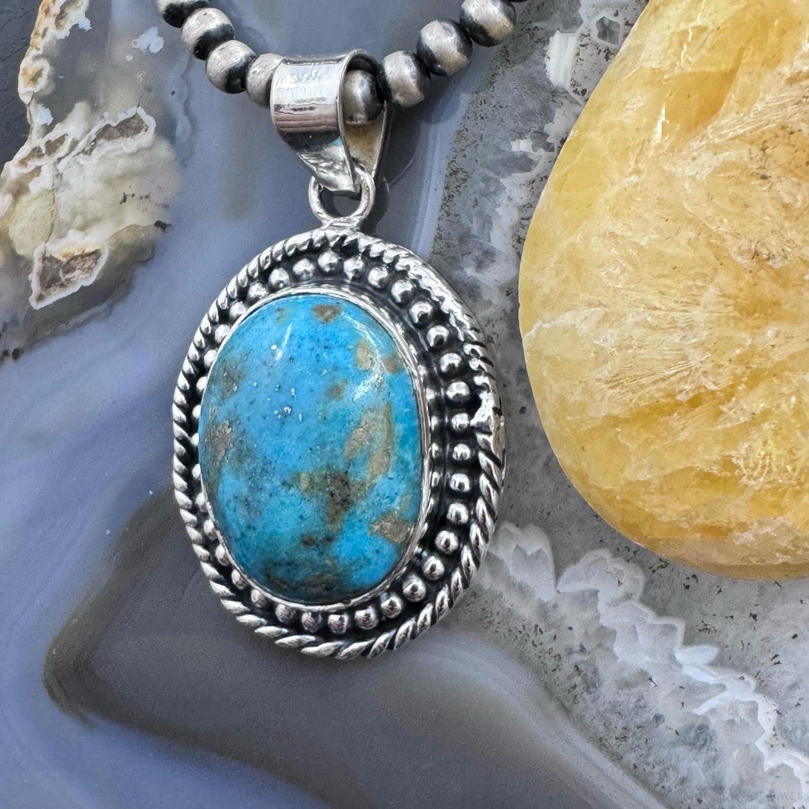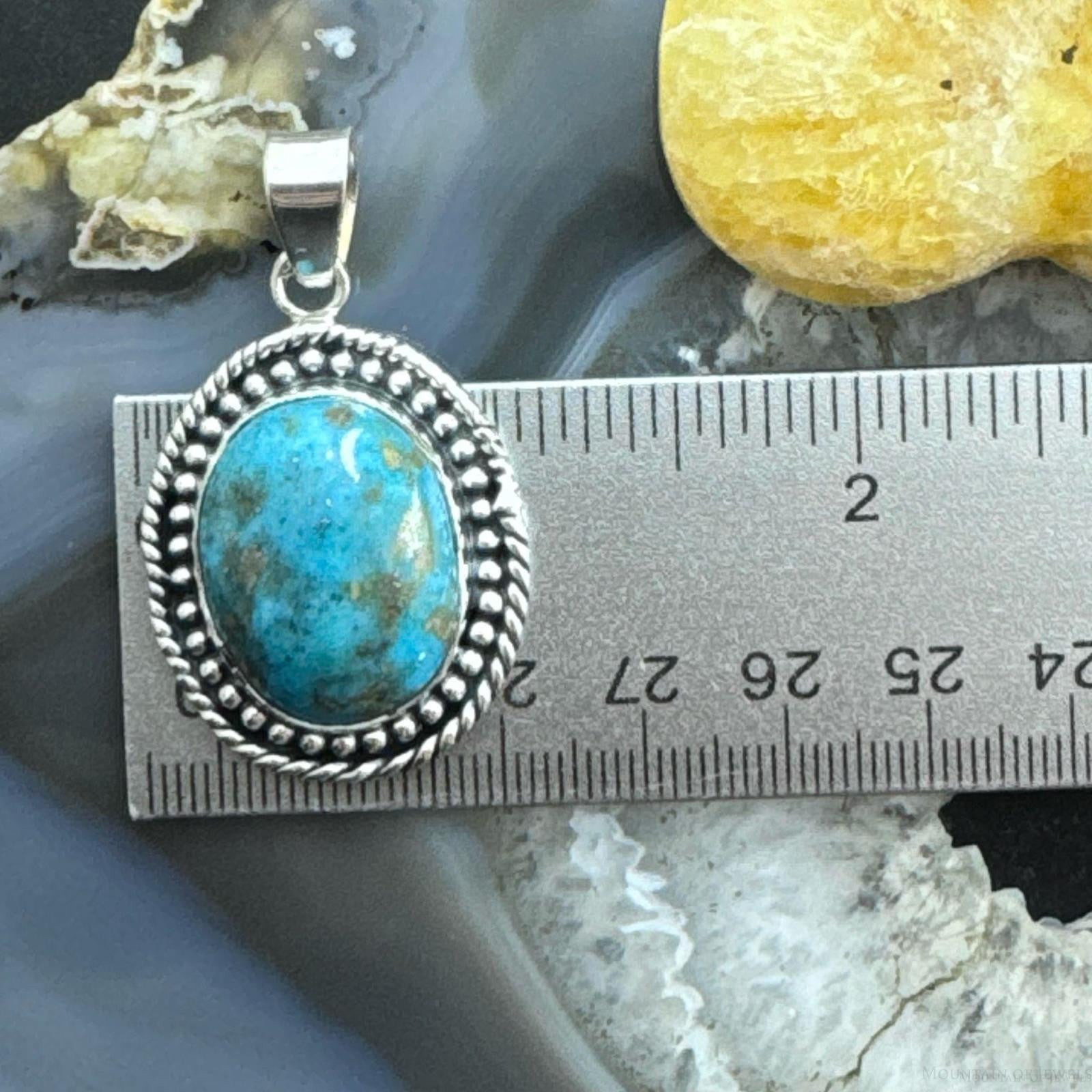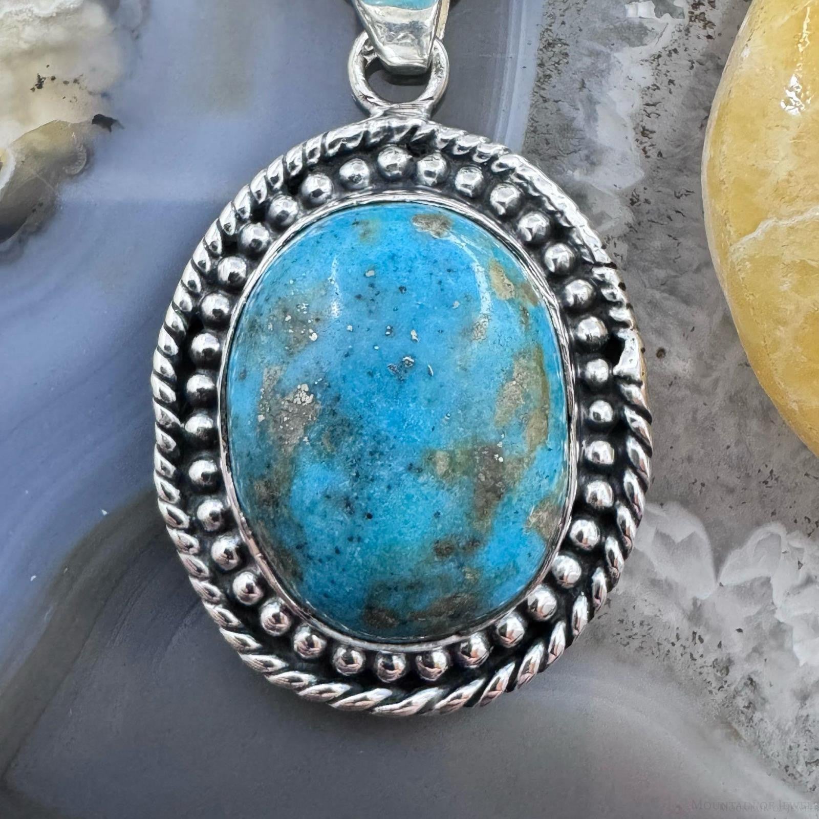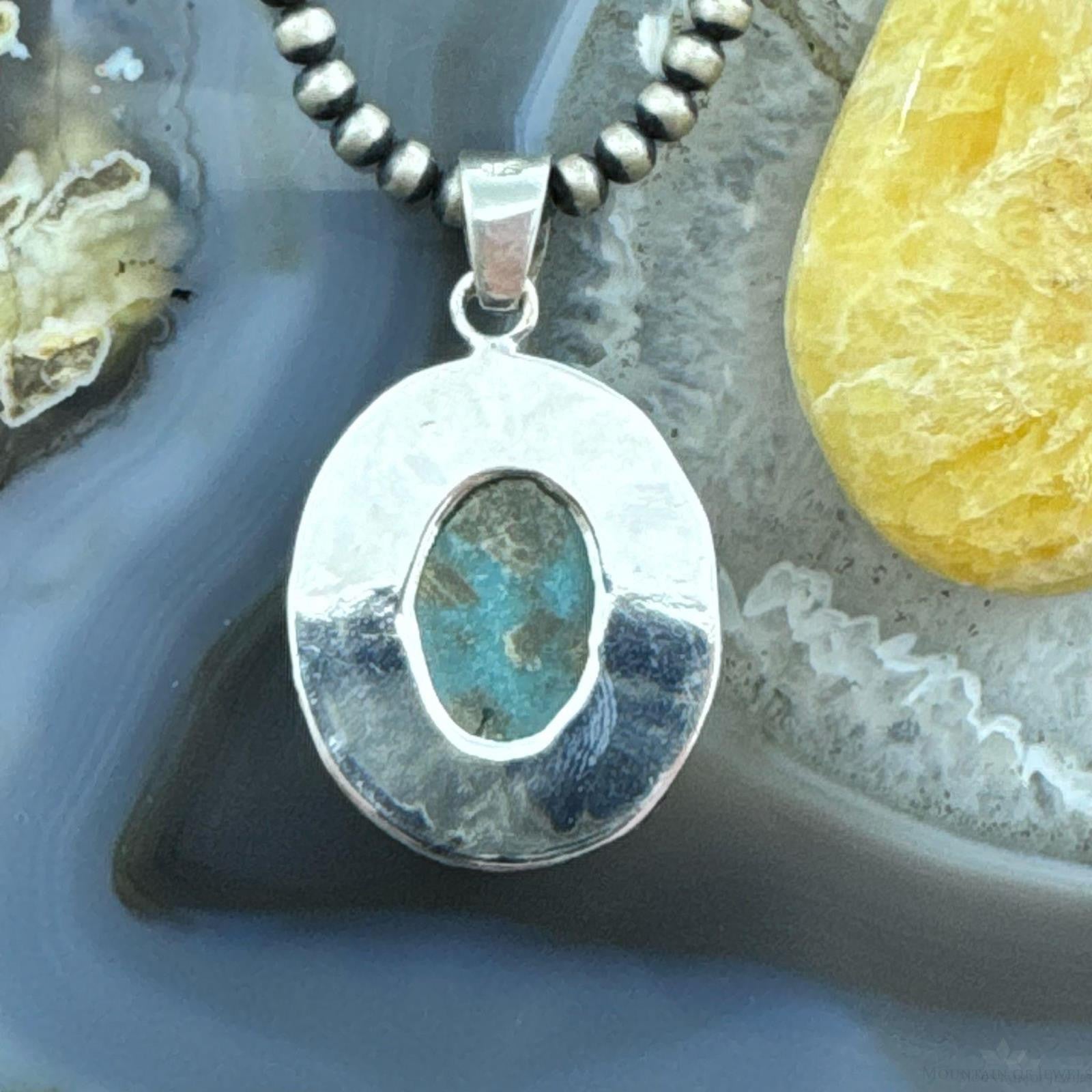 Sterling Silver Southwestern Style Oval Tibetan Turquoise Pendant For Women