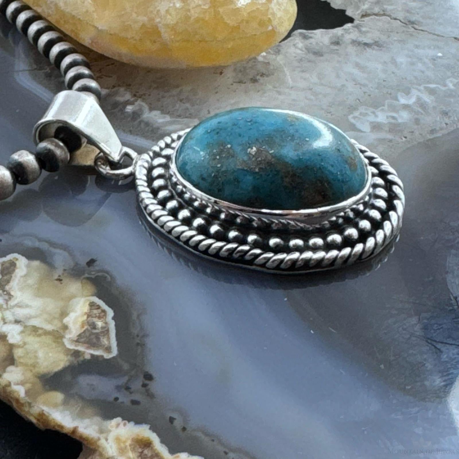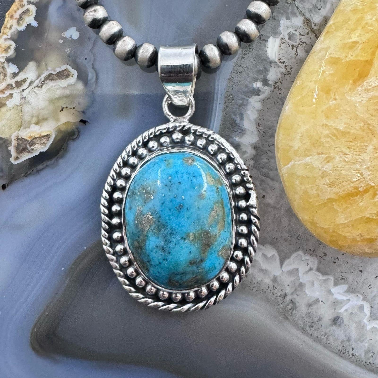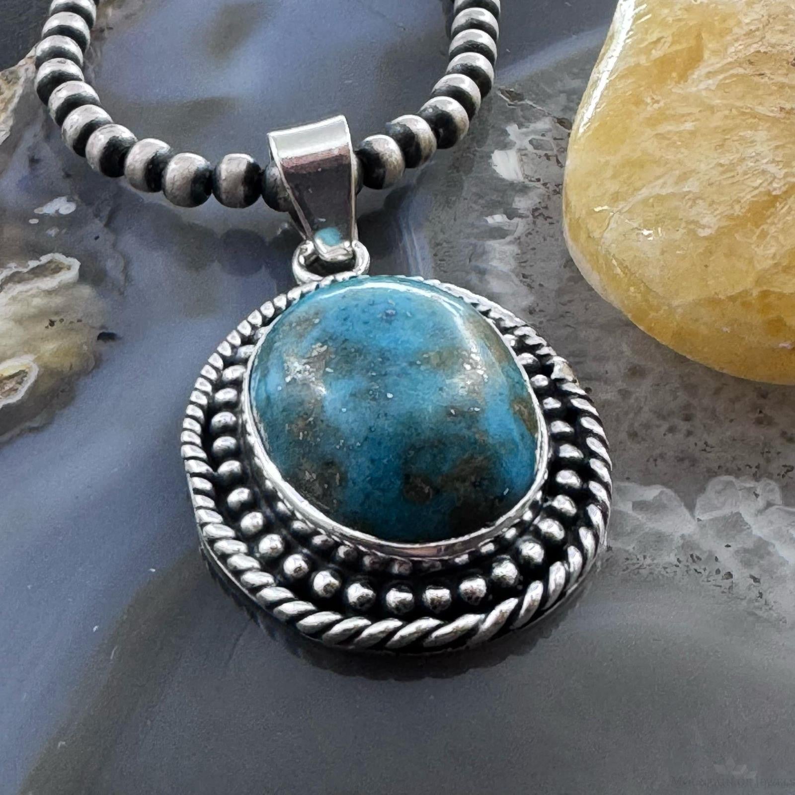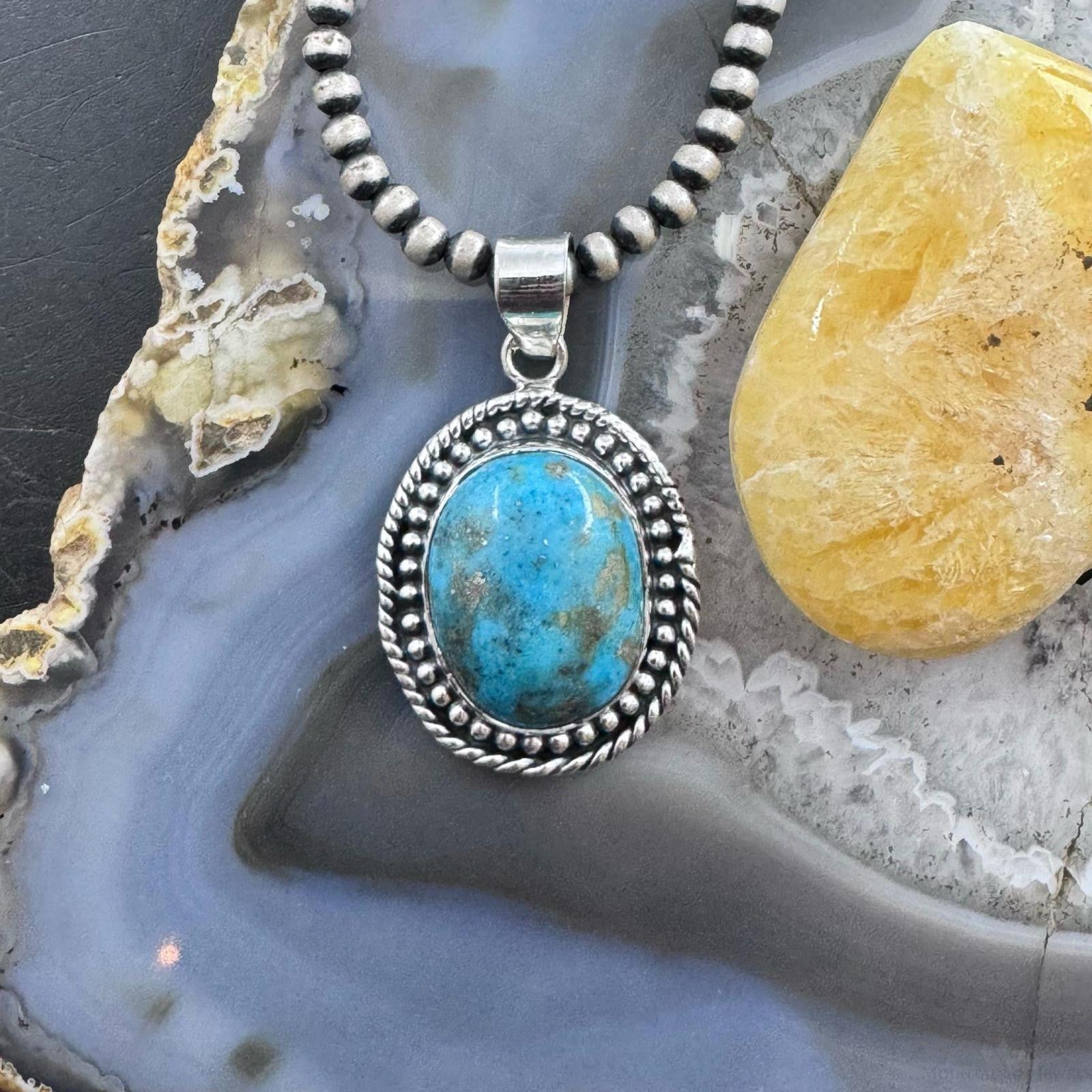 Sterling Silver Southwestern Style Oval Tibetan Turquoise Pendant For Women