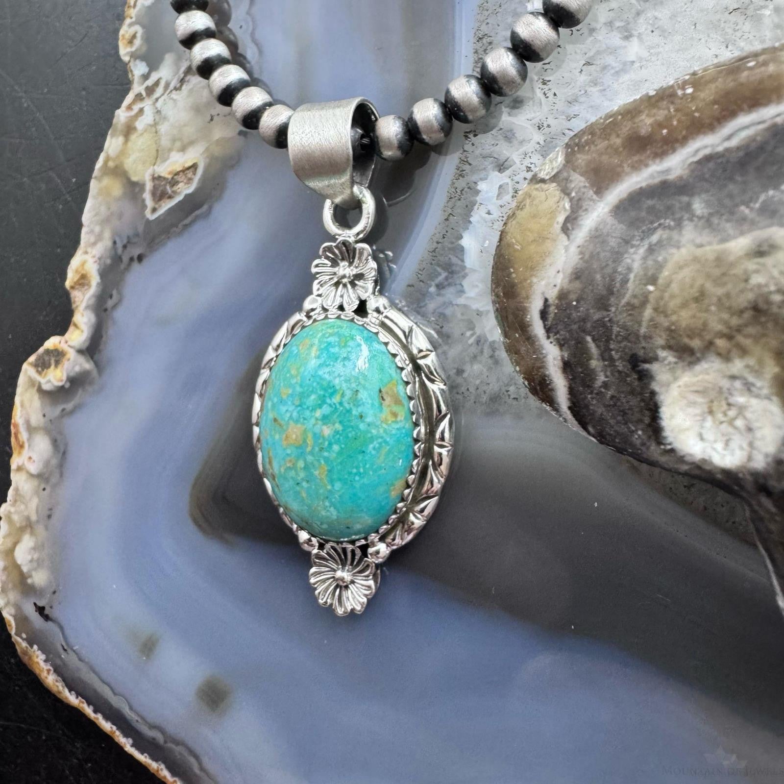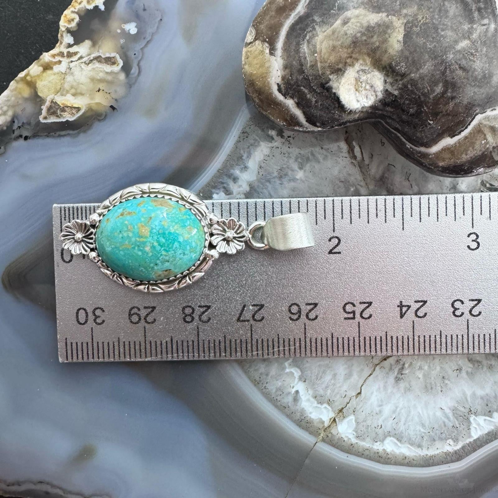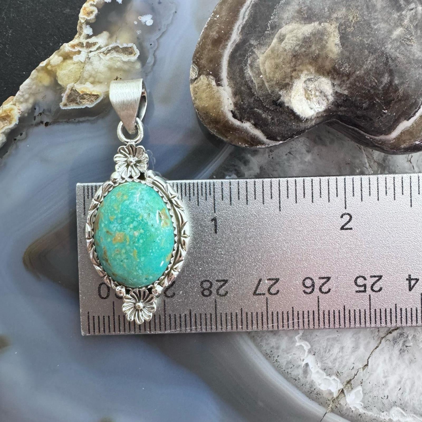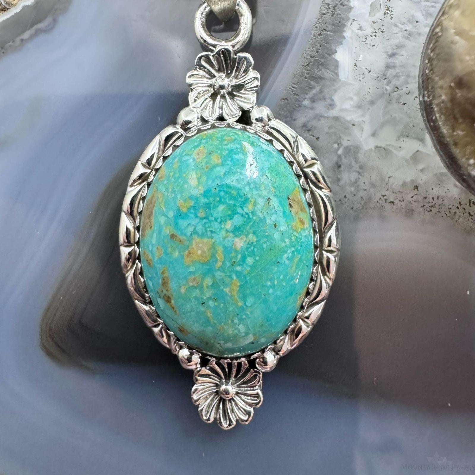 Sterling Silver Southwestern Style Oval Turquoise Decorated Pendant For Women