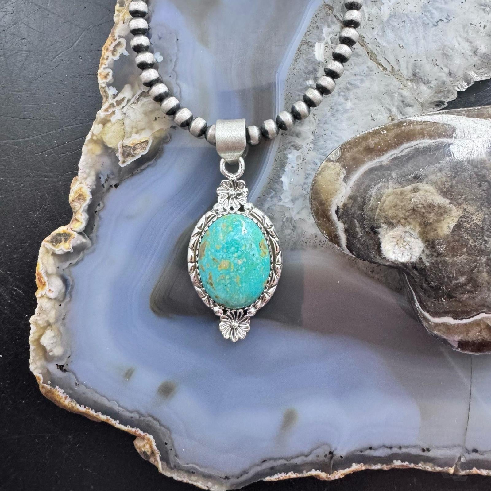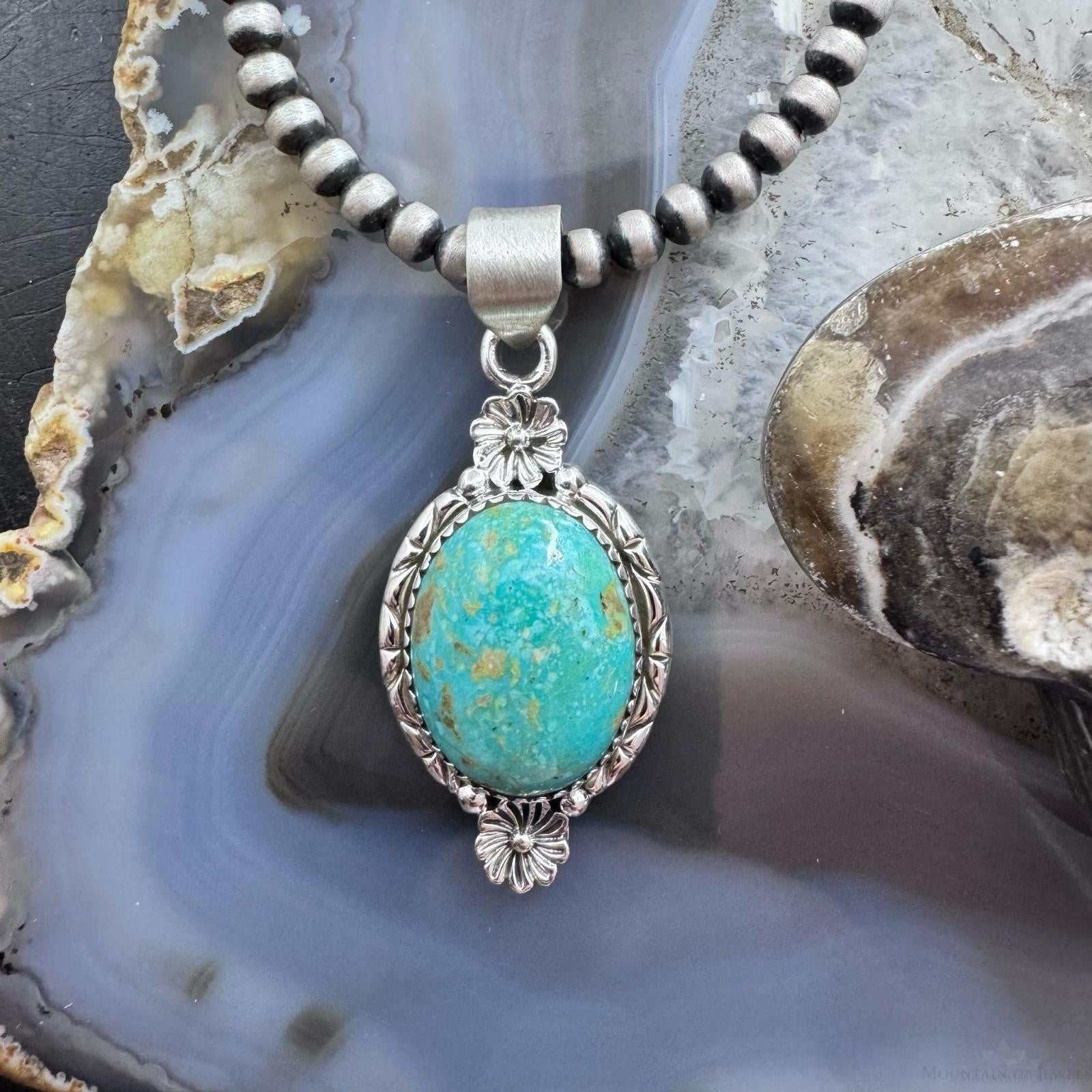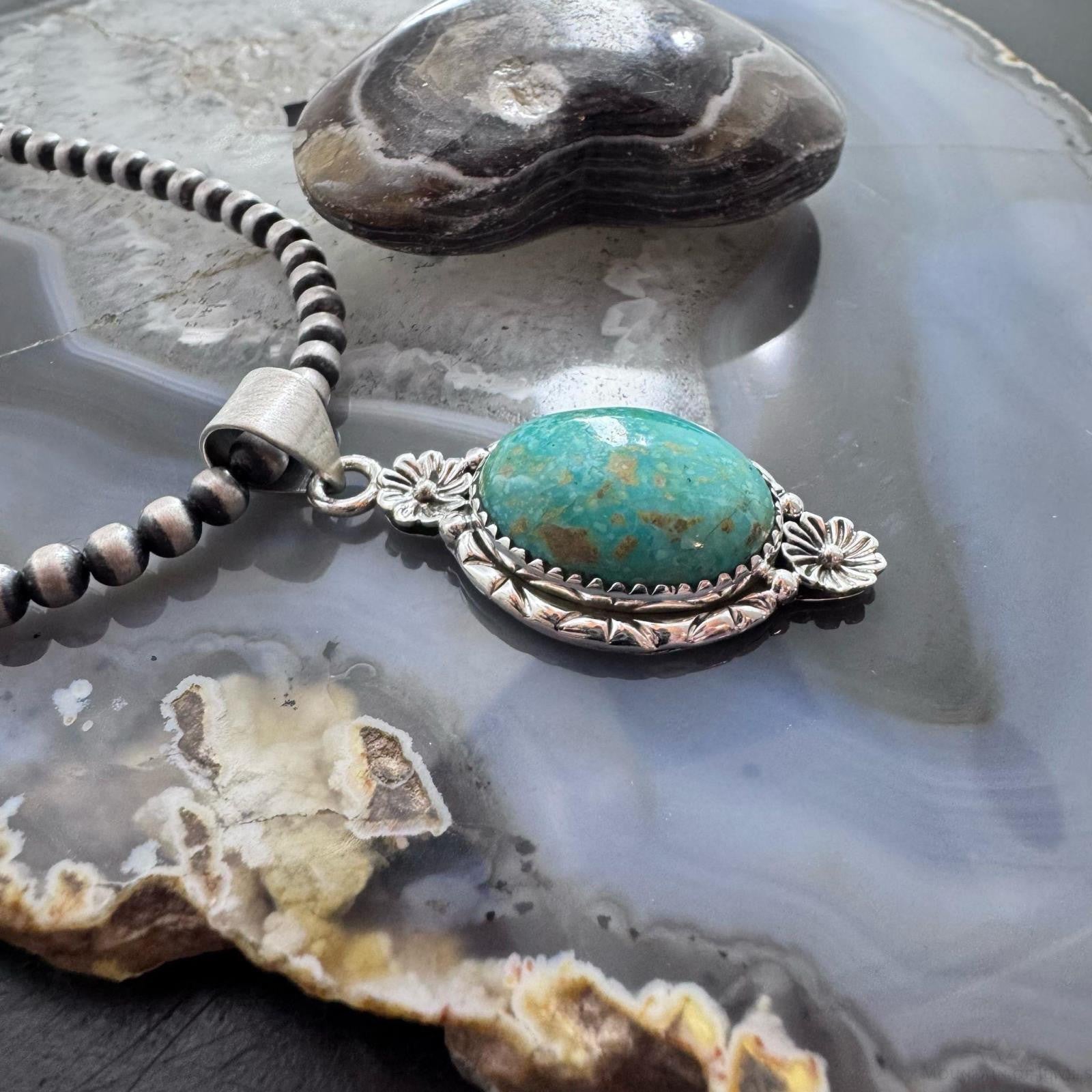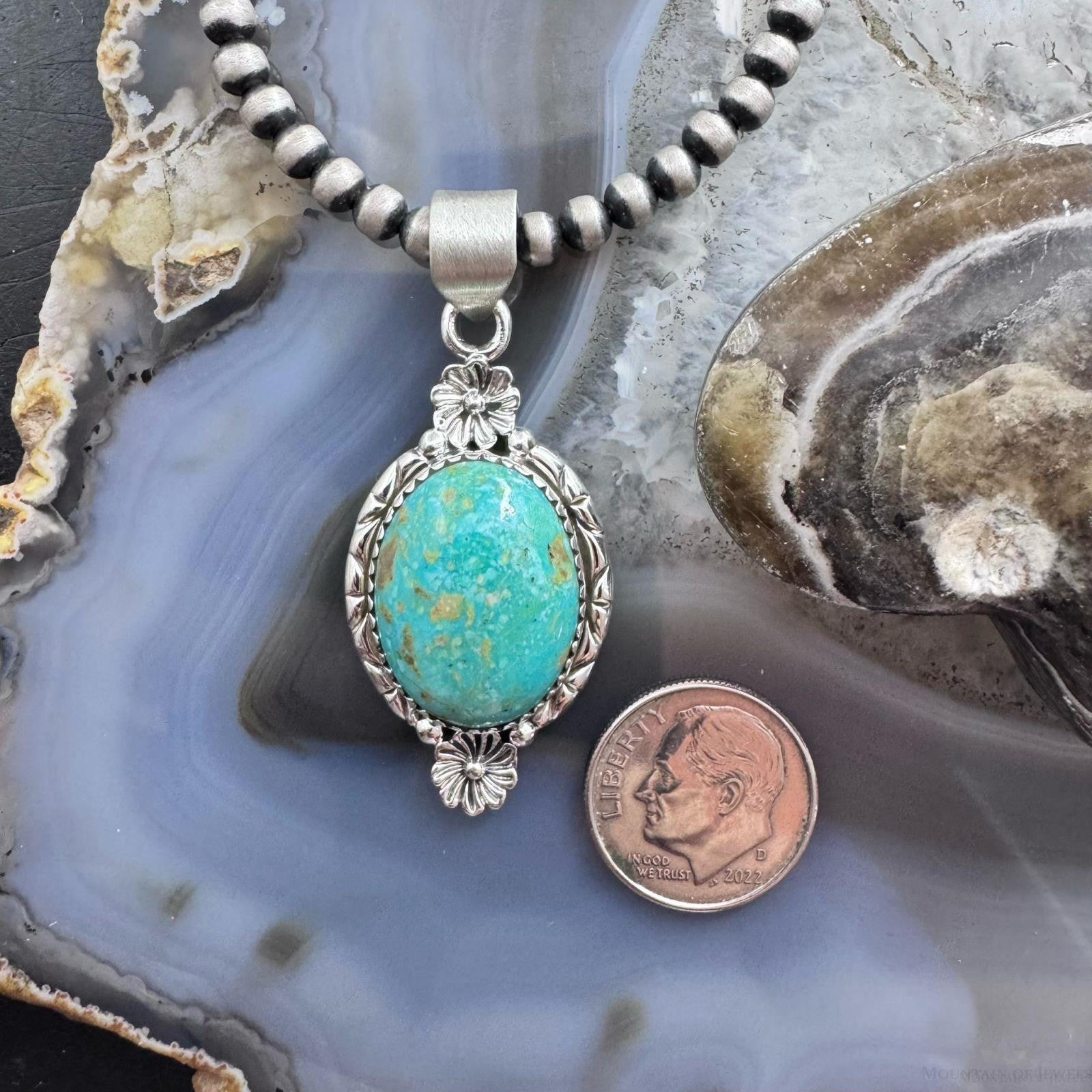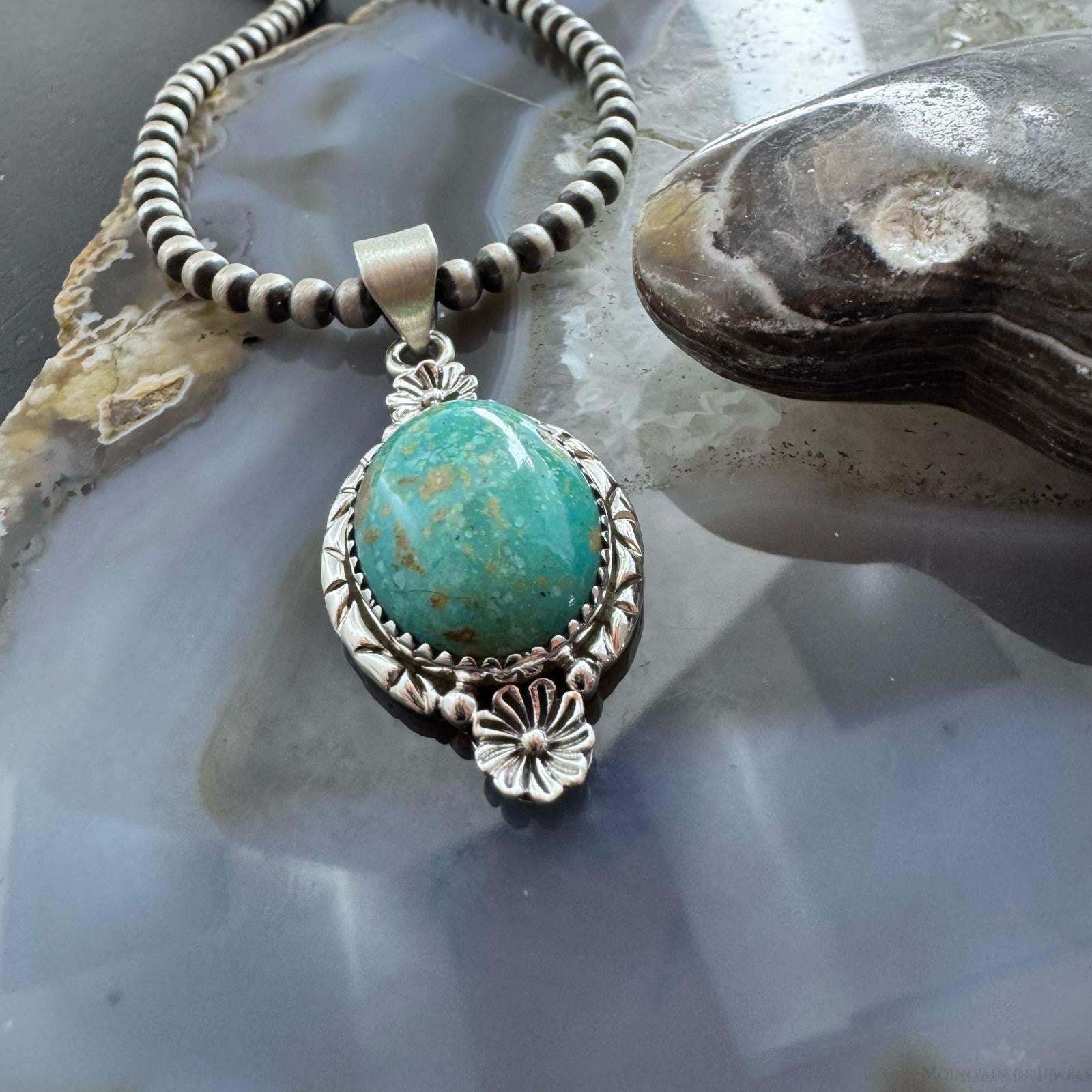 Sterling Silver Southwestern Style Oval Turquoise Decorated Pendant For Women