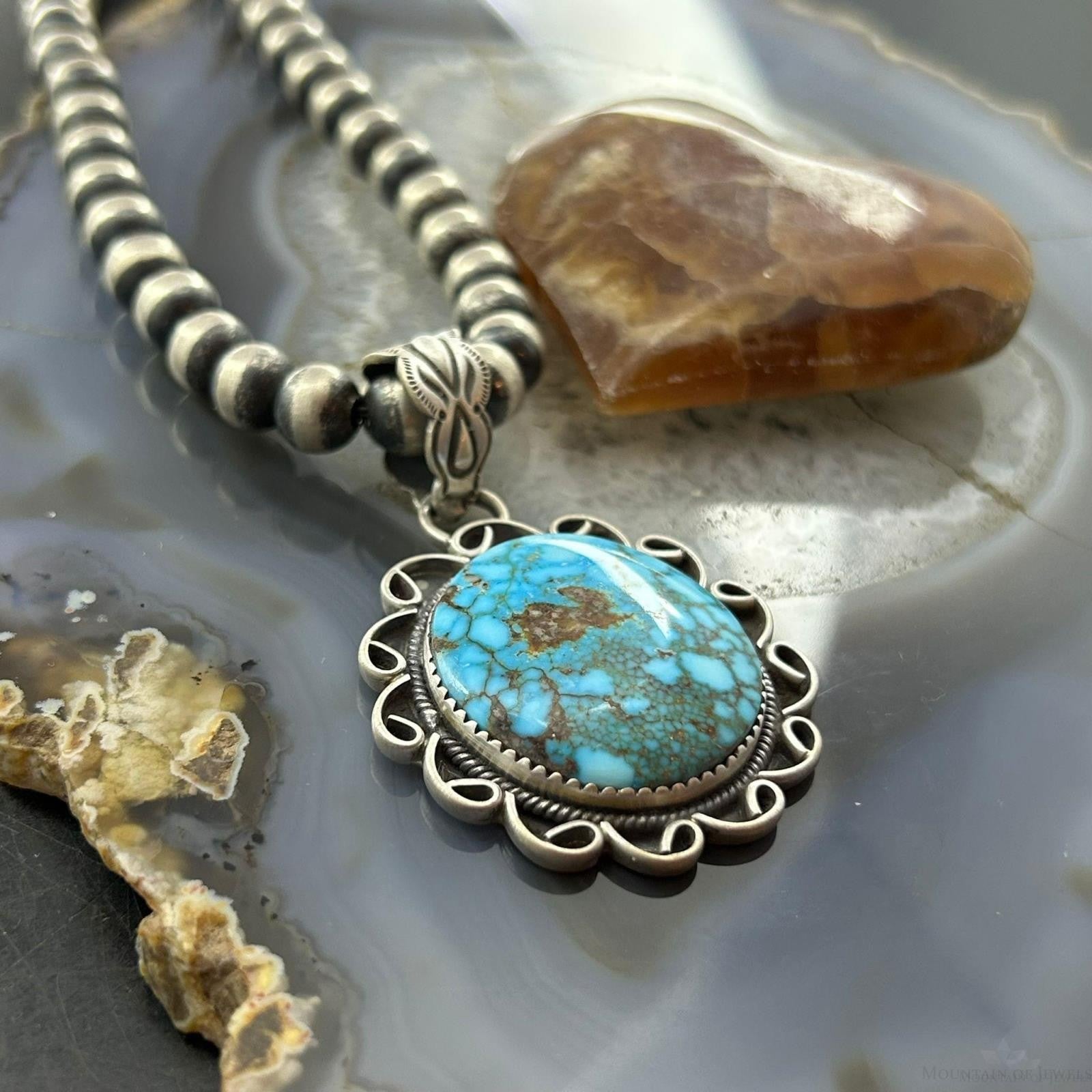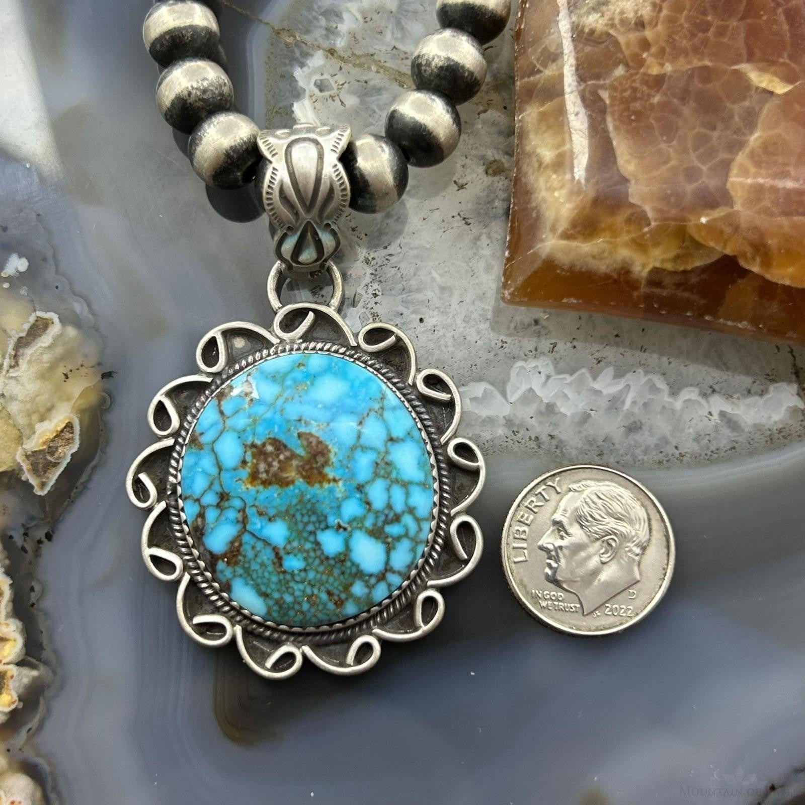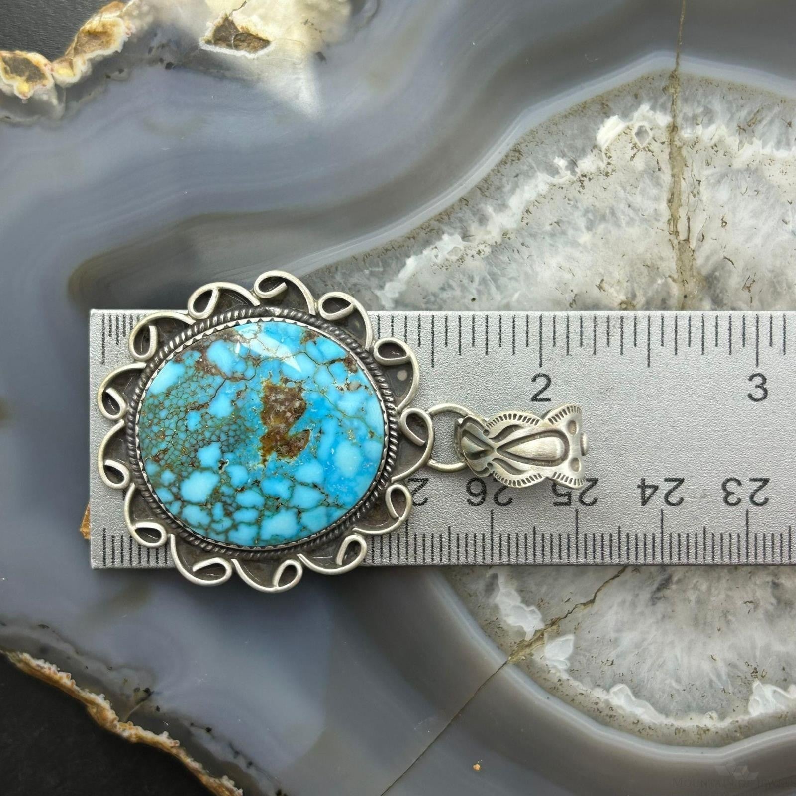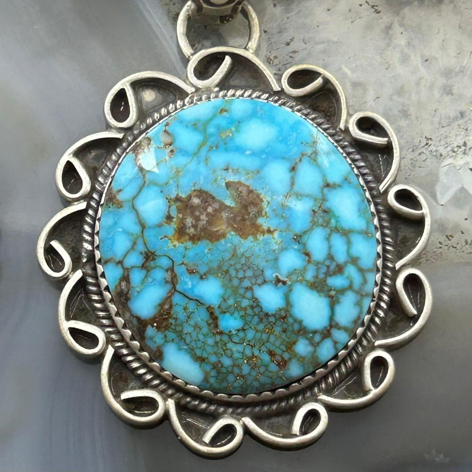 Sterling Silver Southwestern Style Round High Grade Kingman Turquoise Pendant For Women