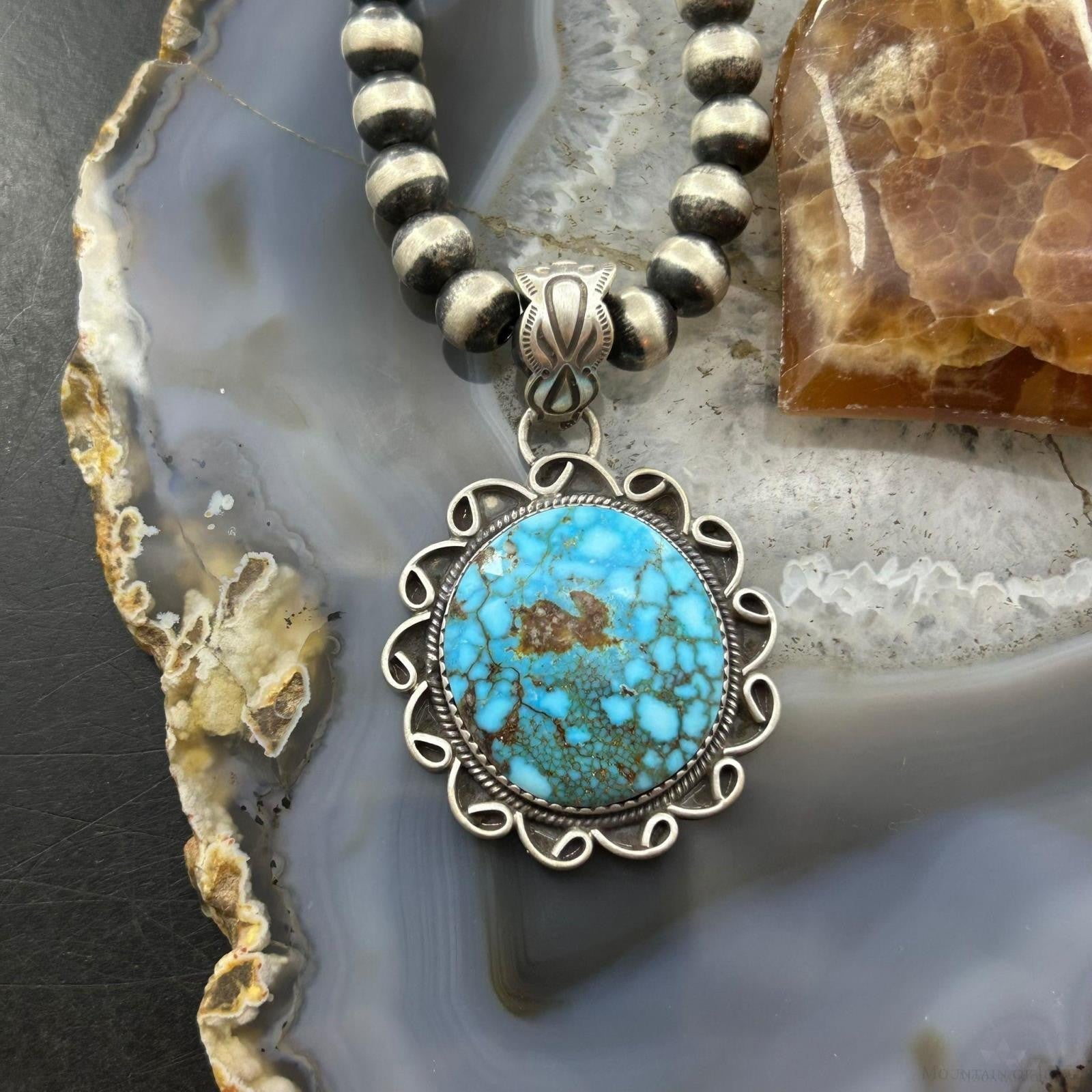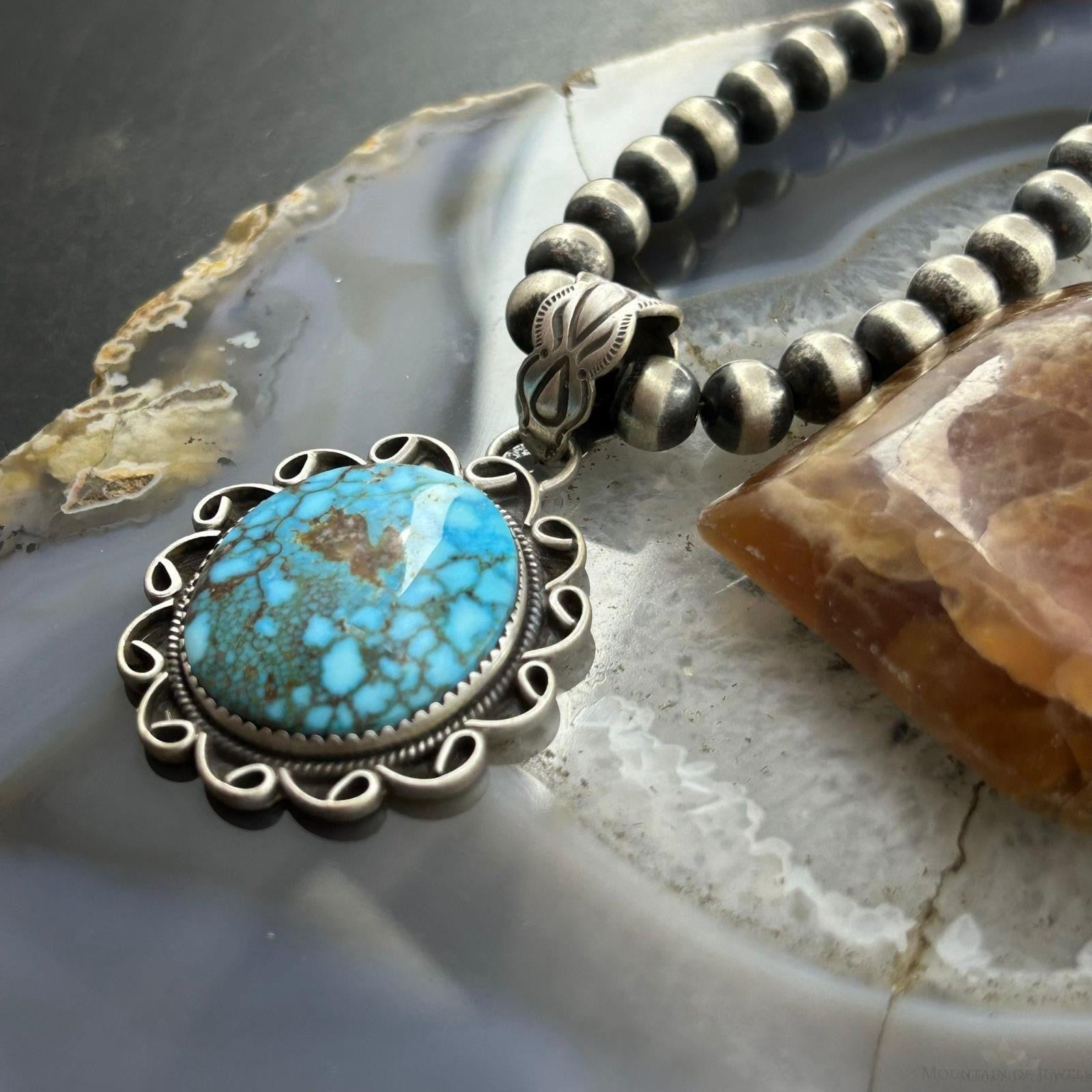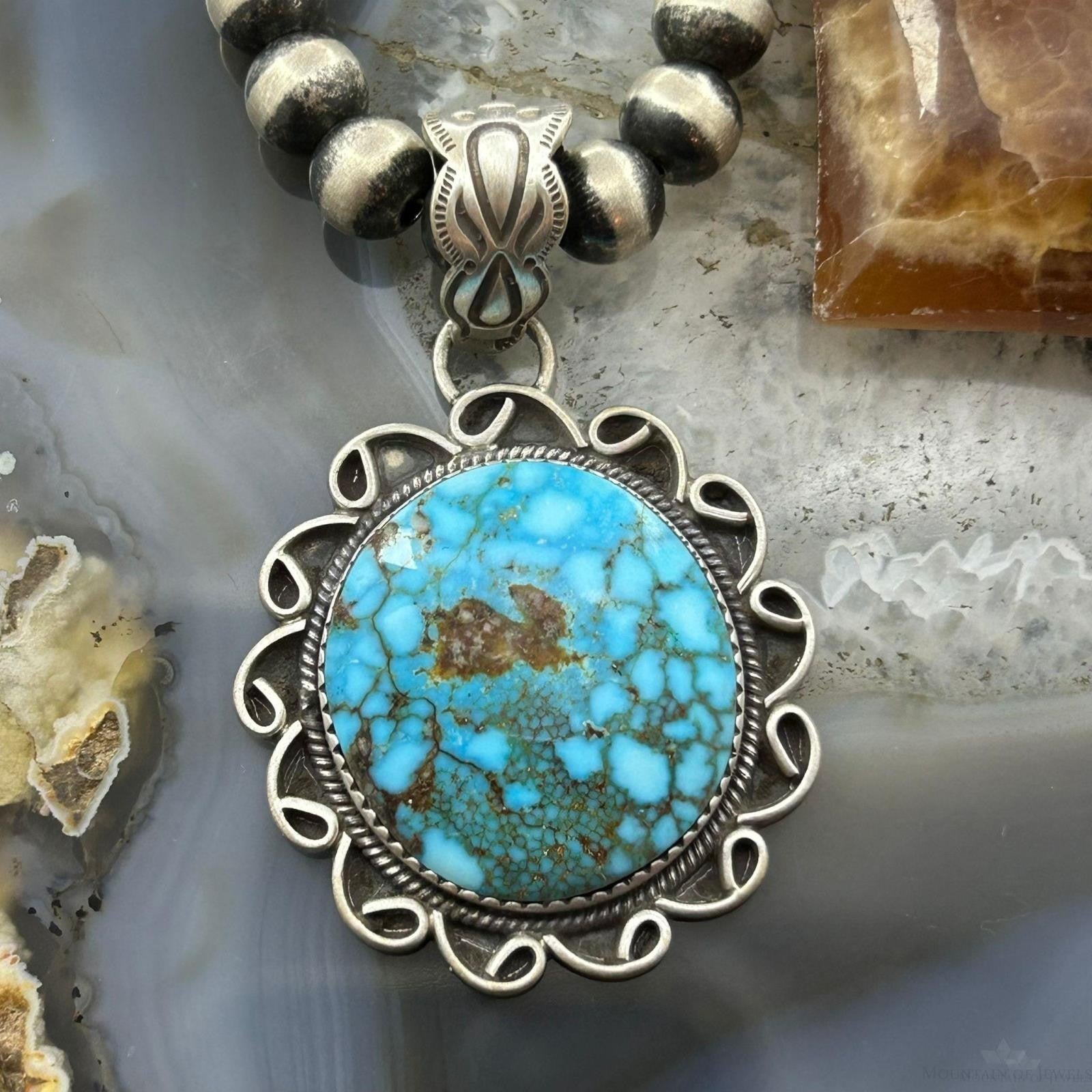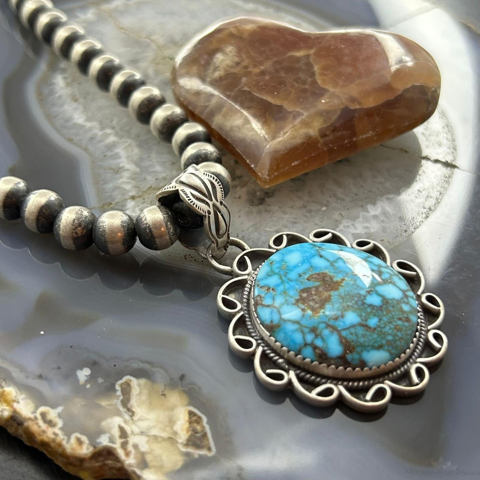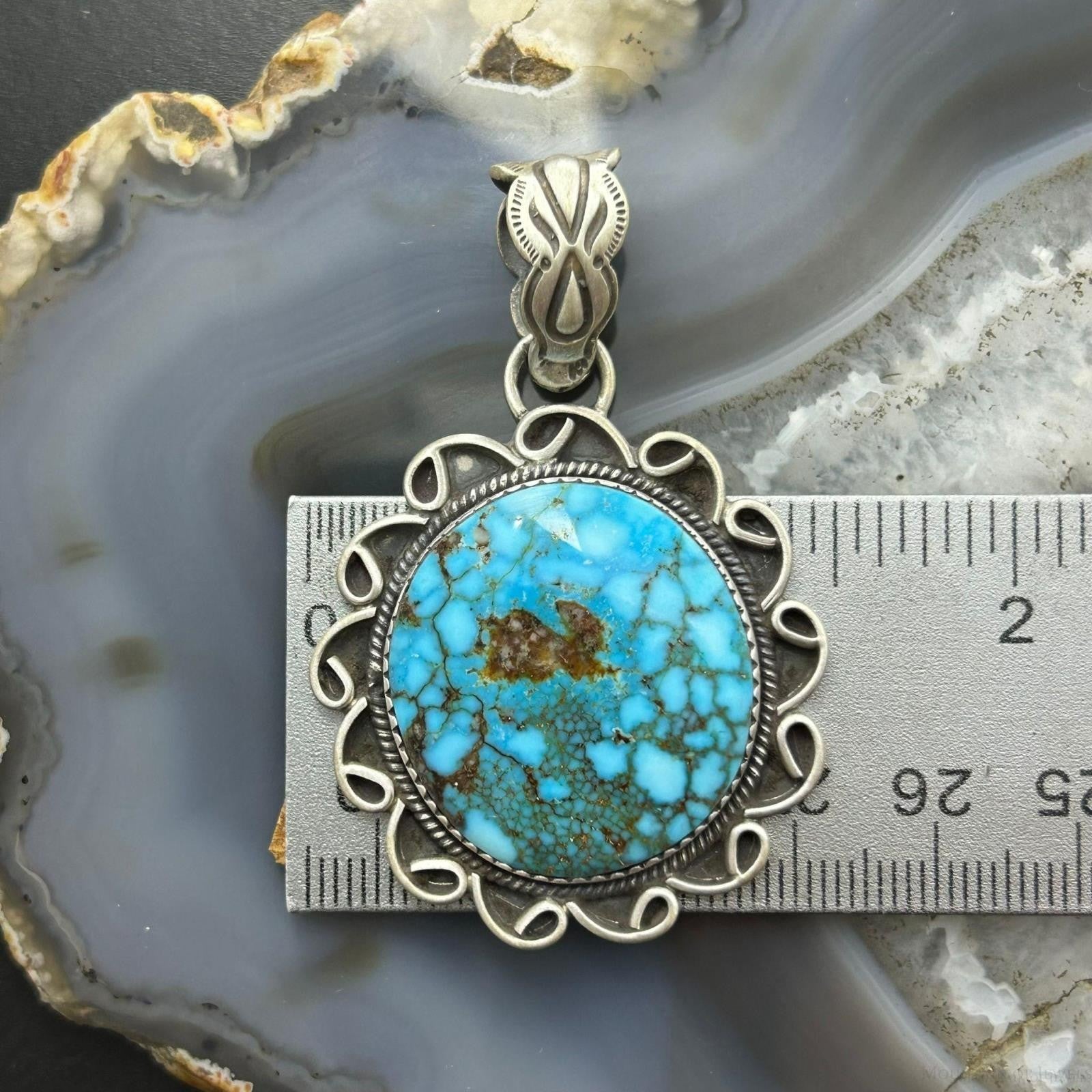 Sterling Silver Southwestern Style Round High Grade Kingman Turquoise Pendant For Women