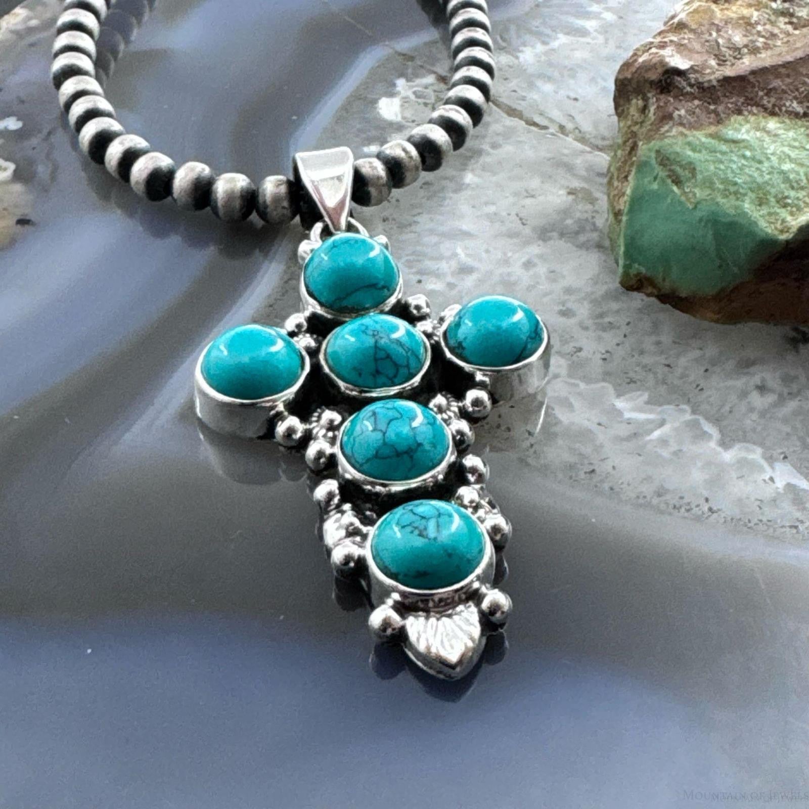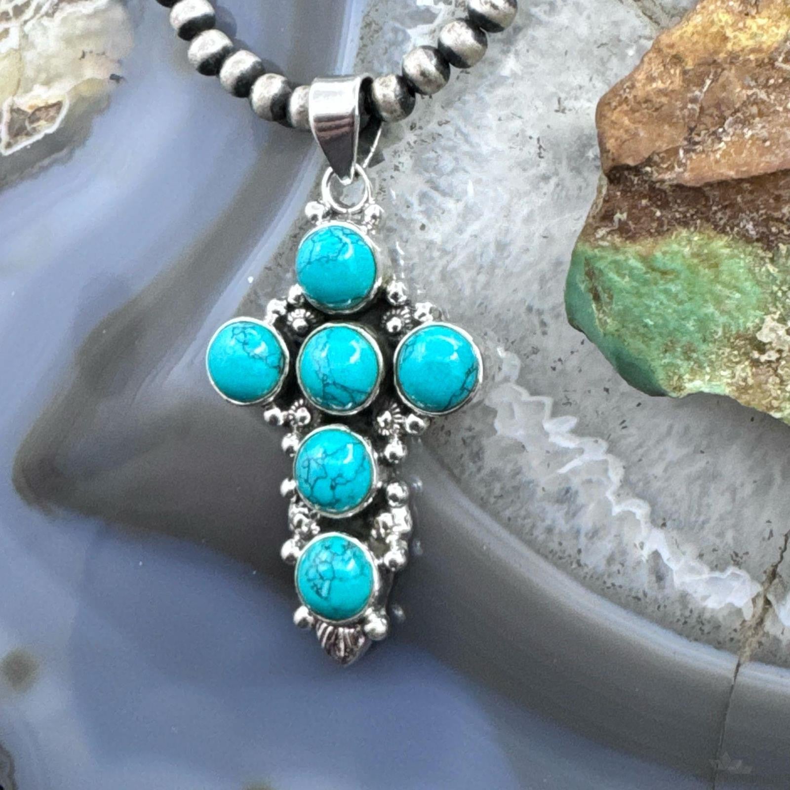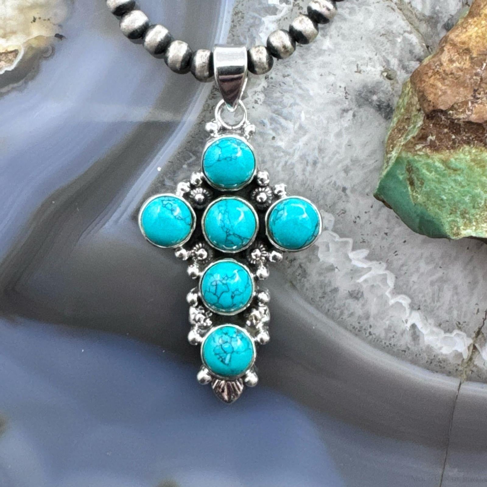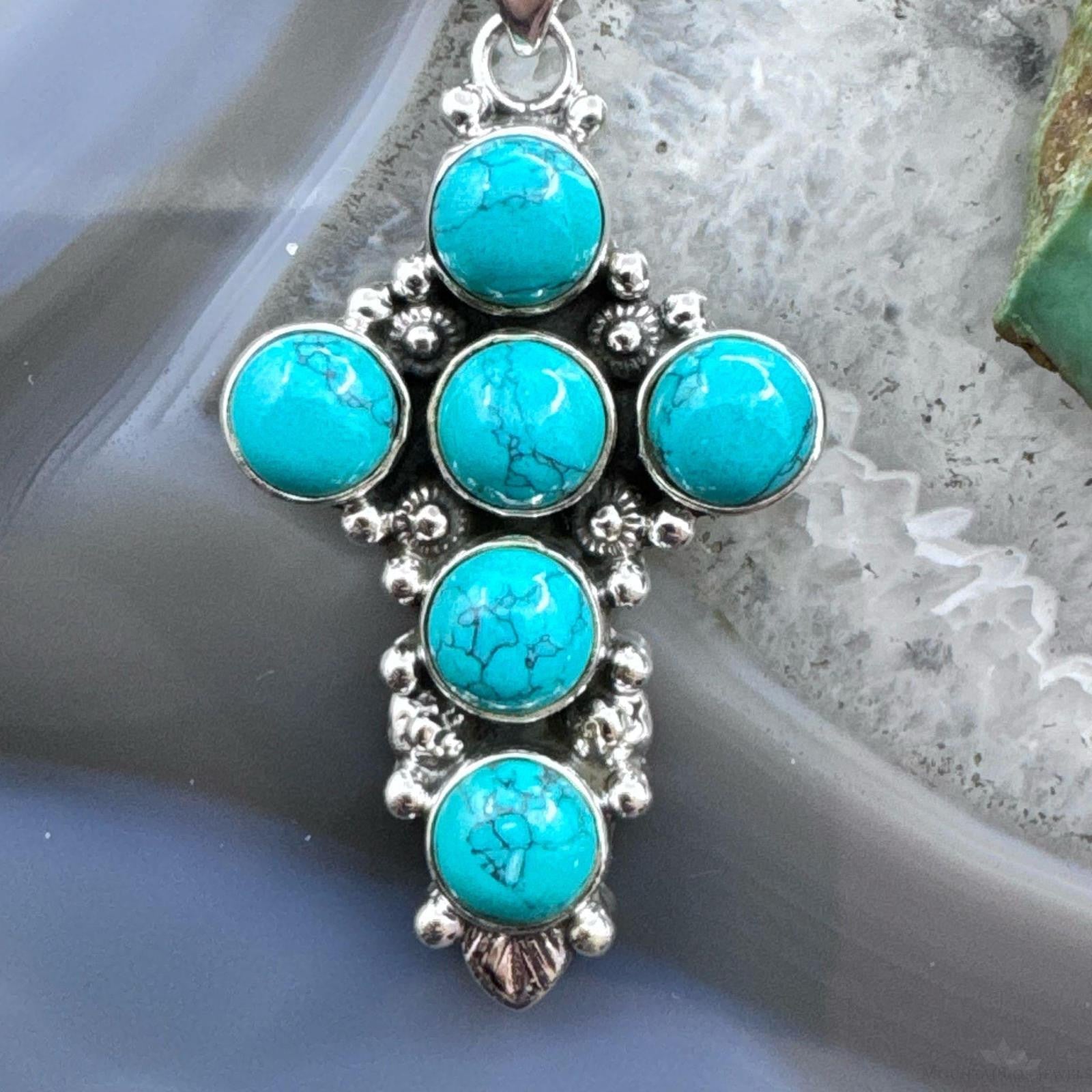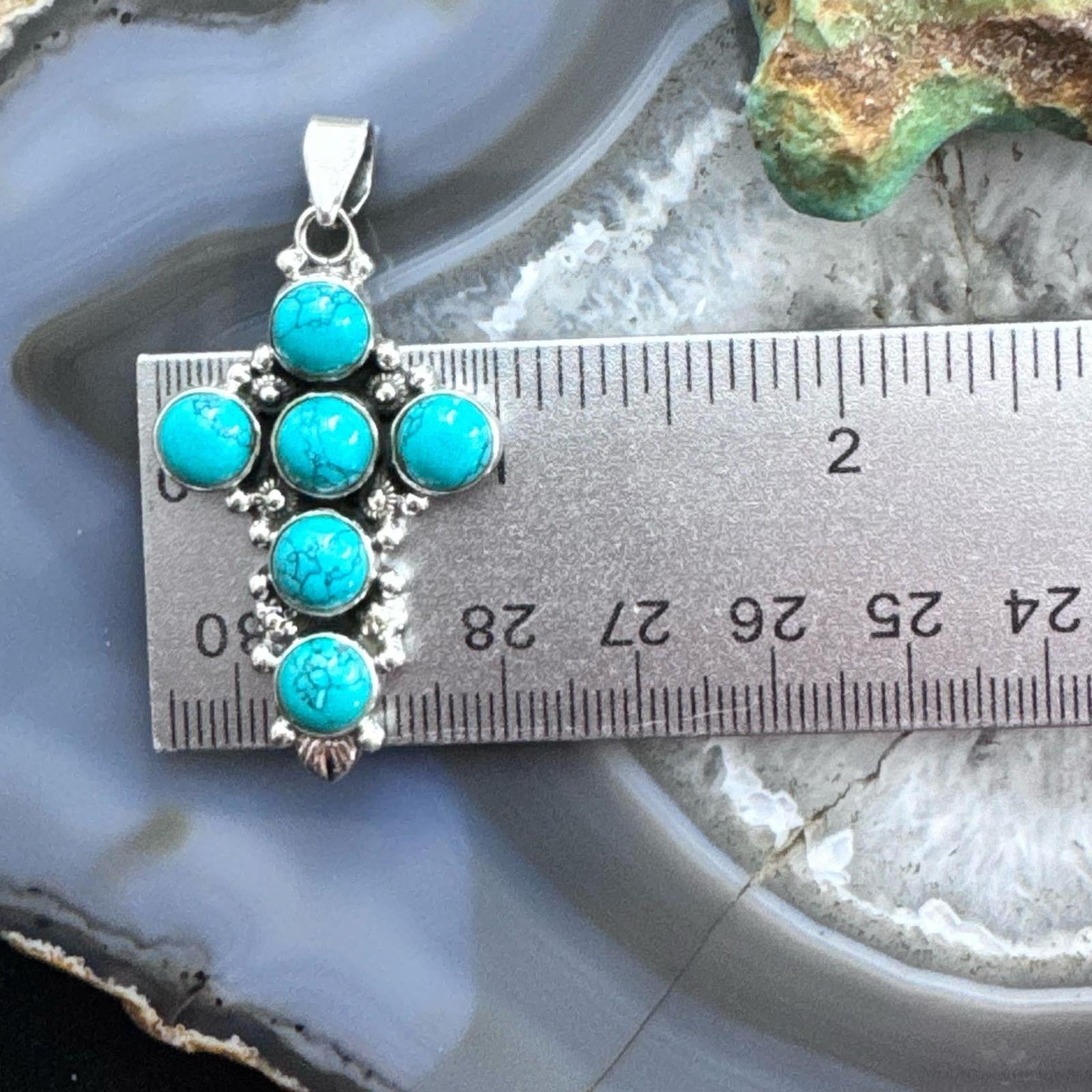 Sterling Silver Southwestern Style Rounded Blue Howlite Cross Pendant For Women