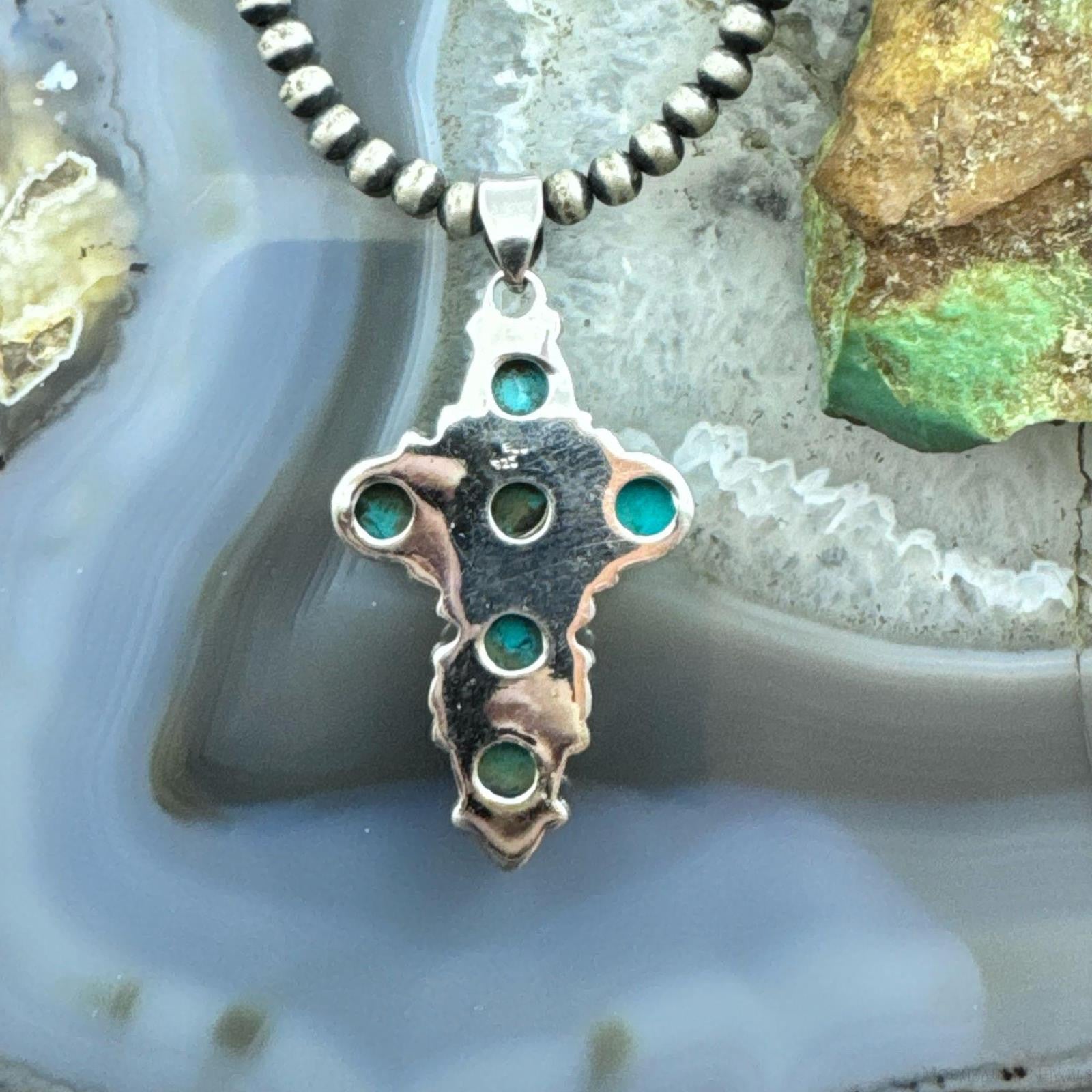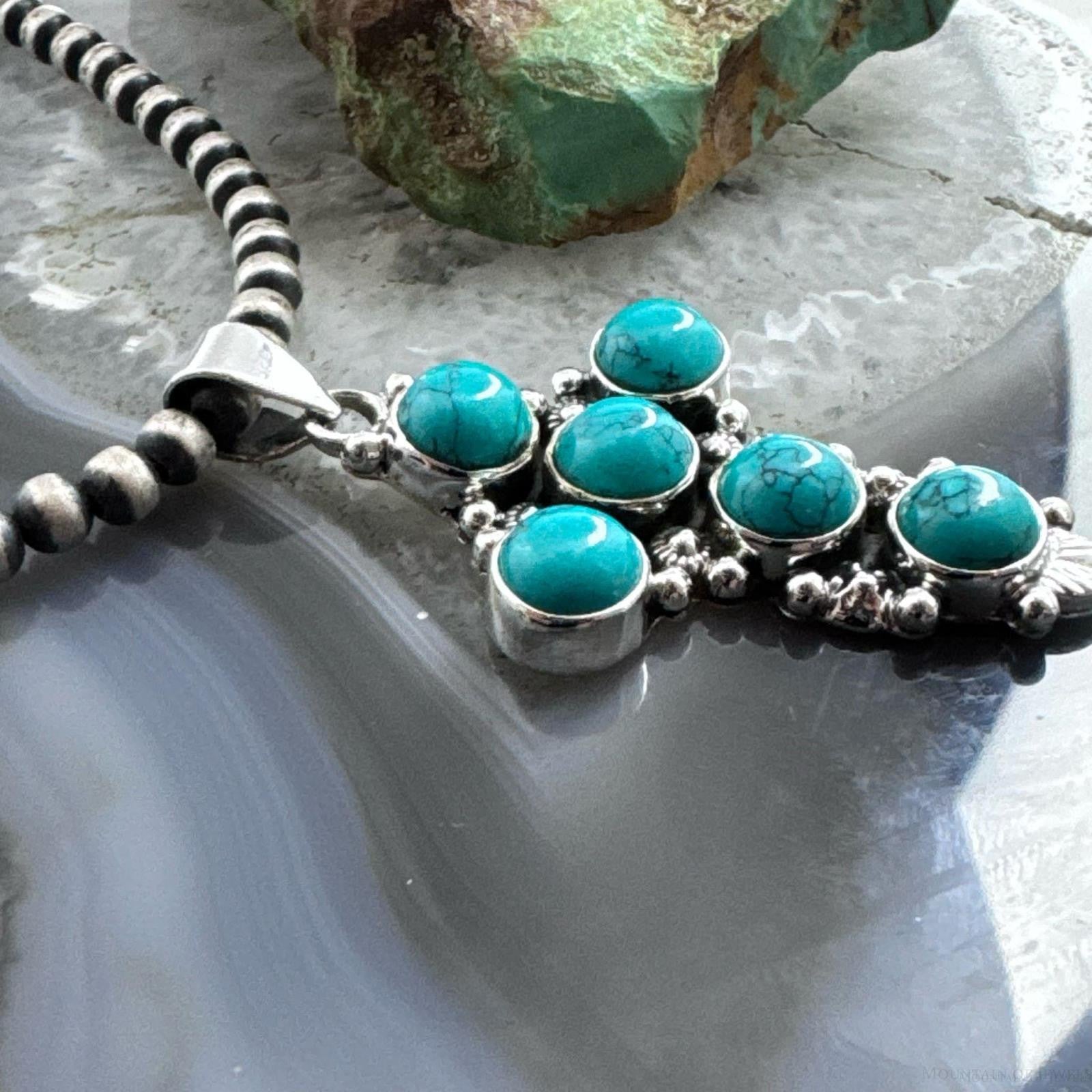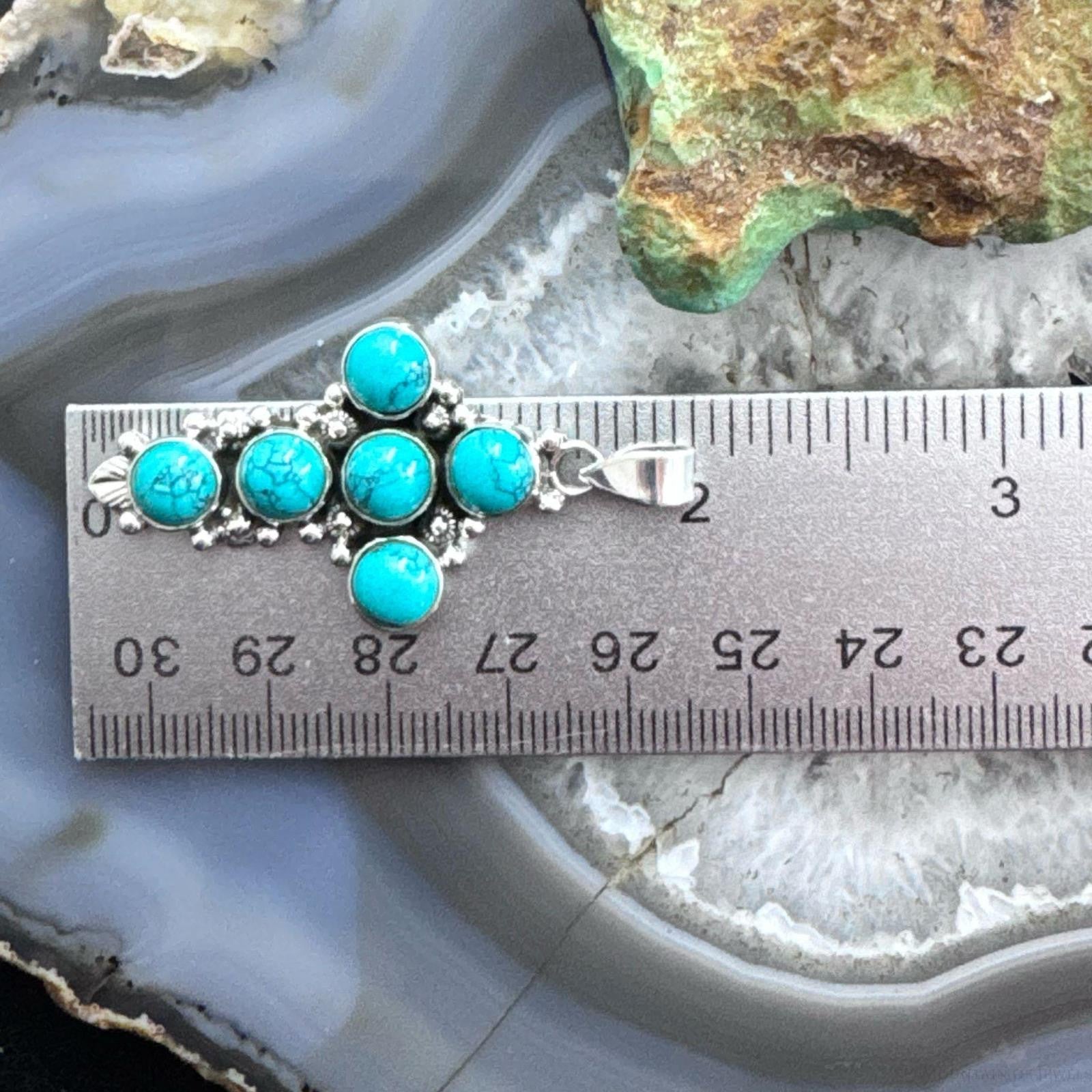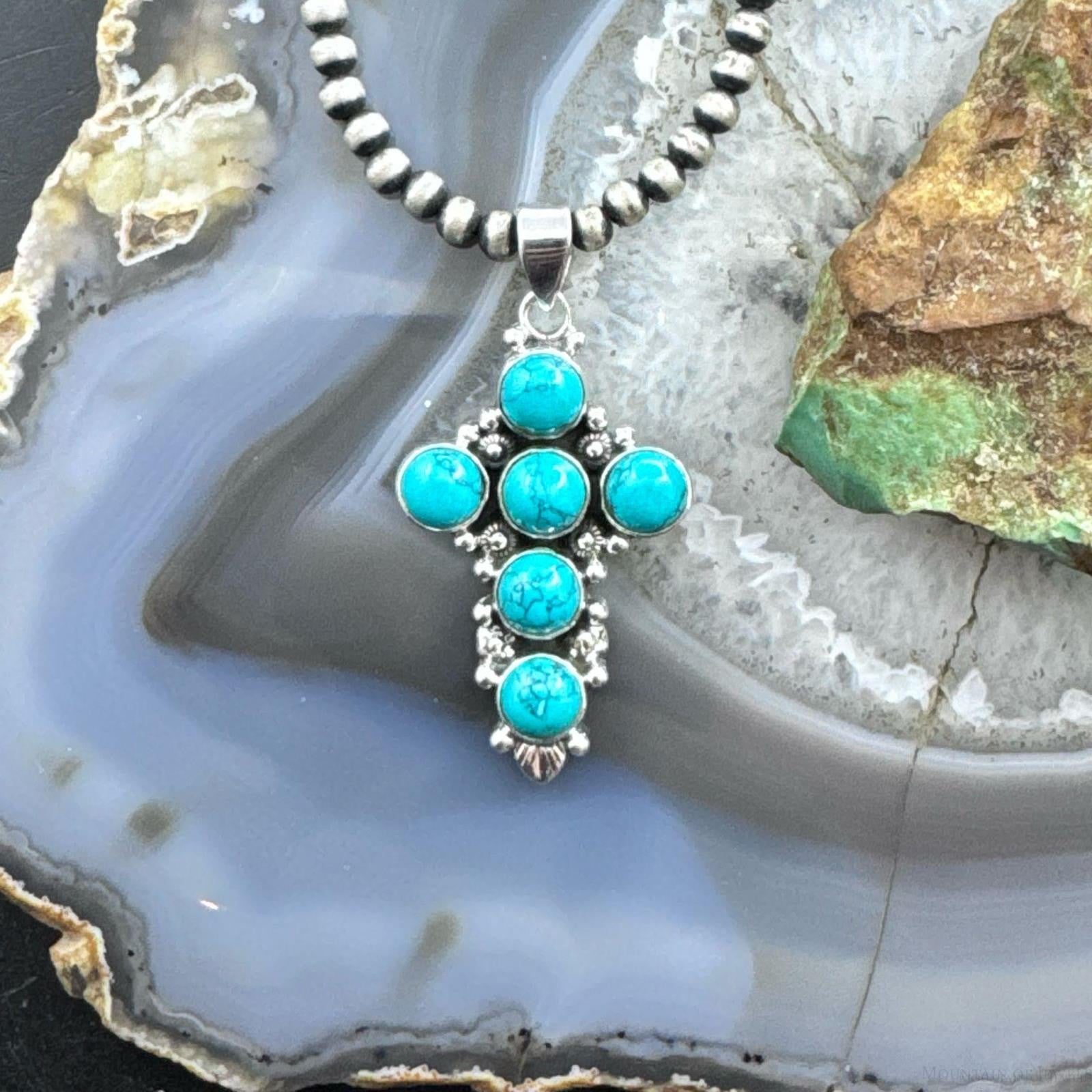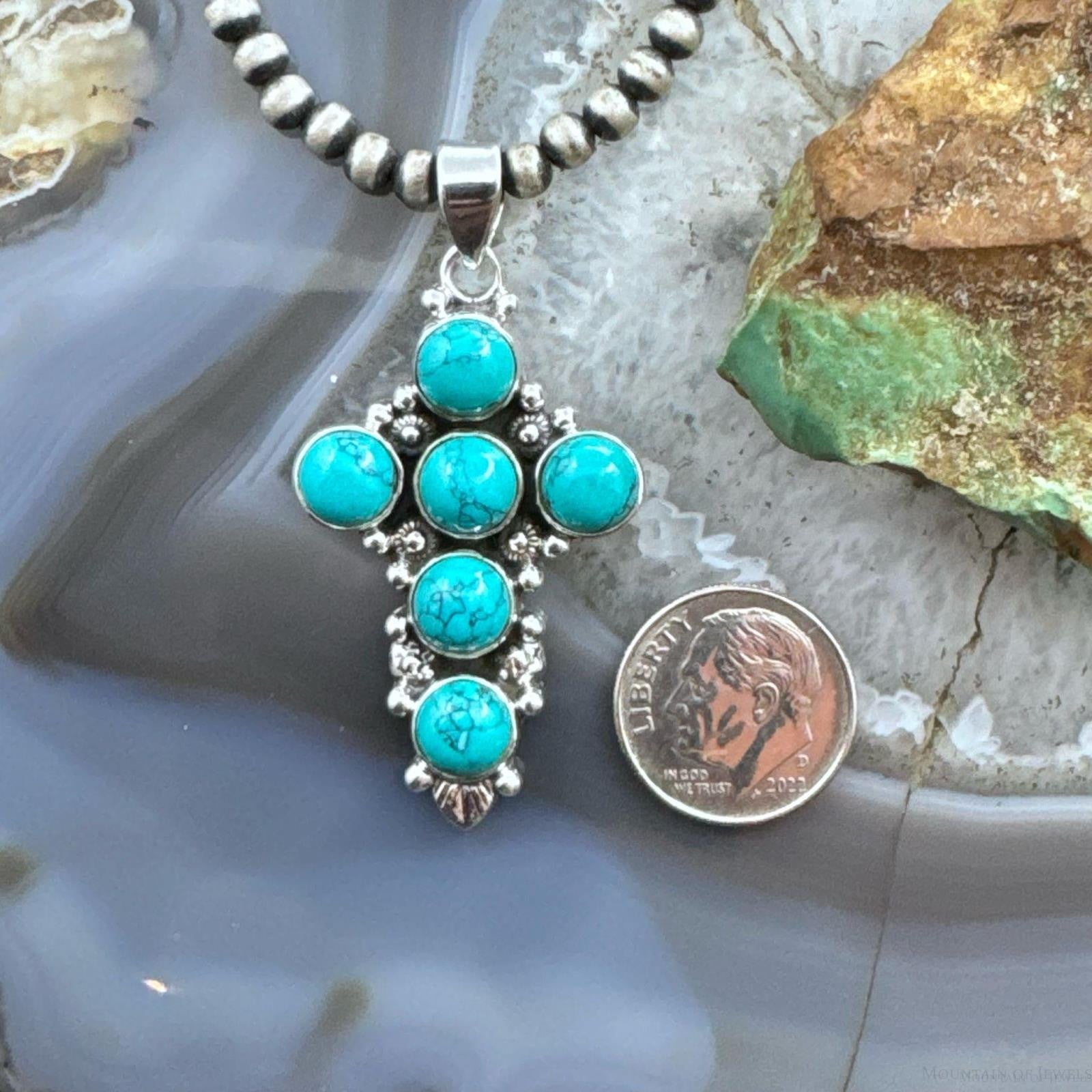 Sterling Silver Southwestern Style Rounded Blue Howlite Cross Pendant For Women