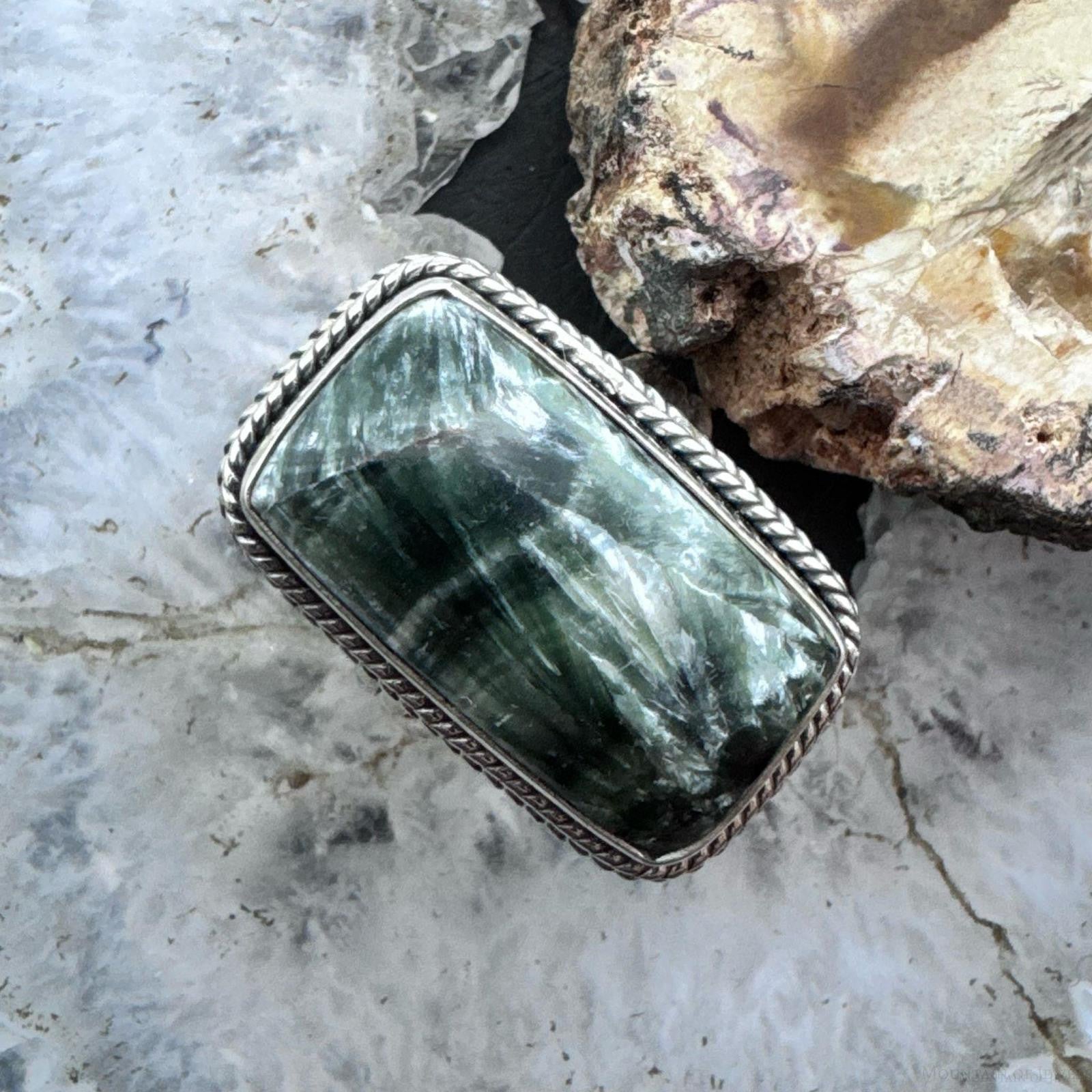 Sterling Silver Southwestern Style Seraphinite Bar Ring Size 8.5 For Women
