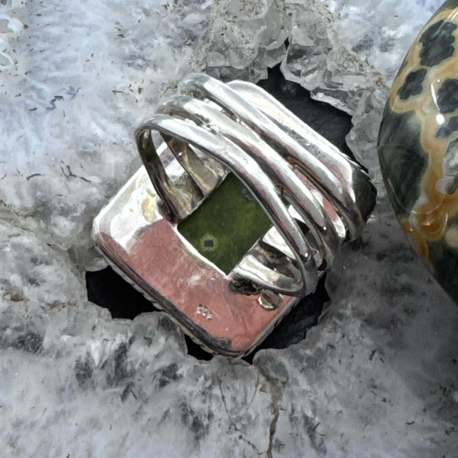 Sterling Silver Southwestern Style Square Atlantisite Ring Size 11 For Women