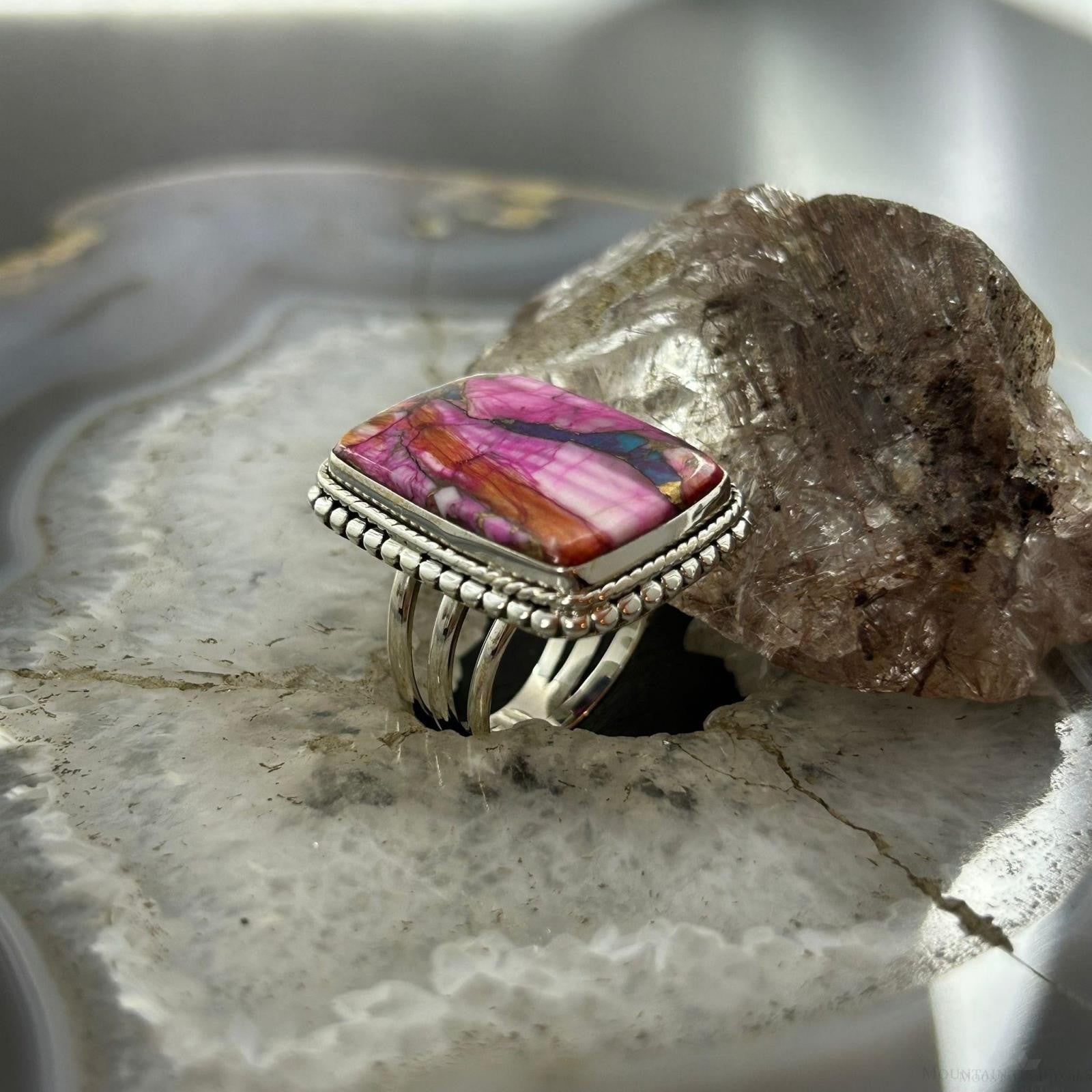 Sterling Silver Southwestern Style Square Dahlia Ring Size 6.75 For Women
