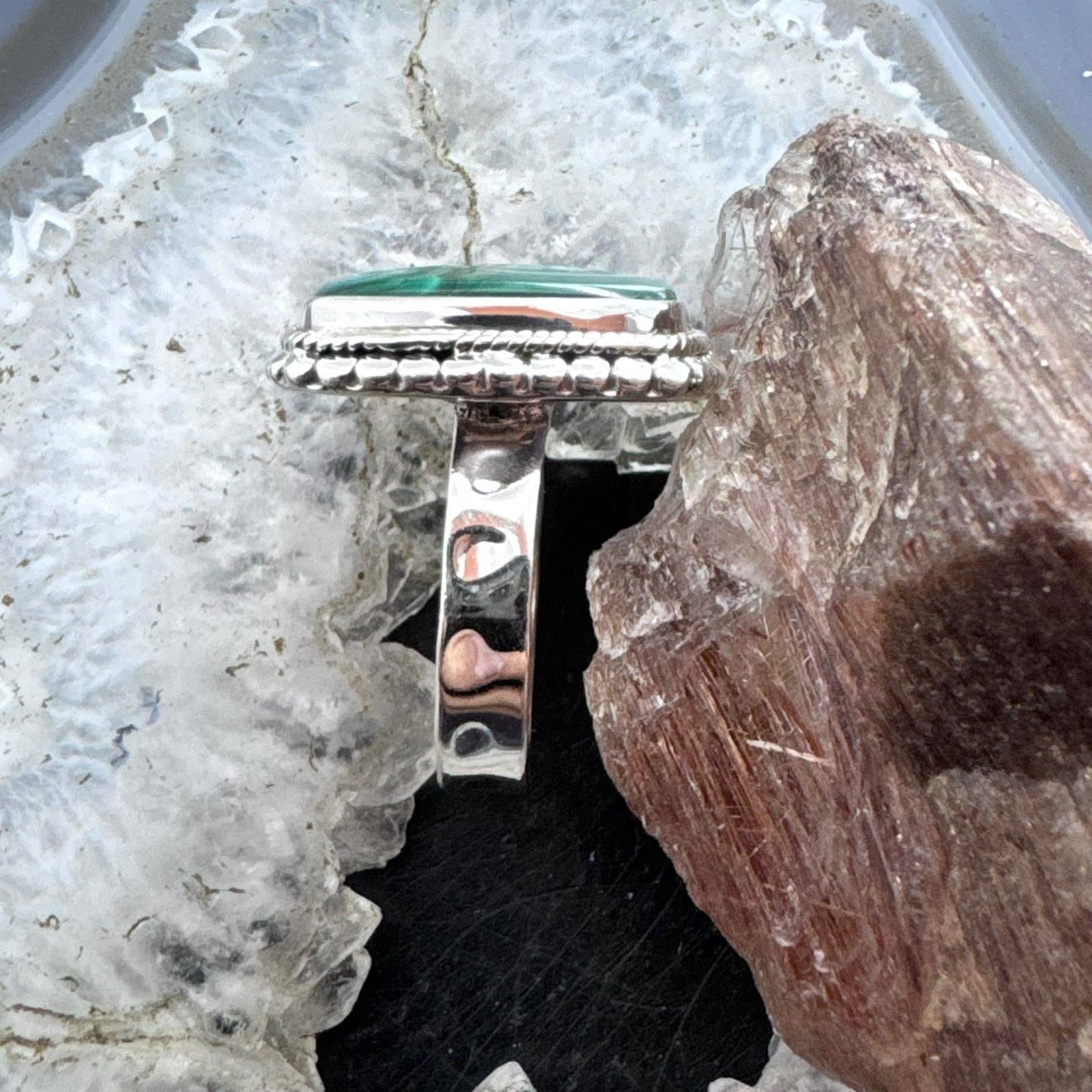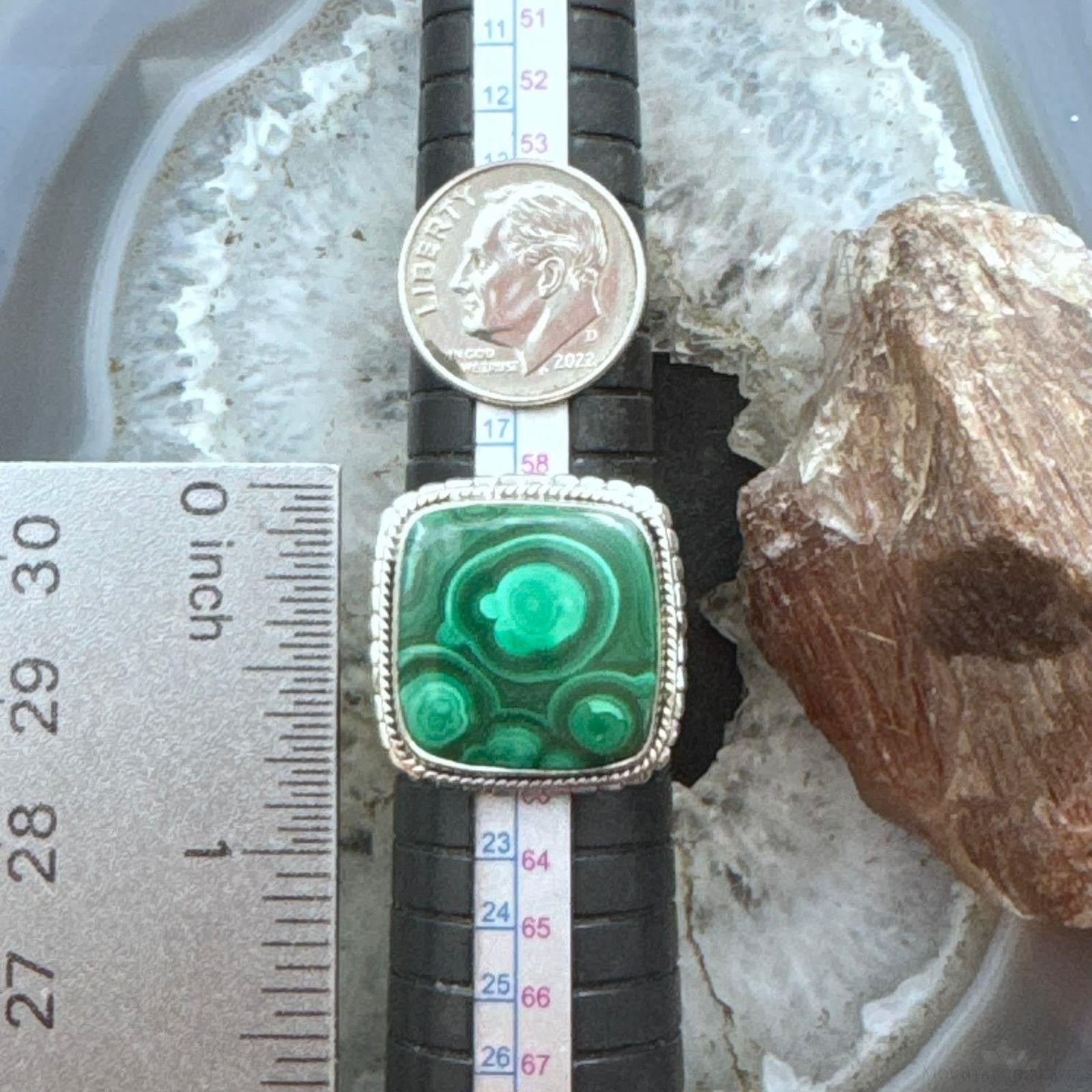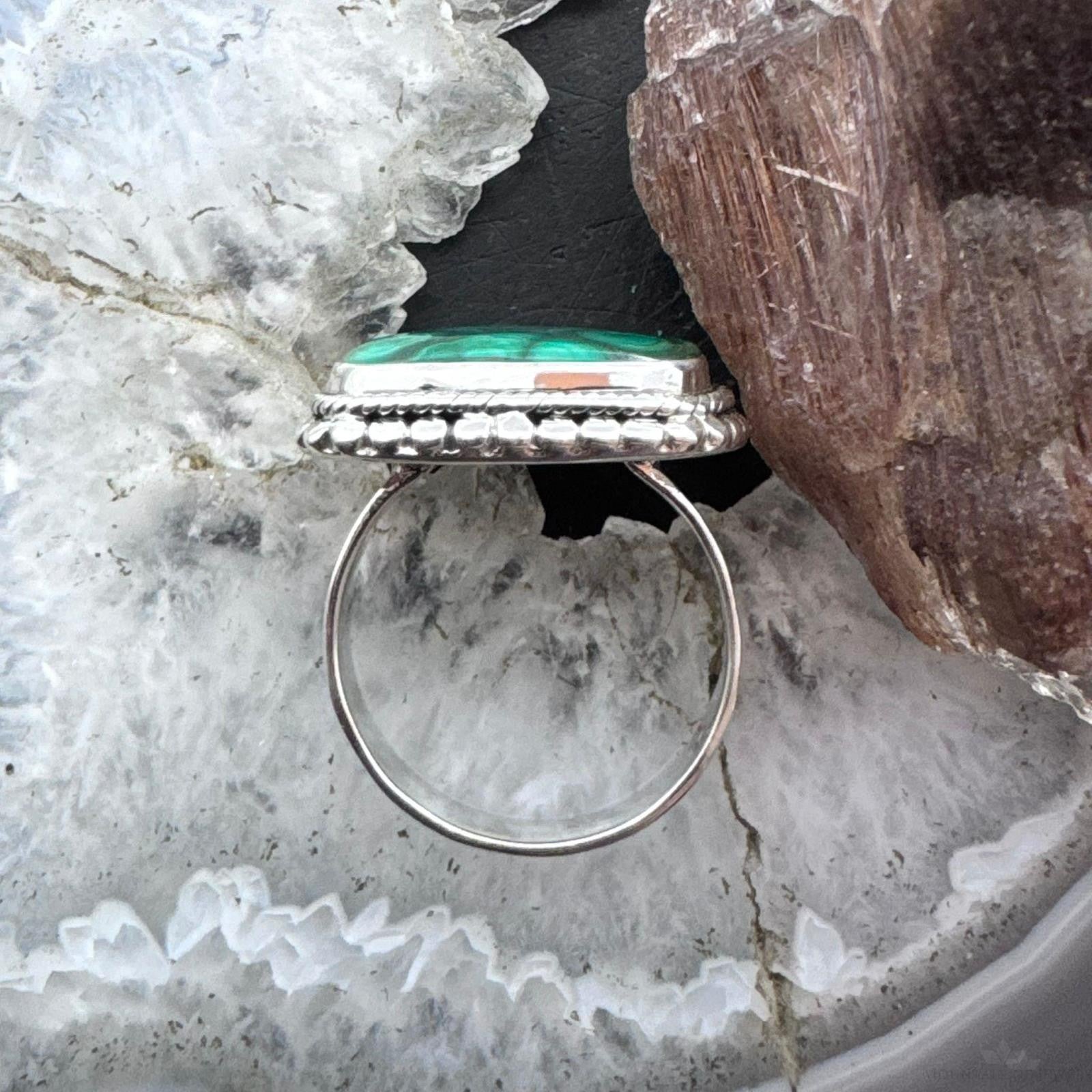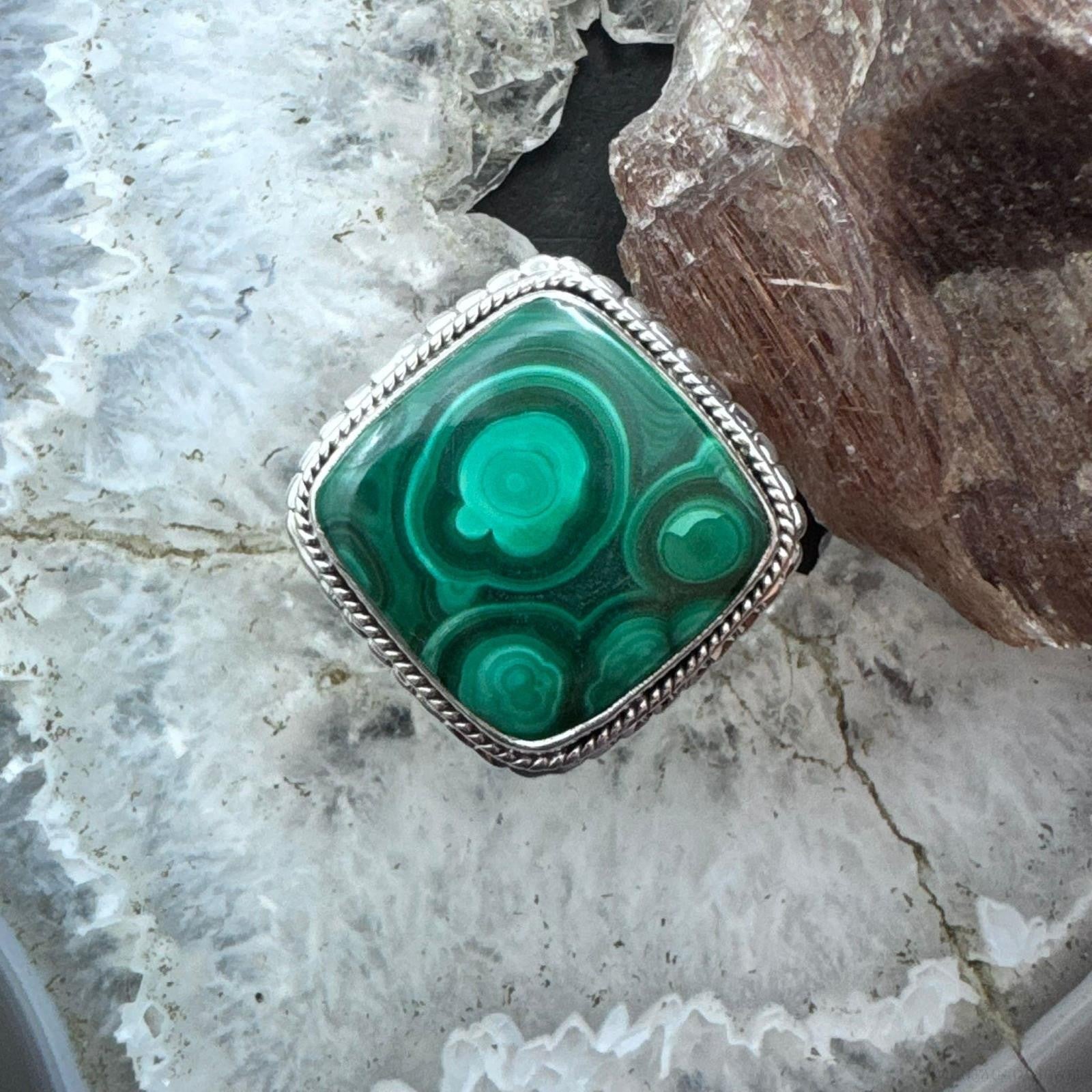 Sterling Silver Southwestern Style Square Malachite Decorated Ring Size 9.5 For Women