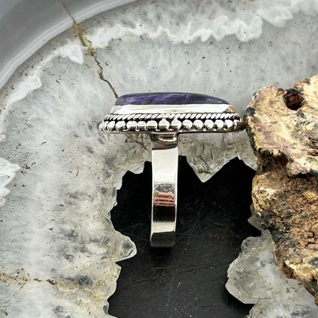 Sterling Silver Southwestern Style Teardrop Charoite Ring Size 7 For Women