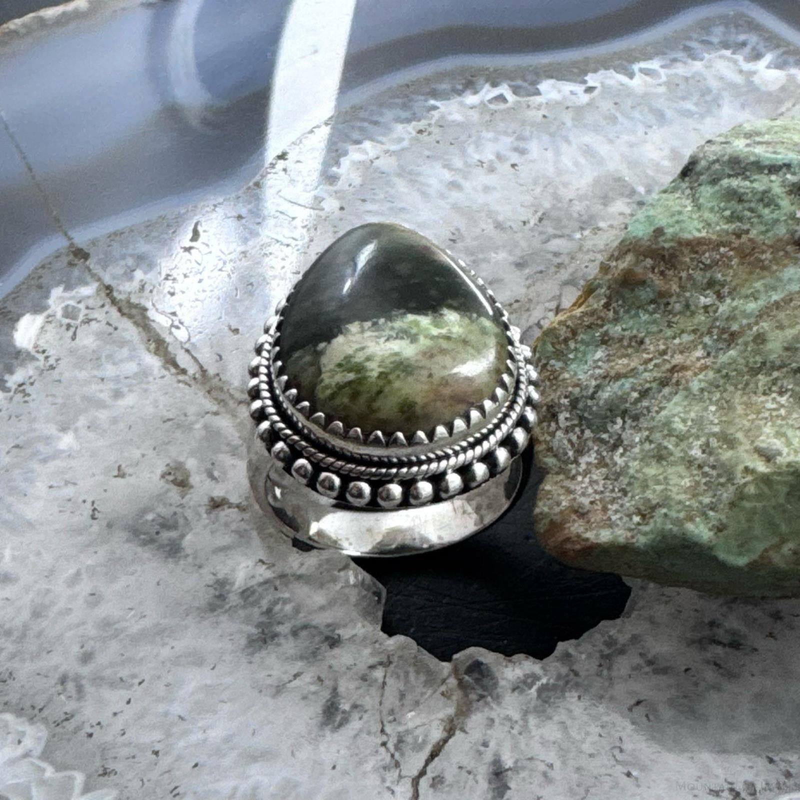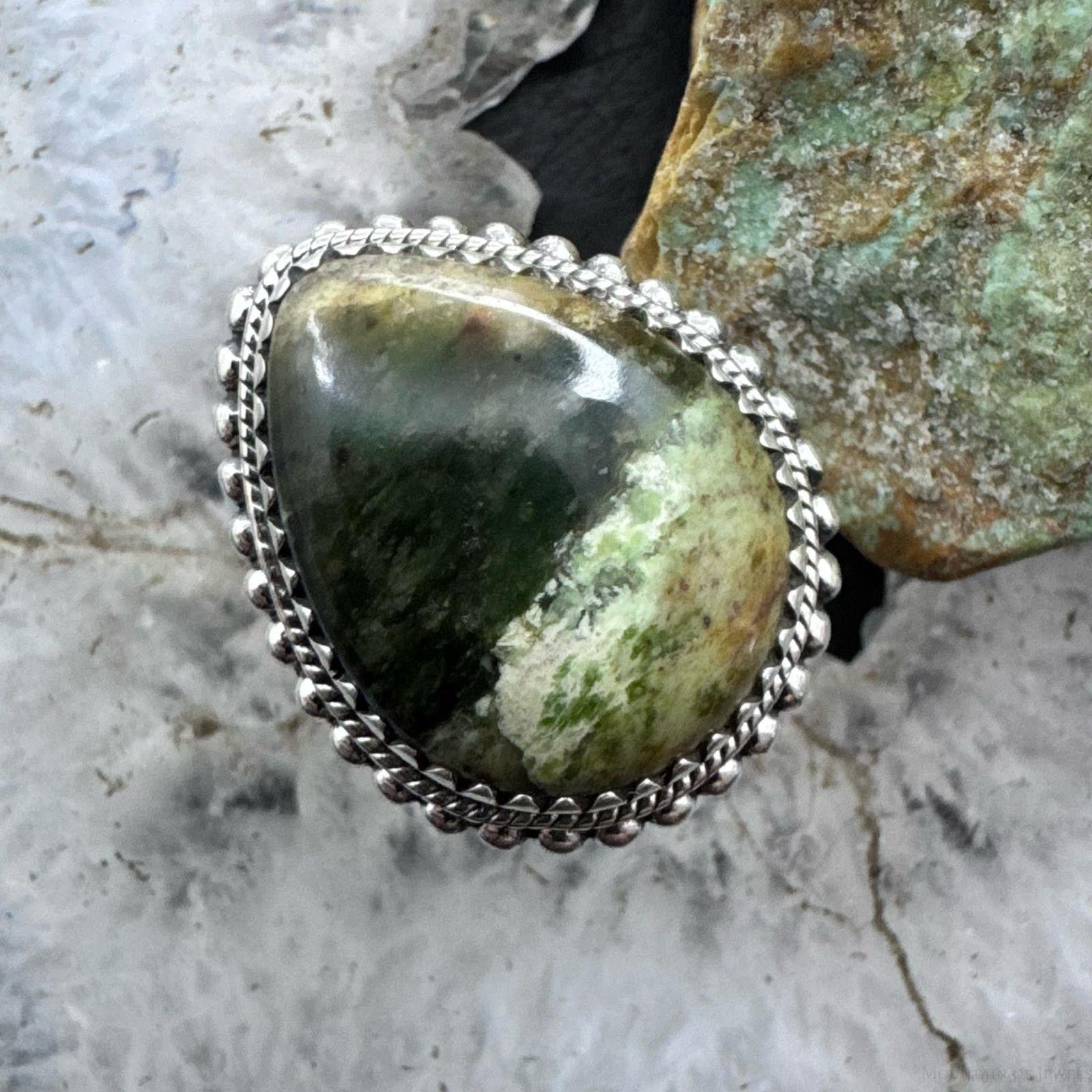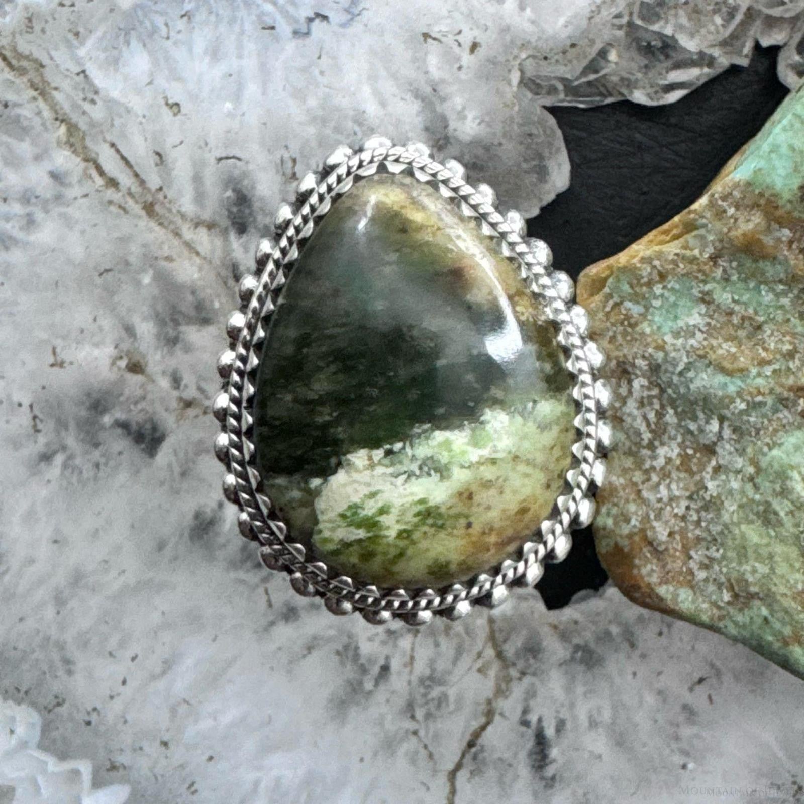 Sterling Silver Southwestern Style Teardrop Chrome Chalcedony Ring Size 8 For Women