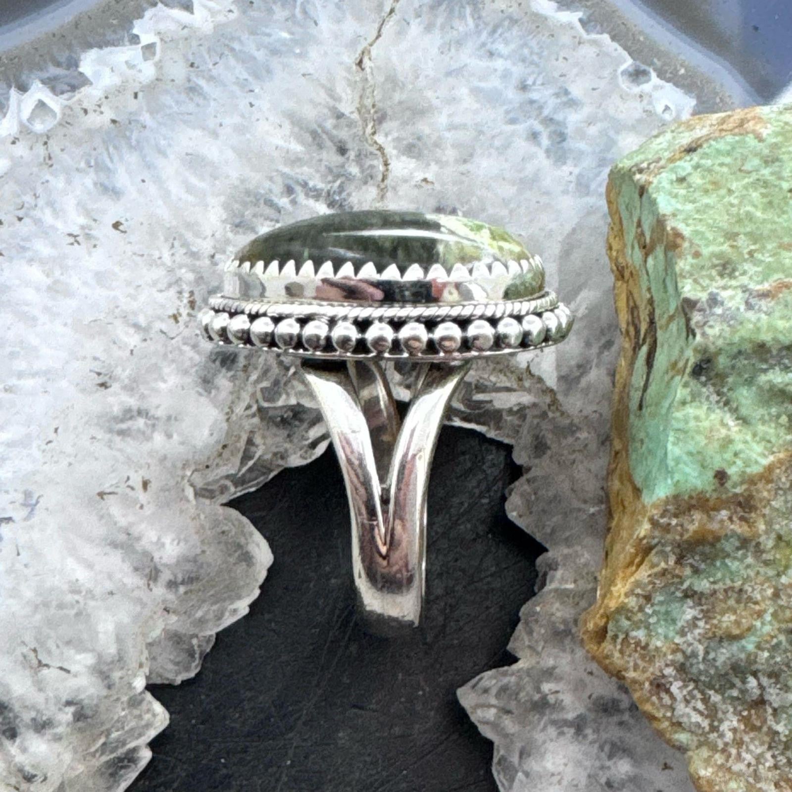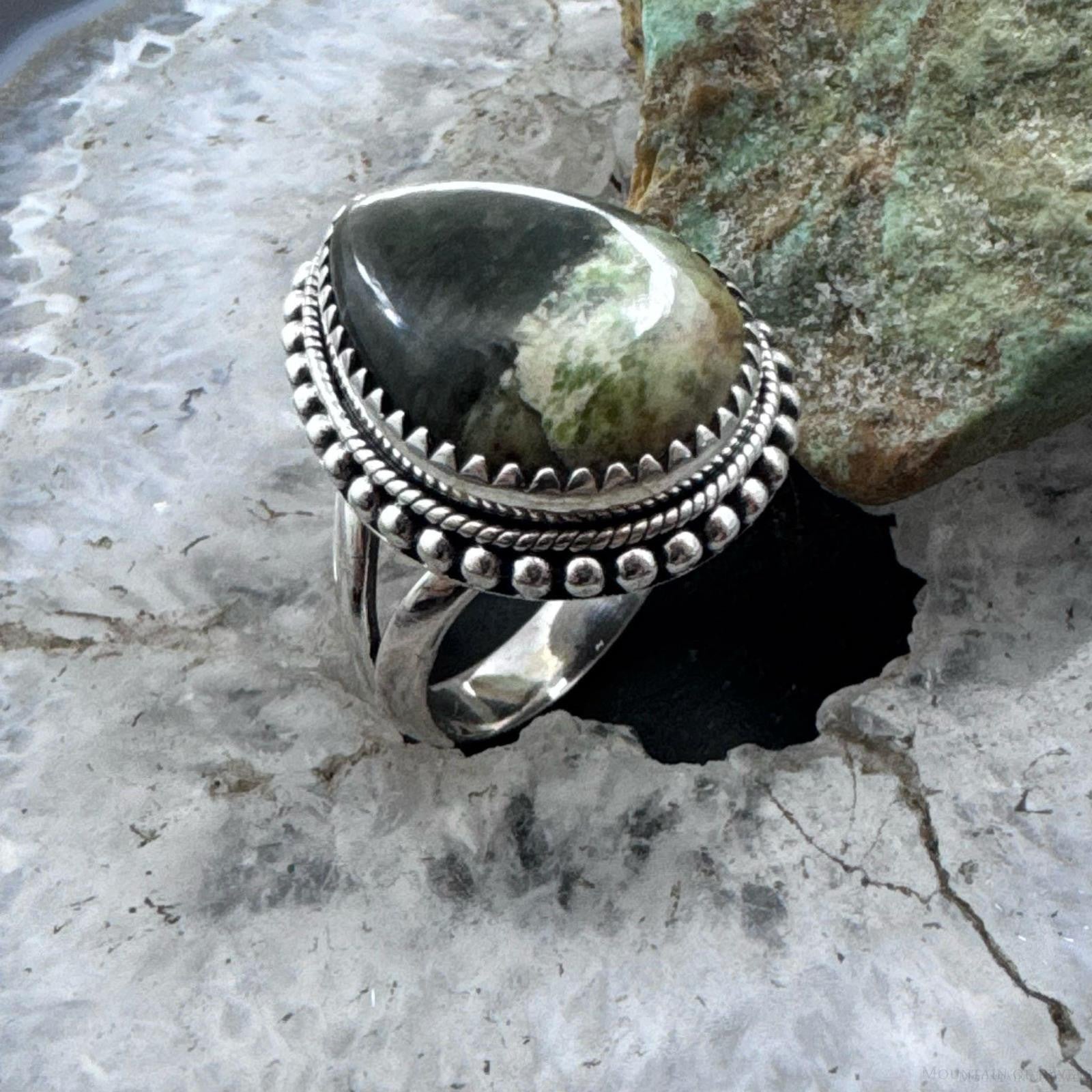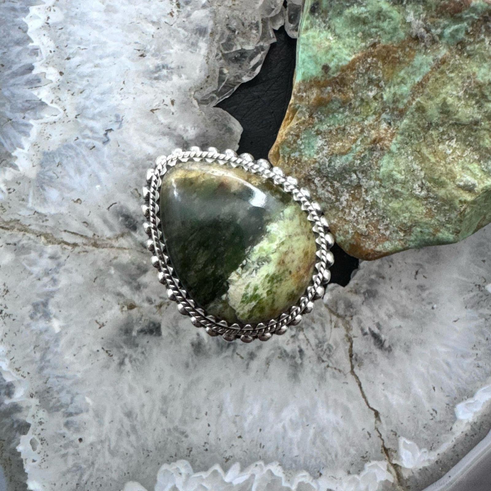 Sterling Silver Southwestern Style Teardrop Chrome Chalcedony Ring Size 8 For Women