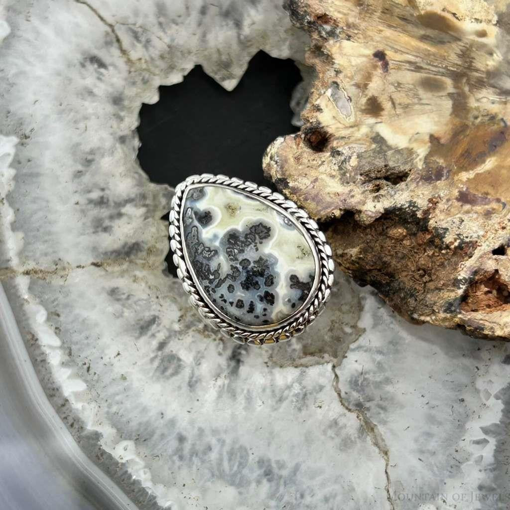 Sterling Silver Southwestern Style Teardrop Dendrite Agate Ring Size 7.5 For Women