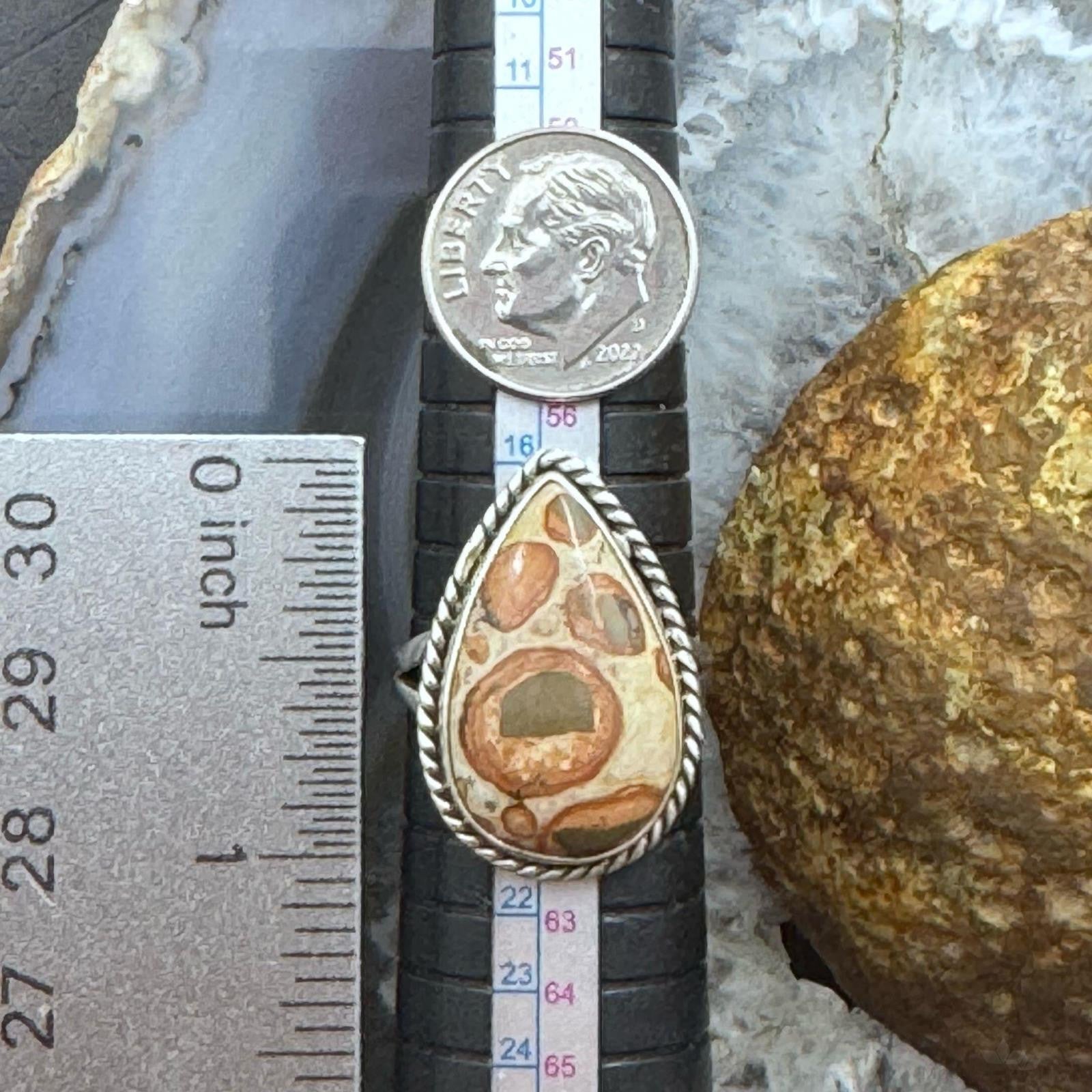 Sterling Silver Southwestern Style Teardrop Mookaite Coral Ring Size 9 For Women