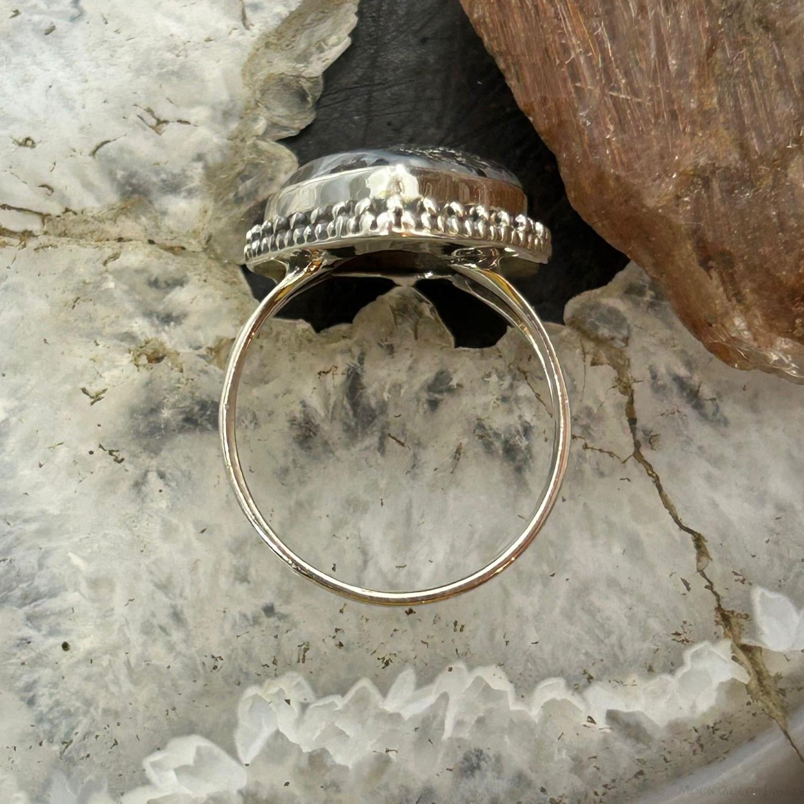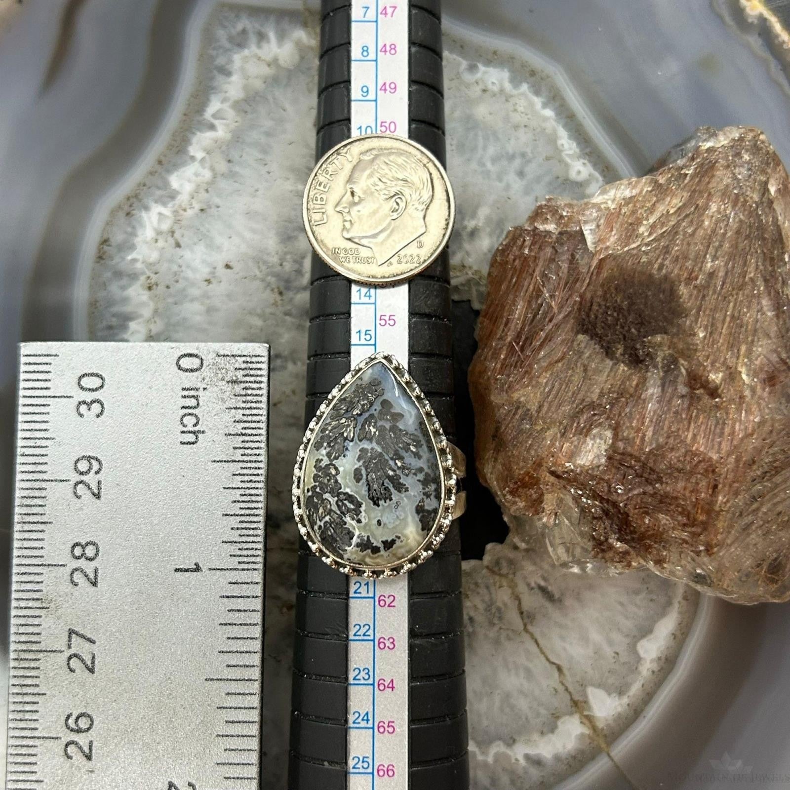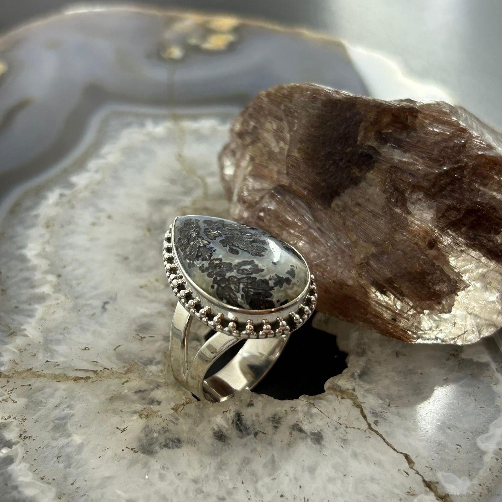 Sterling Silver Southwestern Style Teardrop Parral Dendritic Agate Ring Size 9 For Women