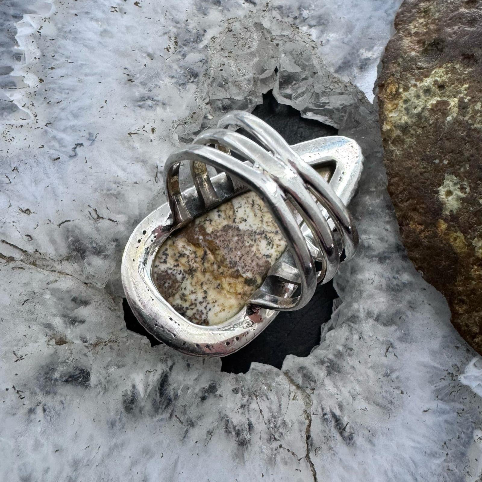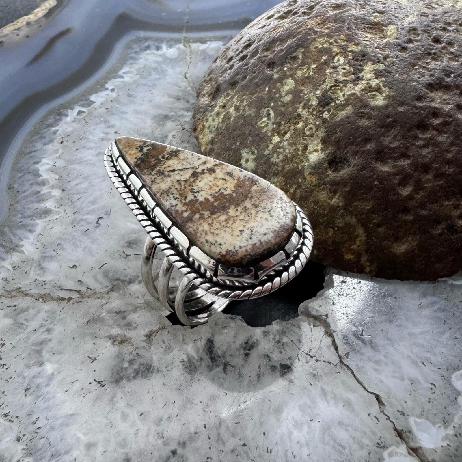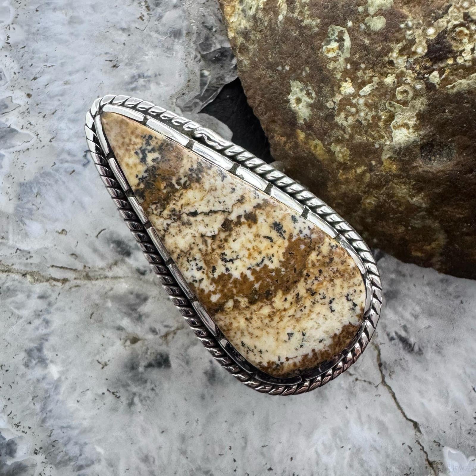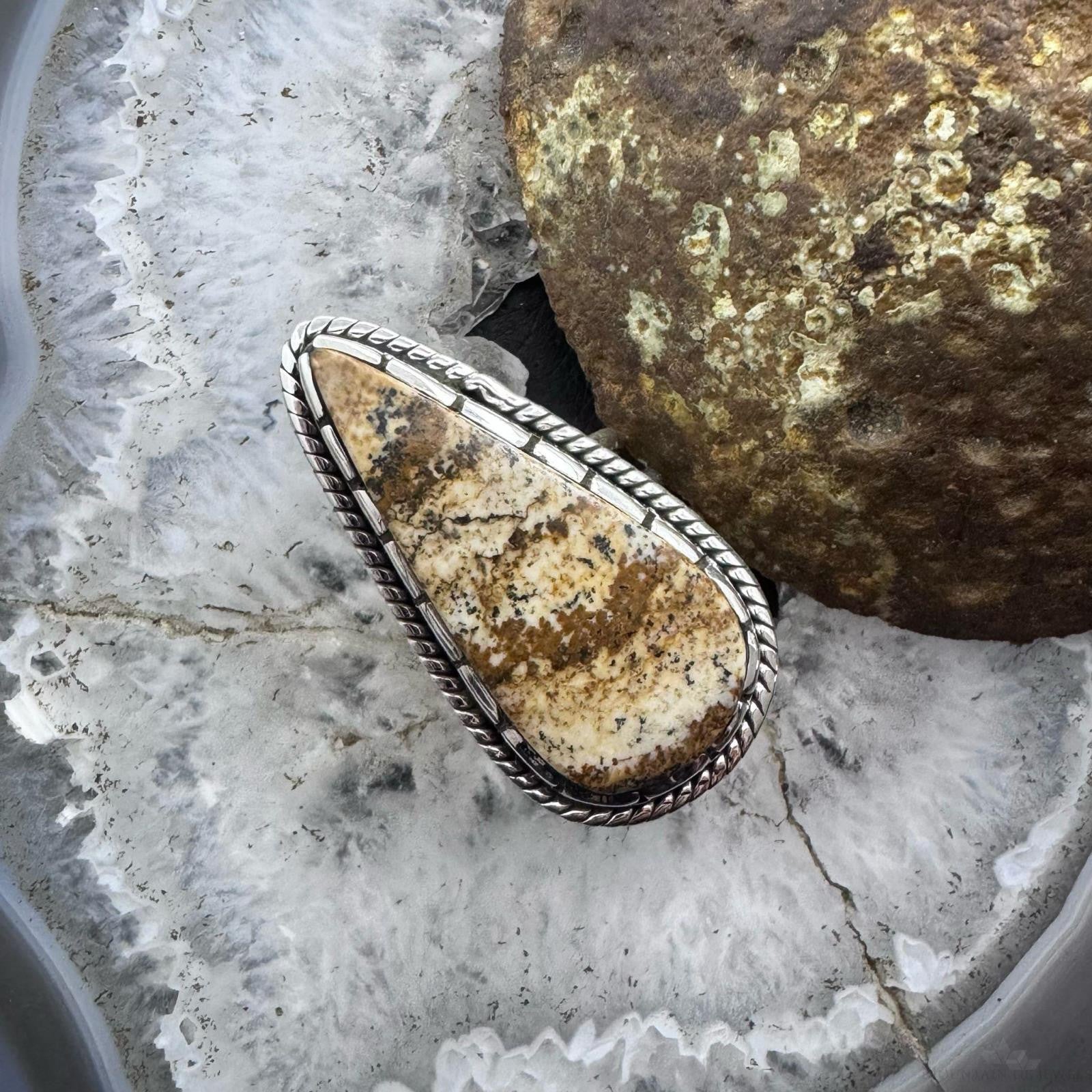 Sterling Silver Southwestern Style Teardrop Picture Jasper Ring Size 8 For Women