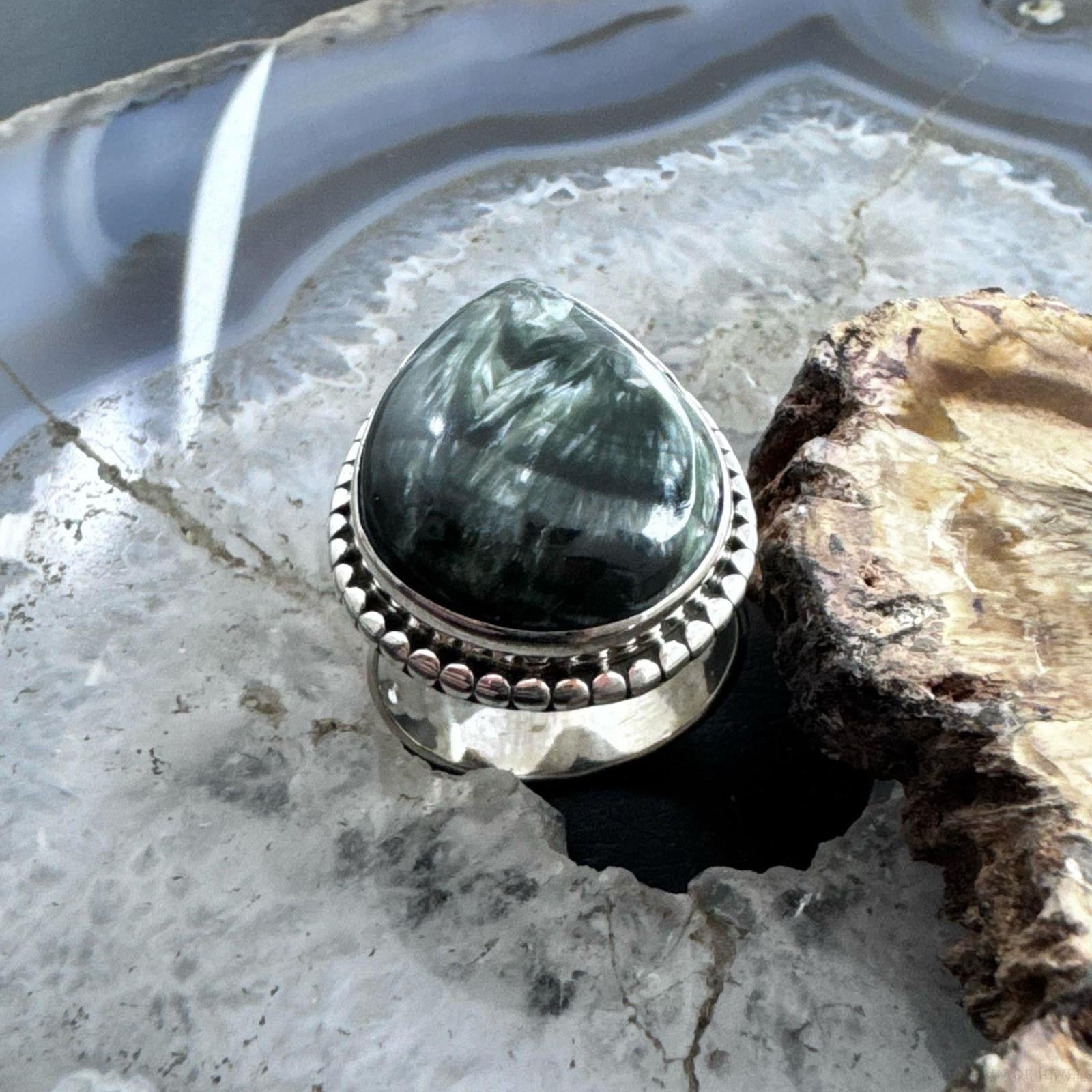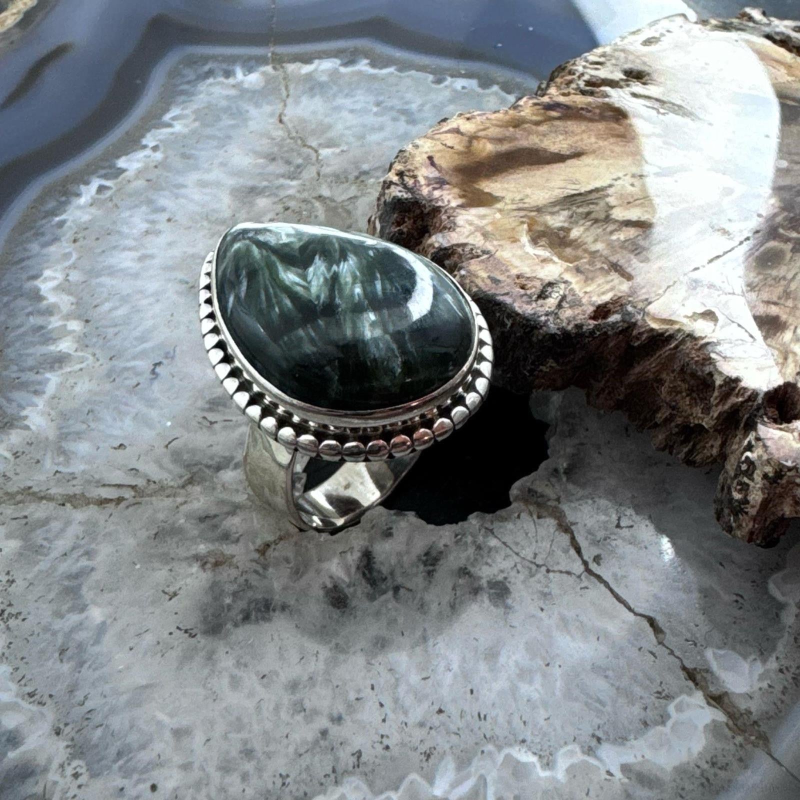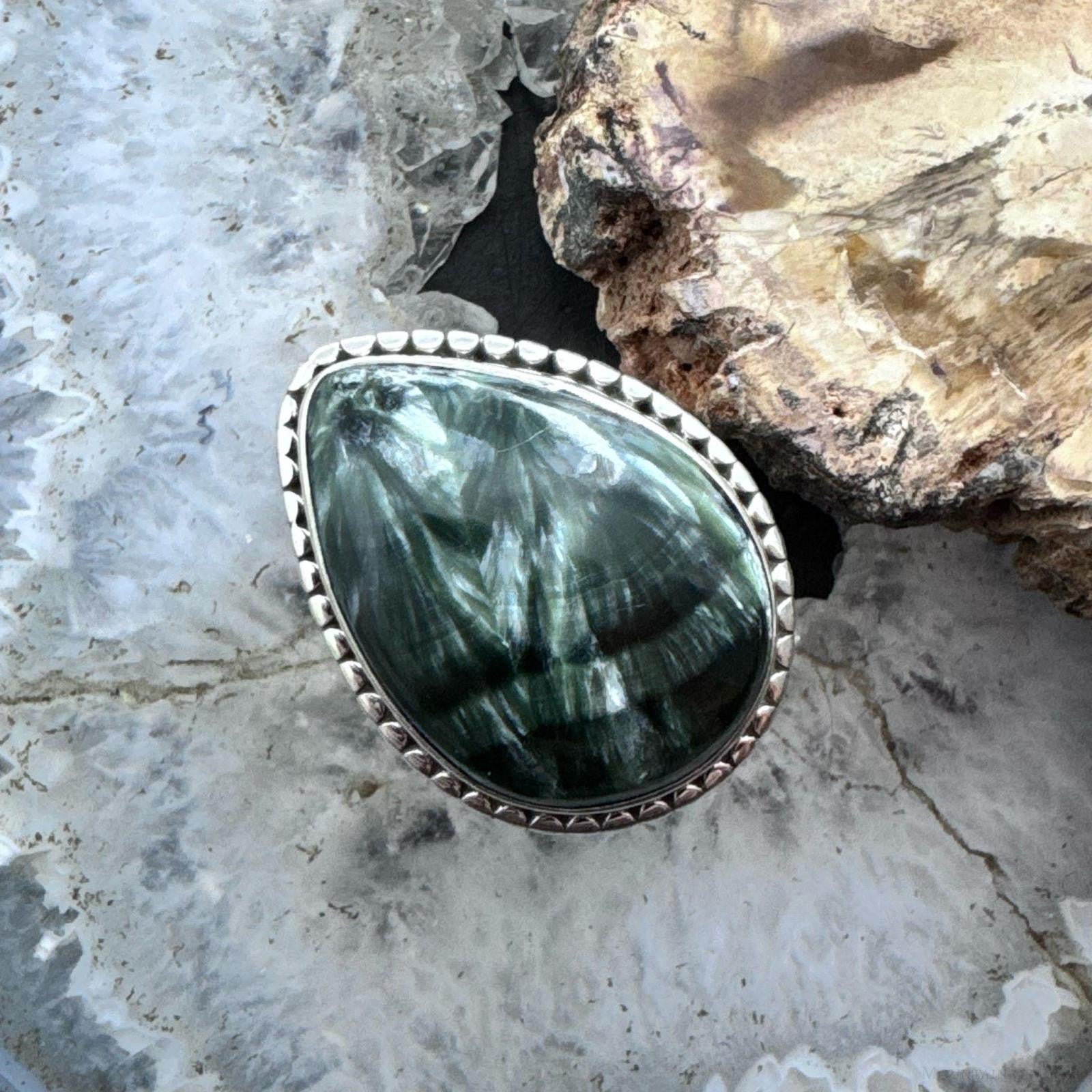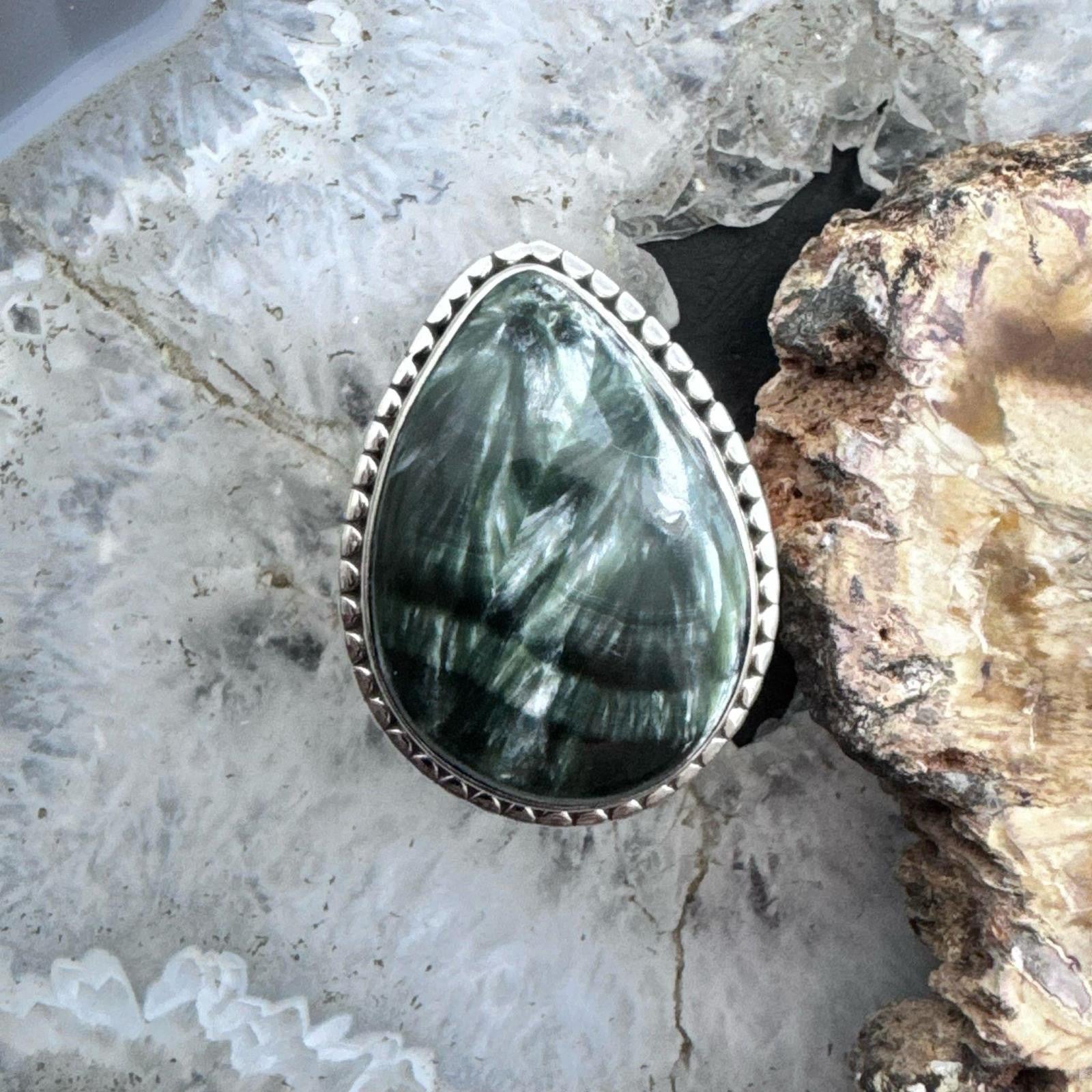 Sterling Silver Southwestern Style Teardrop Seraphinite Ring Size 9 For Women